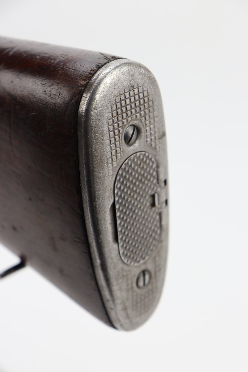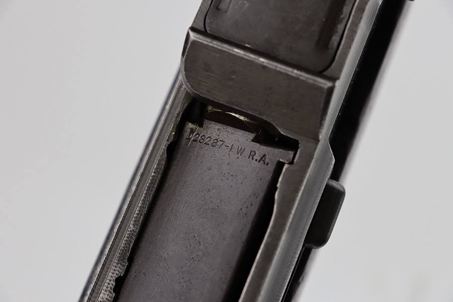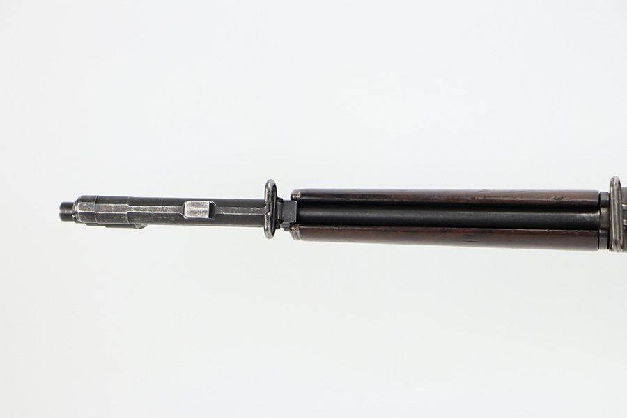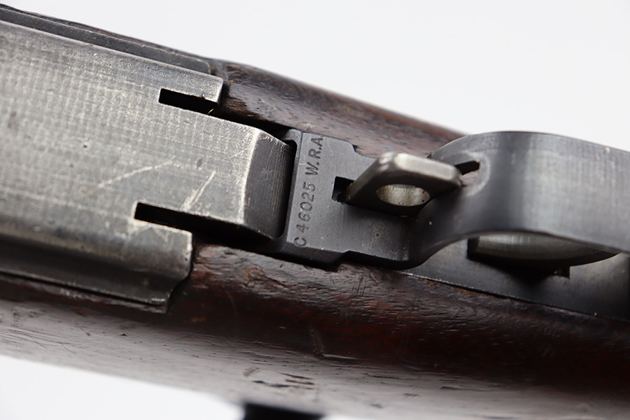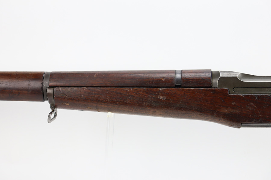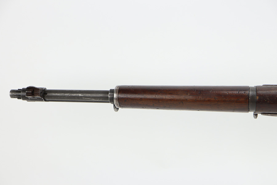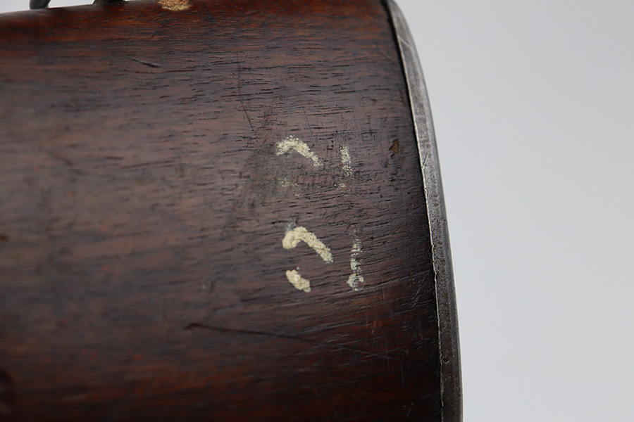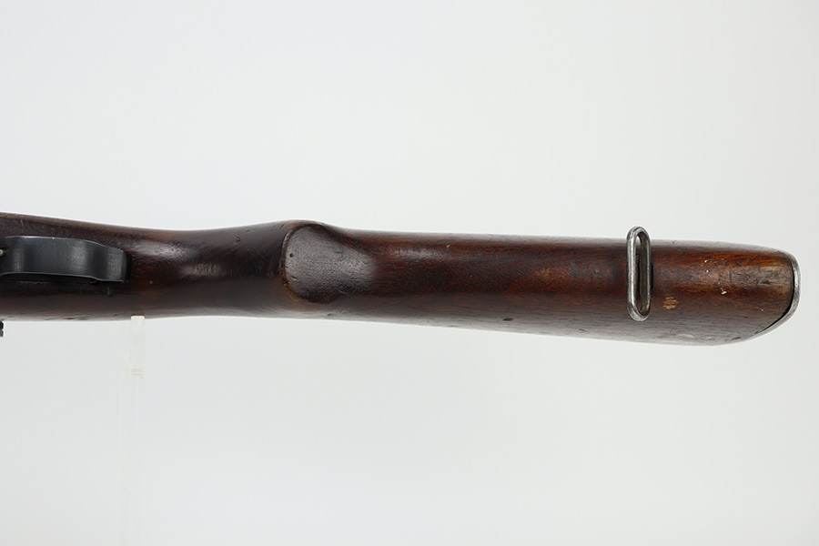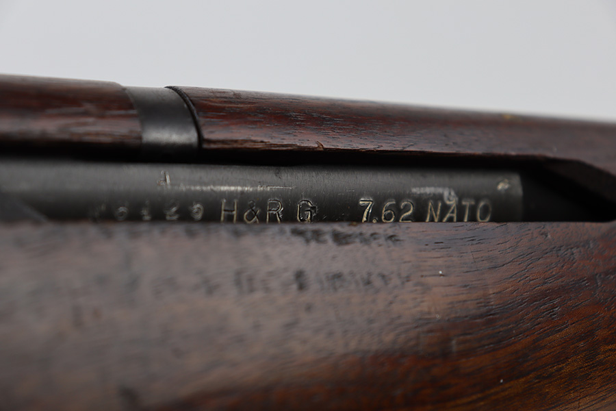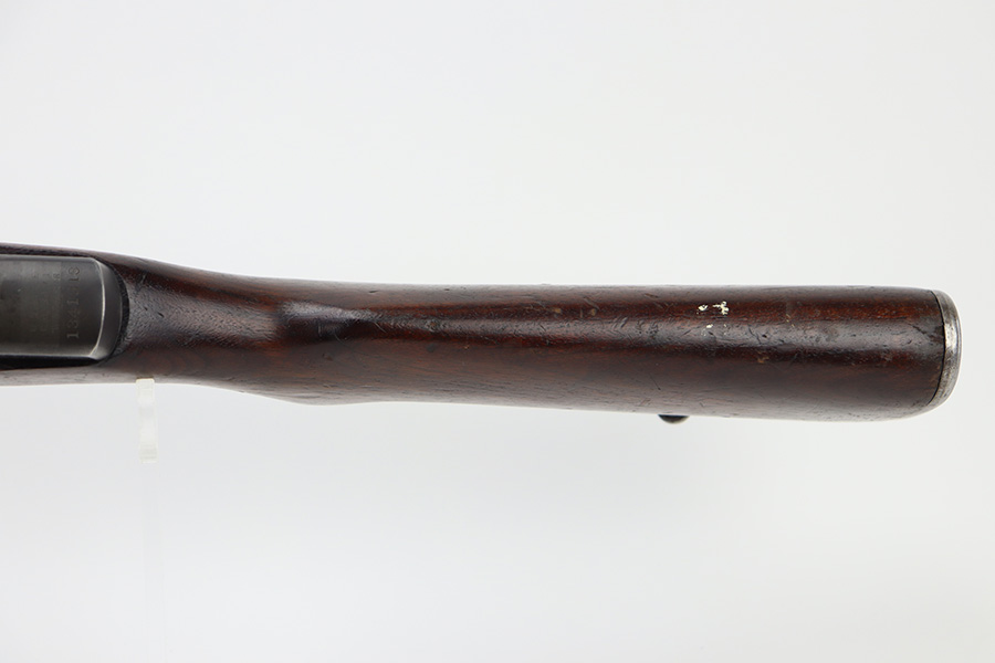 12/7/23 – This is a a Winchester M1 Garand from about June of 1943. This particular gun was sent to an arsenal after the war and was converted from .30-06 to 7.62 or .308. The barrel is marked H&R. The breech bolt and trigger group are Winchester marked. No proofs on the stock, just a “22” white painted rack number on the butt stock. The finish on the metal parts rates roughly 85% with general high edge wear, some scratches along the barrel, and thinning on the floor plate. The wood shows the typical signs of wear and use – minor dings and bruises throughout. Near-mint bore.