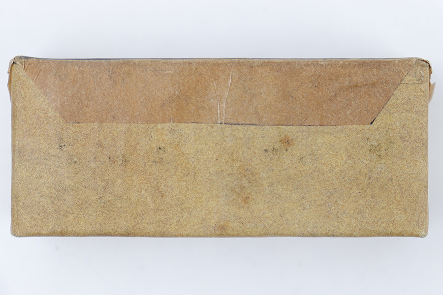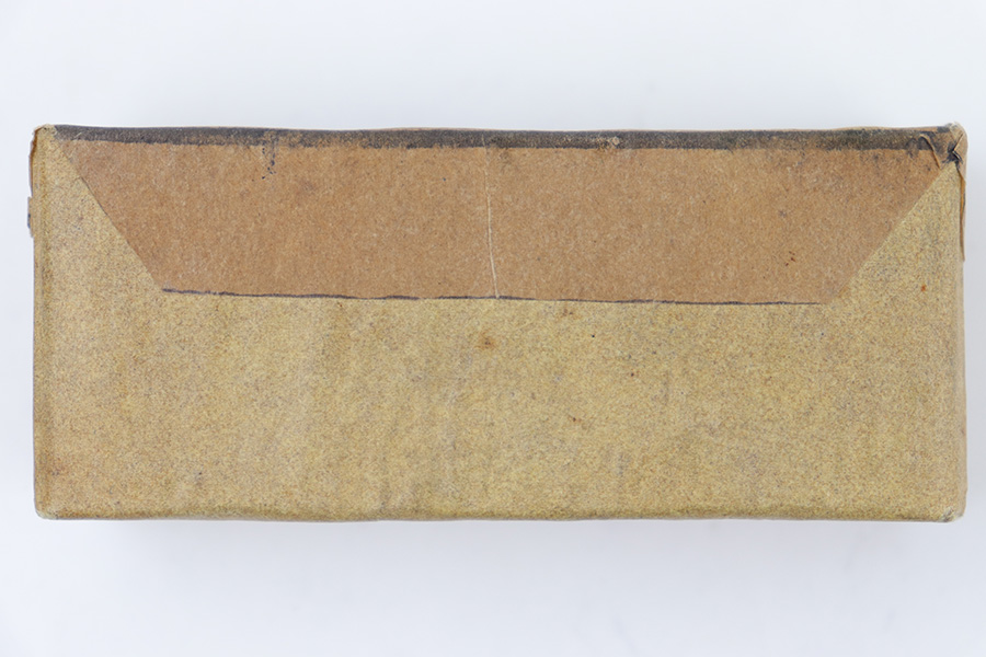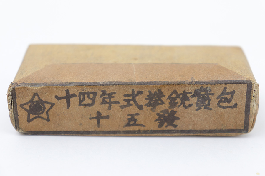 5/17/23 – This is an original, unopened box of 8mm Nambu pistol ammunition. The original label and ink stamped date are still intact, as shown. Excellent overall condition.