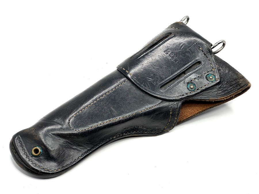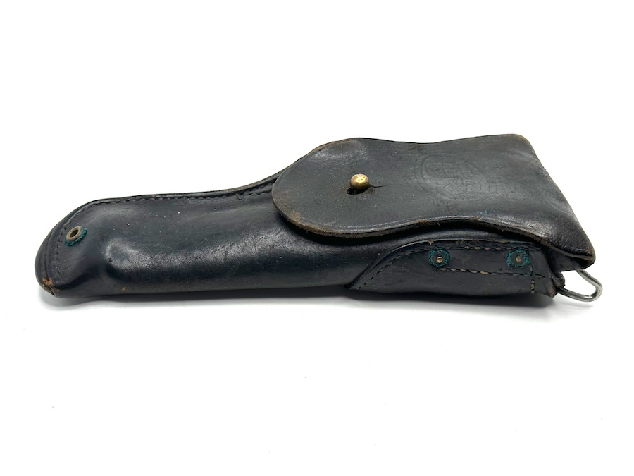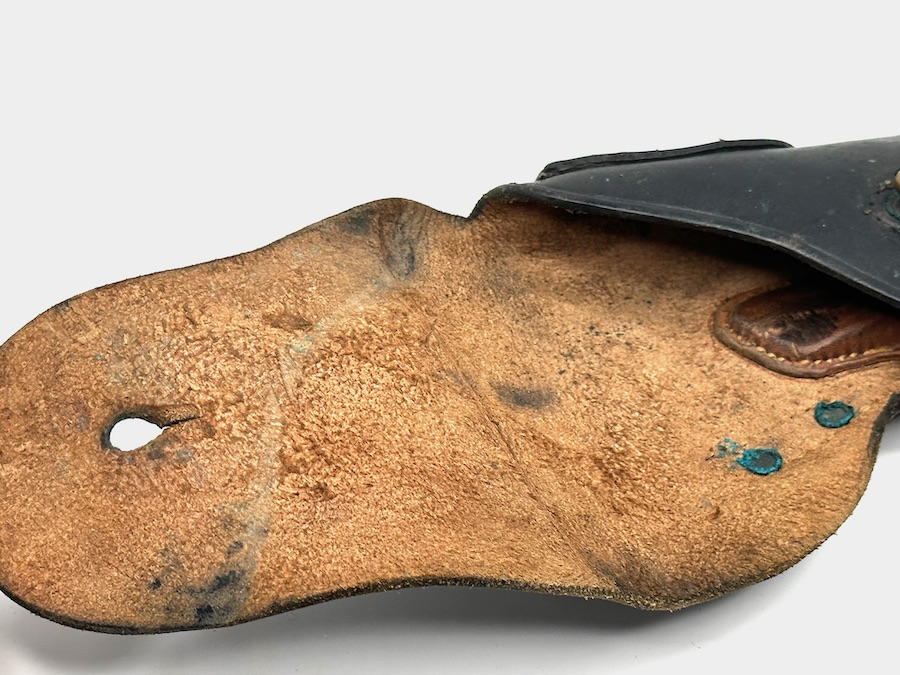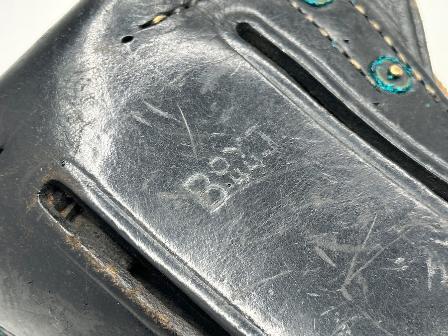 4/26/23 – This is an original 1944 dated Boyt M1916 Holster. This Holster is in overall great condition, despite showing some minor color fading and scuffing on the front closure flap. Stitching all over the holster is in great shape as well as being all original. This holster has a maker and date stamp on the back leather that reads Boyt 44.
