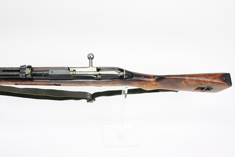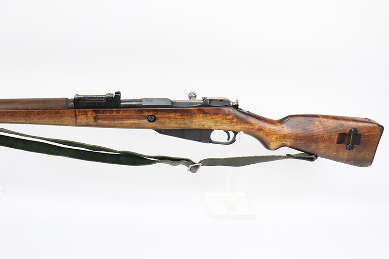 9/27/22 – This is an excellent example of a Finnish Mosin M39 rifle, manufactured in 1944. The bolt matches the receiver, but the floor plate is mismatched. The butt plate is un-numbered. The gun has the proper Finnish “SA” markings and the “S in Gear” Sako factory logo. Import on the barrel and added serial on the receiver. “S in Gear” marking on the stock. Comes with a cleaning rod. Overall the gun is in excellent condition. Very little actual finish loss. There are just some tiny dings on the receiver and some minor pitting under the finish on the magazine. The stock has no major damage, but there is minor bruising and scratching throughout. Excellent bore with strong rifling. Comes with a green leather sling.