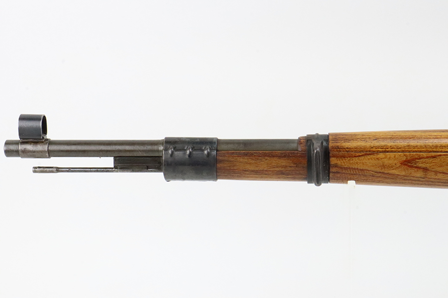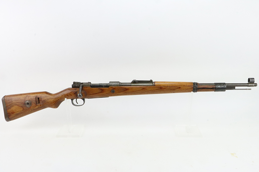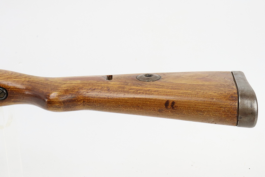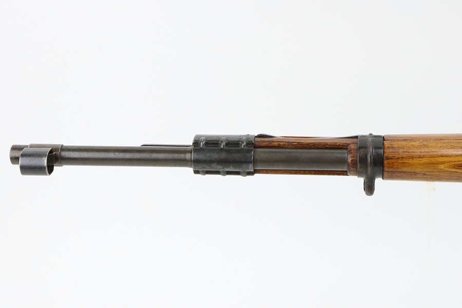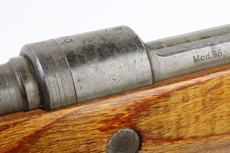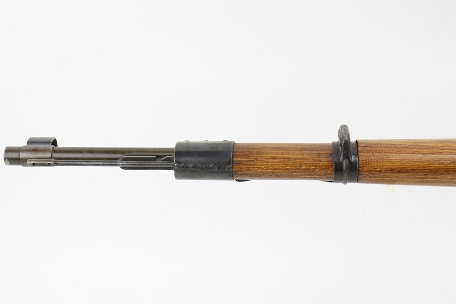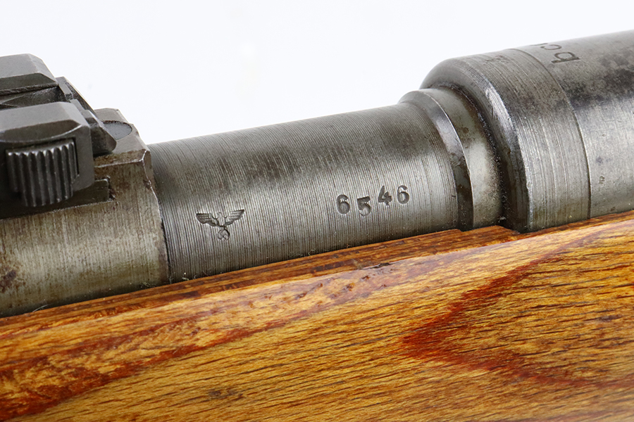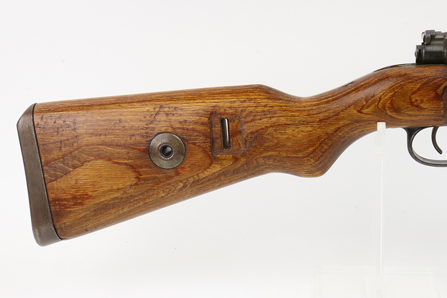 2/29/24 – This is a very nice example of a late-war “bcd 4” Gustloff Werke K98 issued to the Nazi military in 1944. It is all matching and has mixed phosphate and blued parts – the majority of the gun is phosphate. While there is not much actual finish loss, there is spotty discoloration on the phosphate (this is typical). The wood furniture is excellent, but it has been treated with a very thin layer of lacquer. Mint bore.