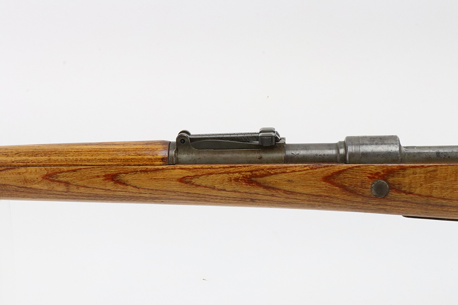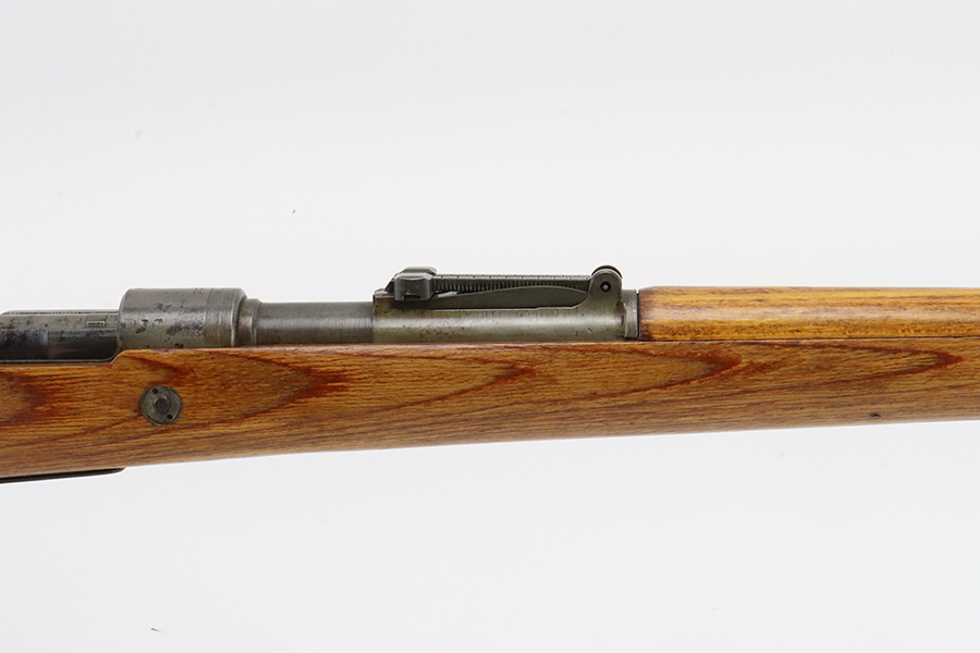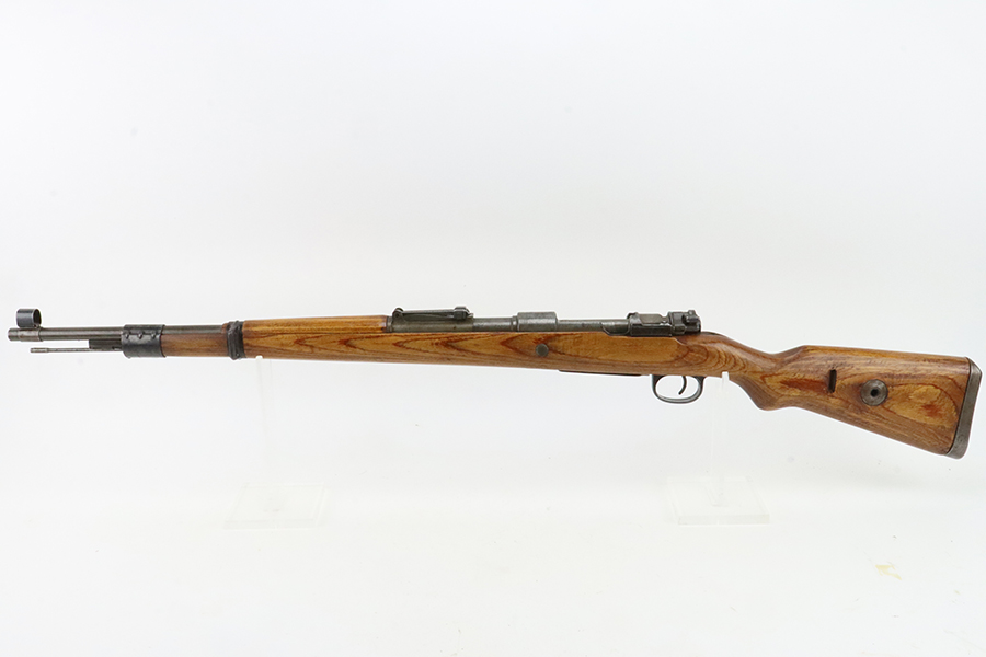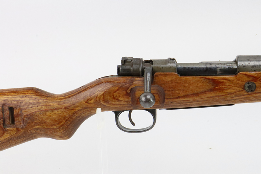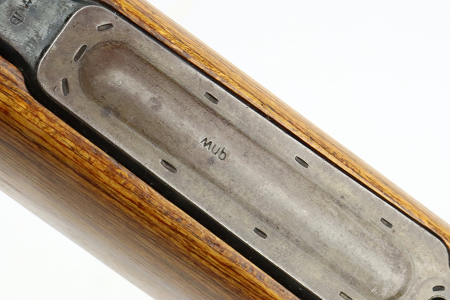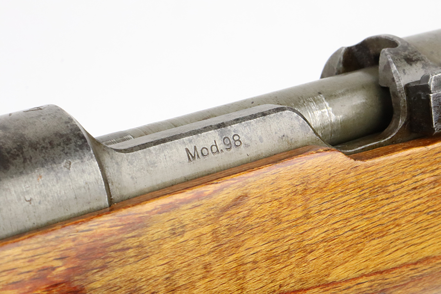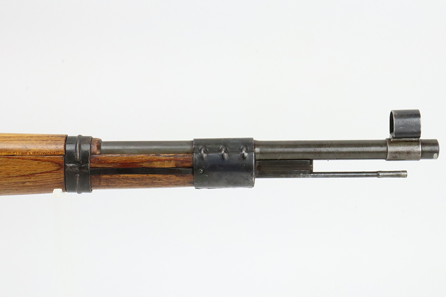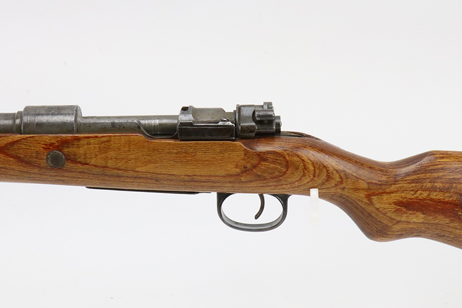 2/29/24 – This is a very nice example of a late-war “bcd 4” Gustloff Werke K98 issued to the Nazi military in 1944. It is all matching and has mixed phosphate and blued parts – the majority of the gun is phosphate. While there is not much actual finish loss, there is spotty discoloration on the phosphate (this is typical). The wood furniture is excellent, but it has been treated with a very thin layer of lacquer. Mint bore.