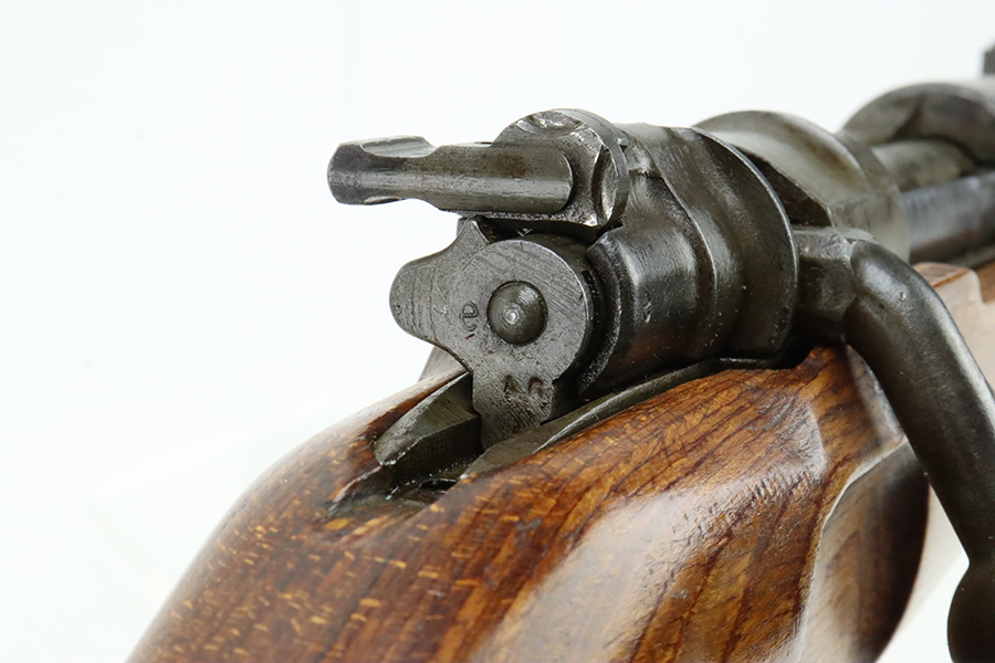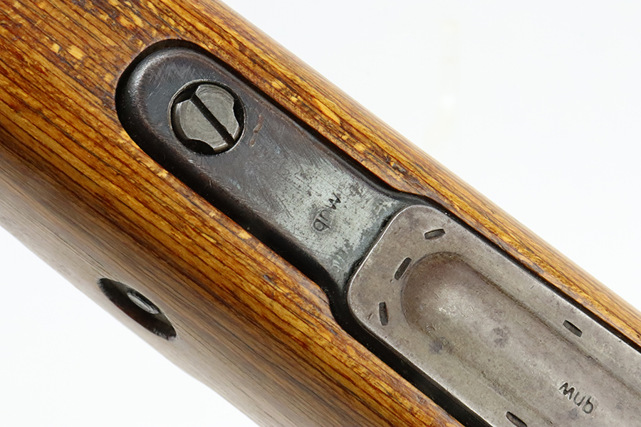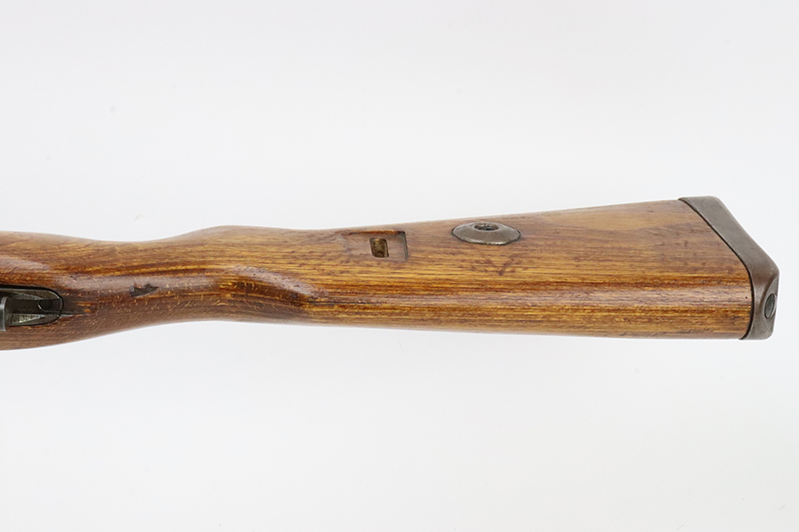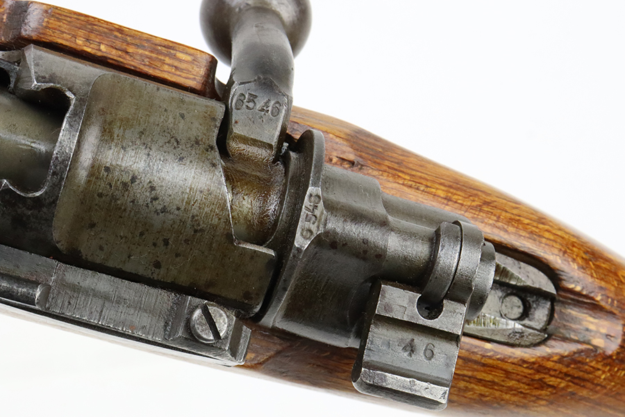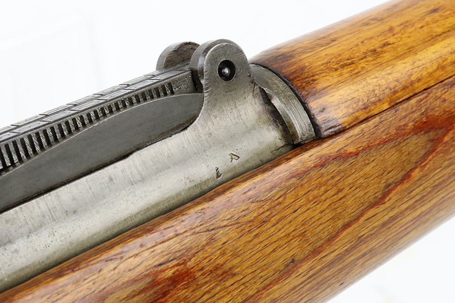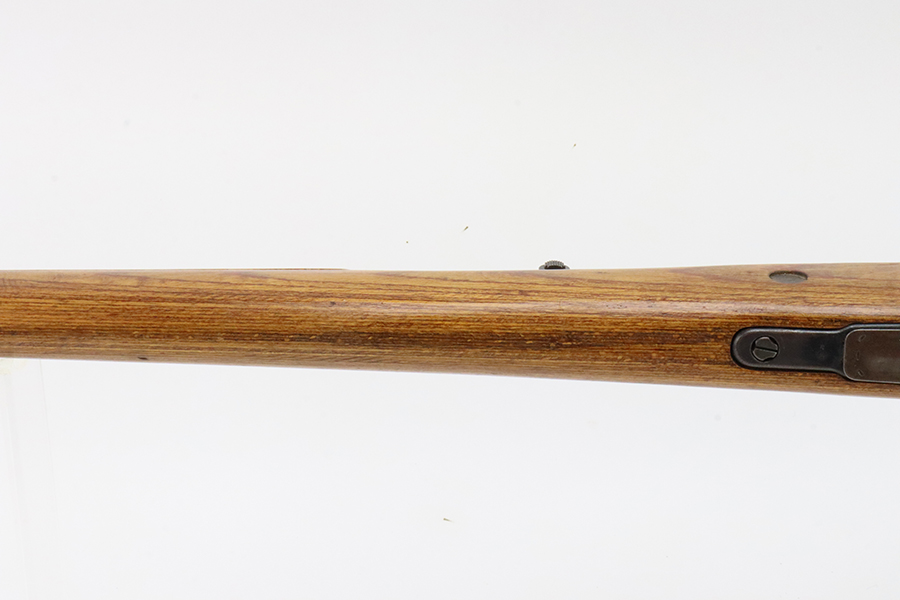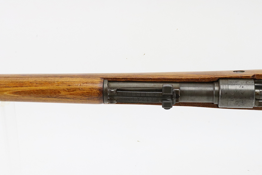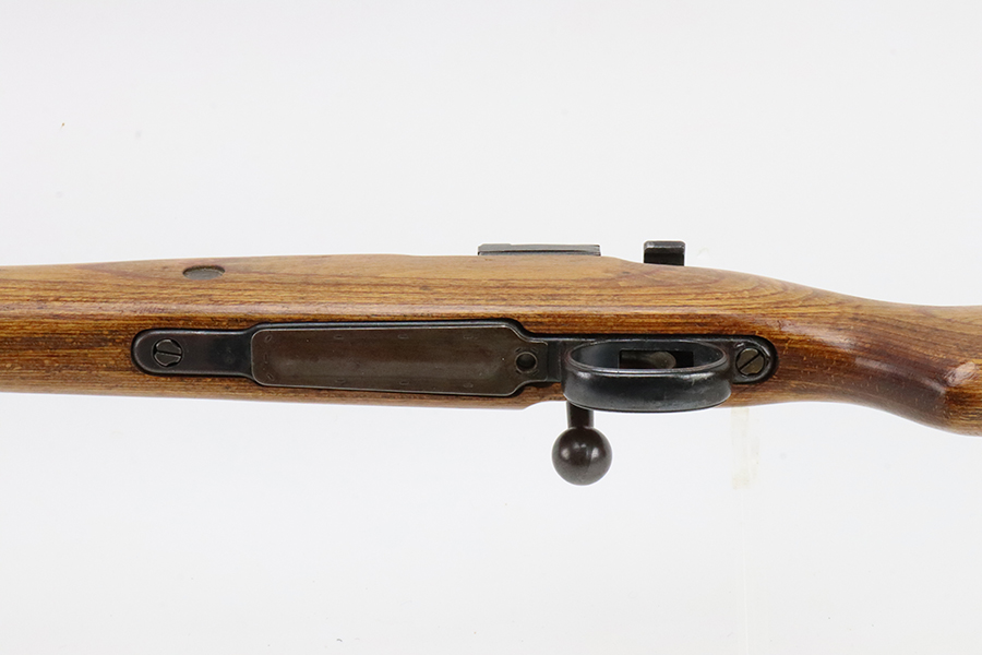 2/29/24 – This is a very nice example of a late-war “bcd 4” Gustloff Werke K98 issued to the Nazi military in 1944. It is all matching and has mixed phosphate and blued parts – the majority of the gun is phosphate. While there is not much actual finish loss, there is spotty discoloration on the phosphate (this is typical). The wood furniture is excellent, but it has been treated with a very thin layer of lacquer. Mint bore.