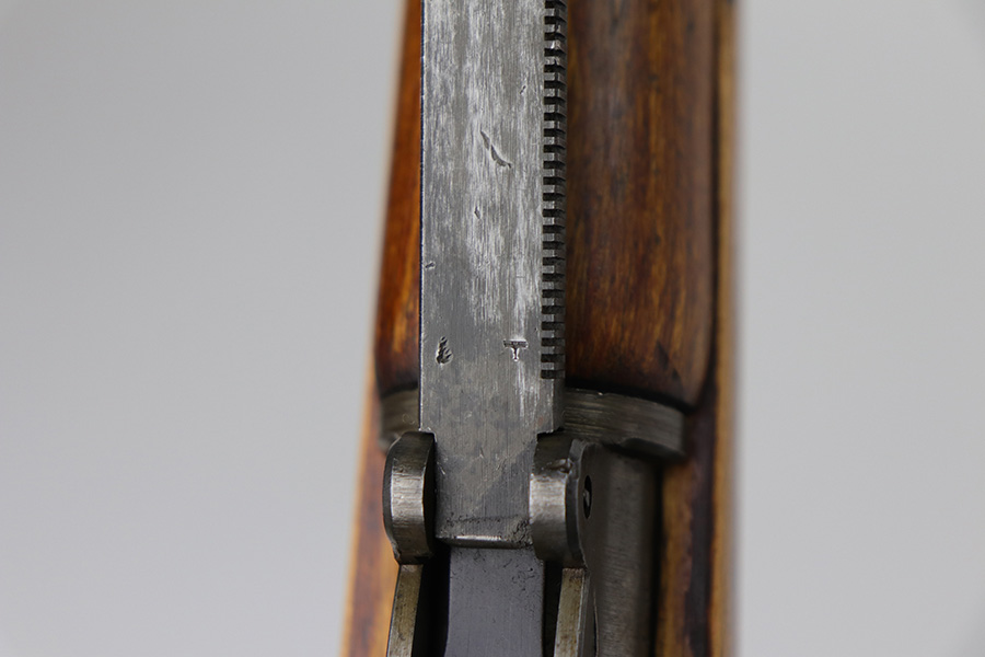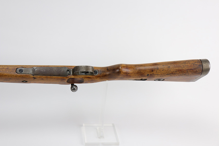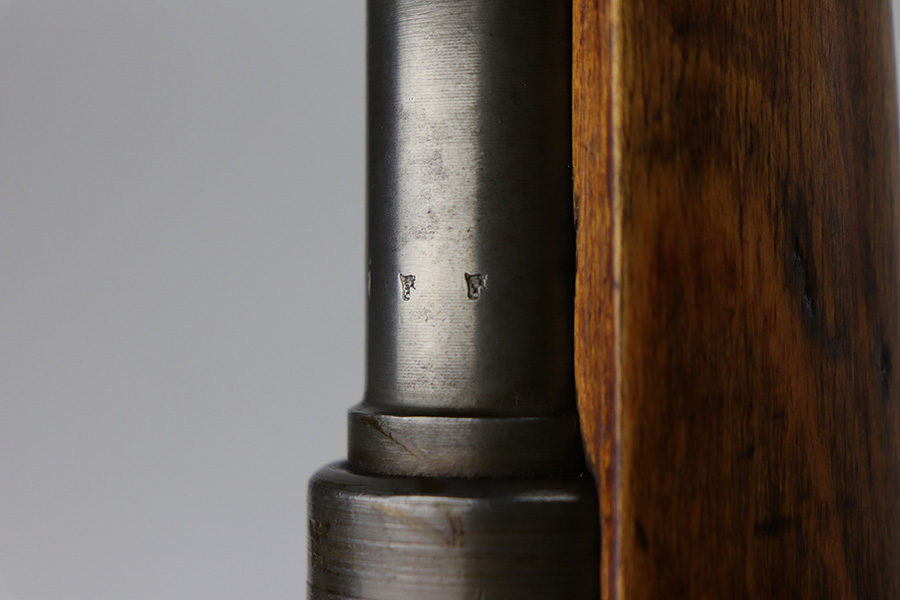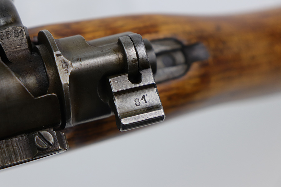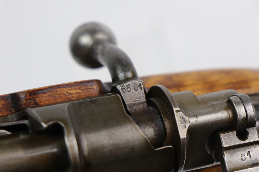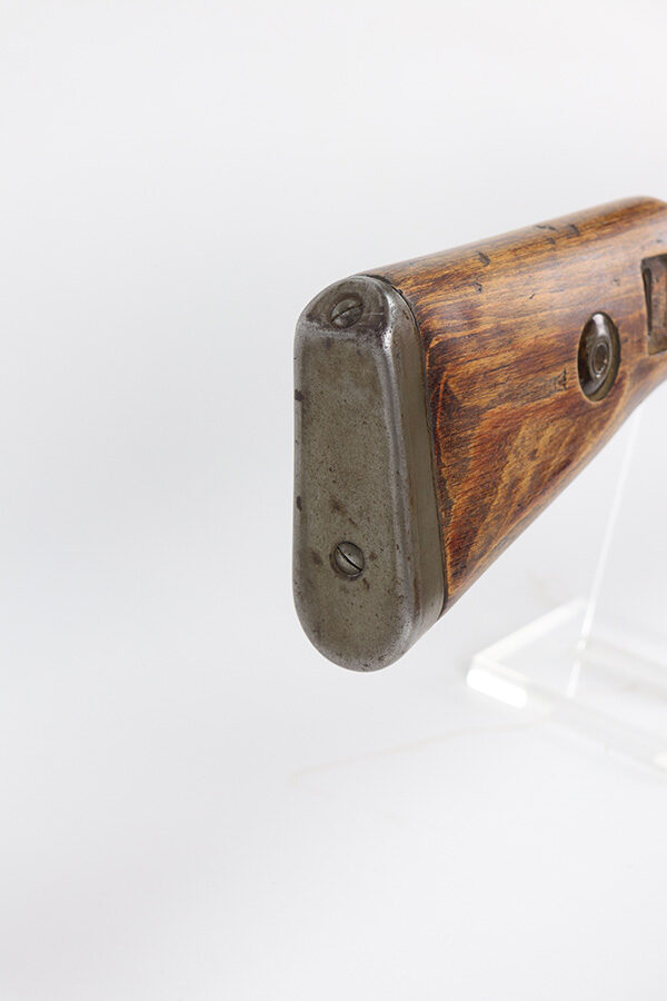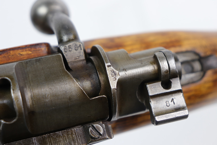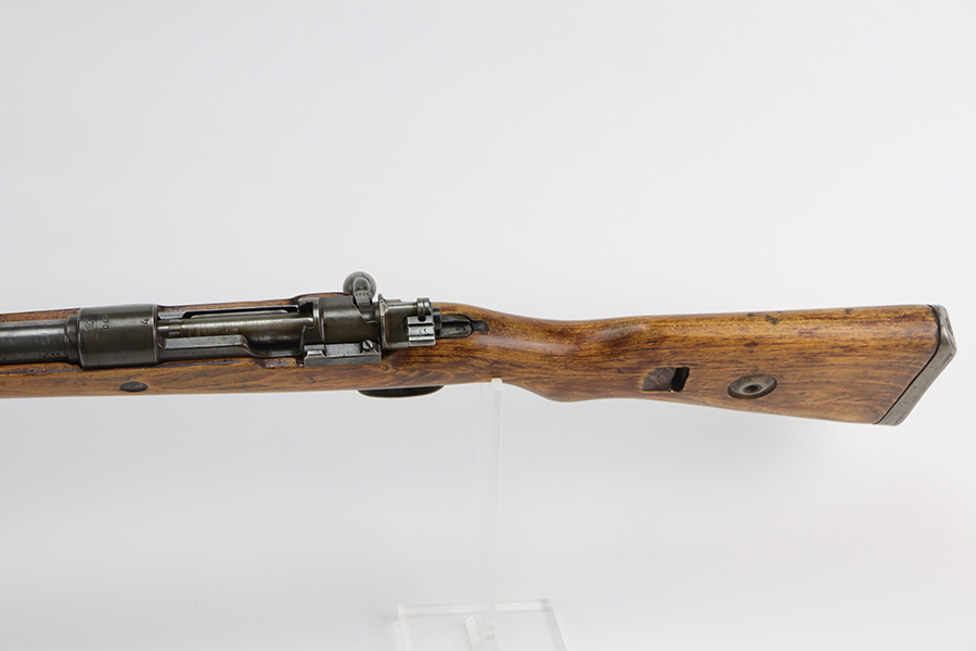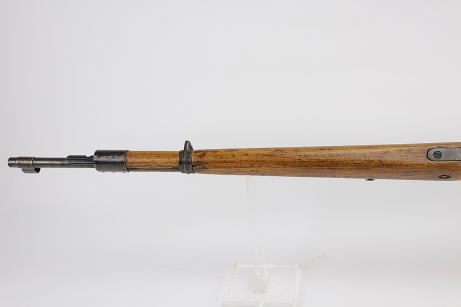9/2/21 – This is a very nice example of a Gustloff-Werke K98 rifle issued to the Nazi military in 1944. It is all matching and has the proper waffen military proofs throughout. The barrel bands are un-numbered. The stock is not numbered, but has a “Waffen Eagle H” proof. This gun is unique because it has a late-war all-phosphate finish. A few of the small parts are blued. There areas of thinning and spotty oxidation throughout, typical for these finishes. The stock is nice, but appears to have been lightly sanded. Small digs and dents throughout. The bore is near-mint.