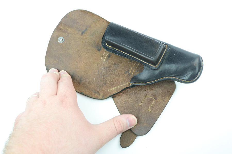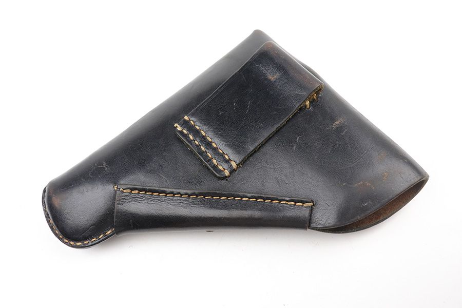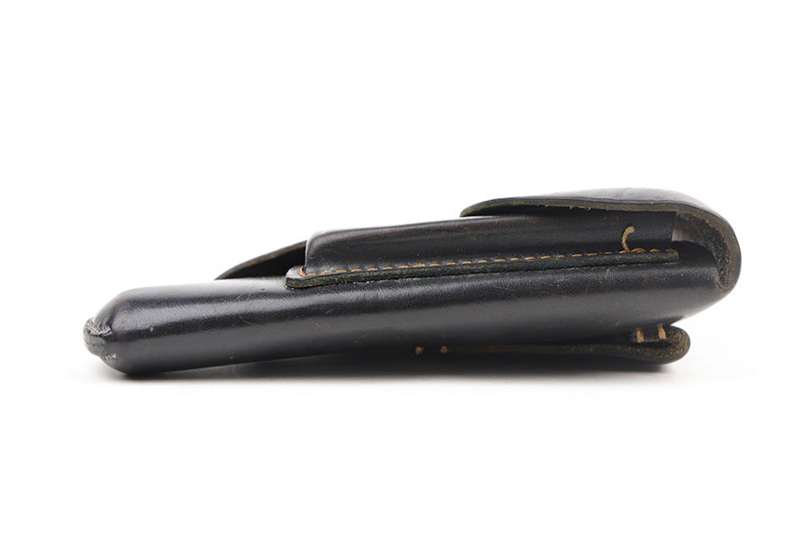 8/30/21 – This is an original late WW2 production pistol holster. The holster is jhg maker stamped and 1944 dated under the closure strap. There’s also a faint waffen proof stamp on the closure strap. These holsters are often seen paired with a Sauer 38h or Mauser HSc. The black leather is in great condition and the stitching is excellent throughout.