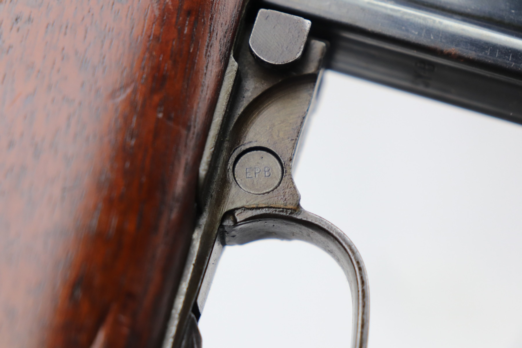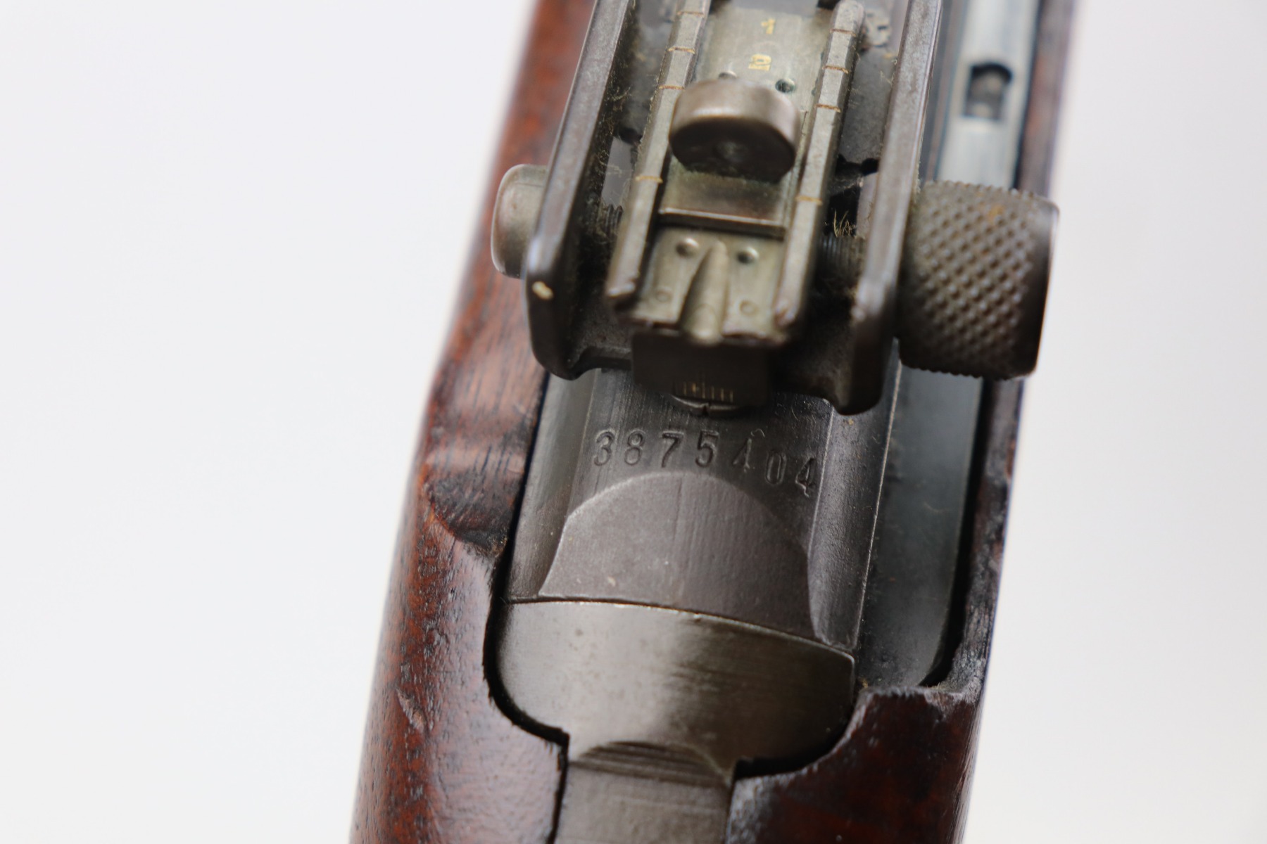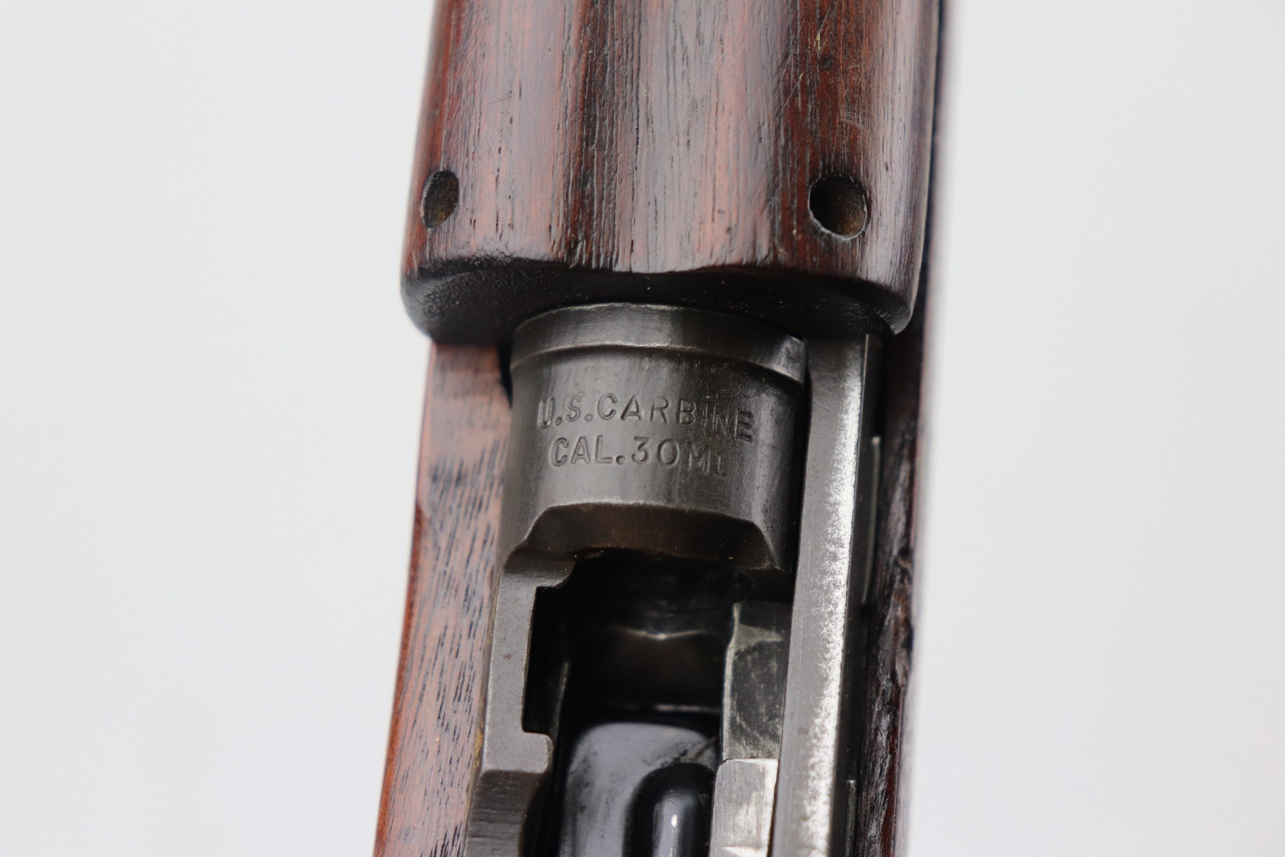 2/26/21 – This is an excellent example of an IBM M1 Carbine issued to the US military in 1944. A bayo lug was added, likely for Korea. The adjustable rear sight is in the correct serial range to be correct for WW2. It has an Underwood barrel. Correct stock, but has no military cartouches. The internal parts are correct. Parts list with their markings is included. Comes with a WW2 magazine. The bolt is parkerized and has an “X” on it. Overall, the gun is in excellent condition. There is minor wear on the bayo lug and on the high edges of the receiver. The stock is excellent except for minor dings and scratches here and there. Minty bore.