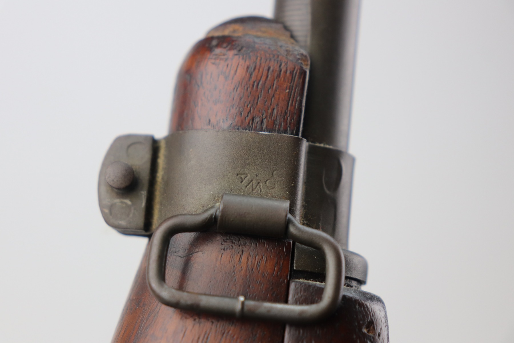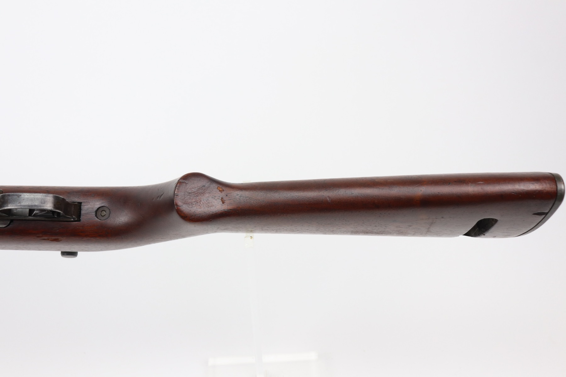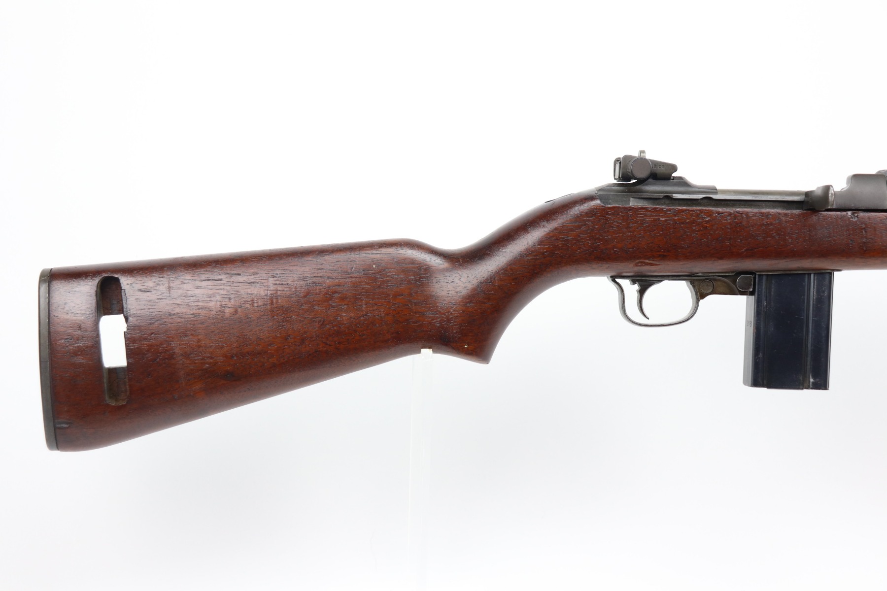 2/26/21 – This is an excellent example of an IBM M1 Carbine issued to the US military in 1944. A bayo lug was added, likely for Korea. The adjustable rear sight is in the correct serial range to be correct for WW2. It has an Underwood barrel. Correct stock, but has no military cartouches. The internal parts are correct. Parts list with their markings is included. Comes with a WW2 magazine. The bolt is parkerized and has an “X” on it. Overall, the gun is in excellent condition. There is minor wear on the bayo lug and on the high edges of the receiver. The stock is excellent except for minor dings and scratches here and there. Minty bore.