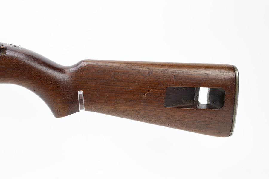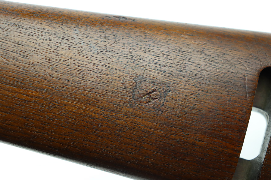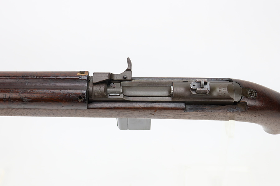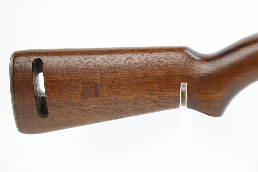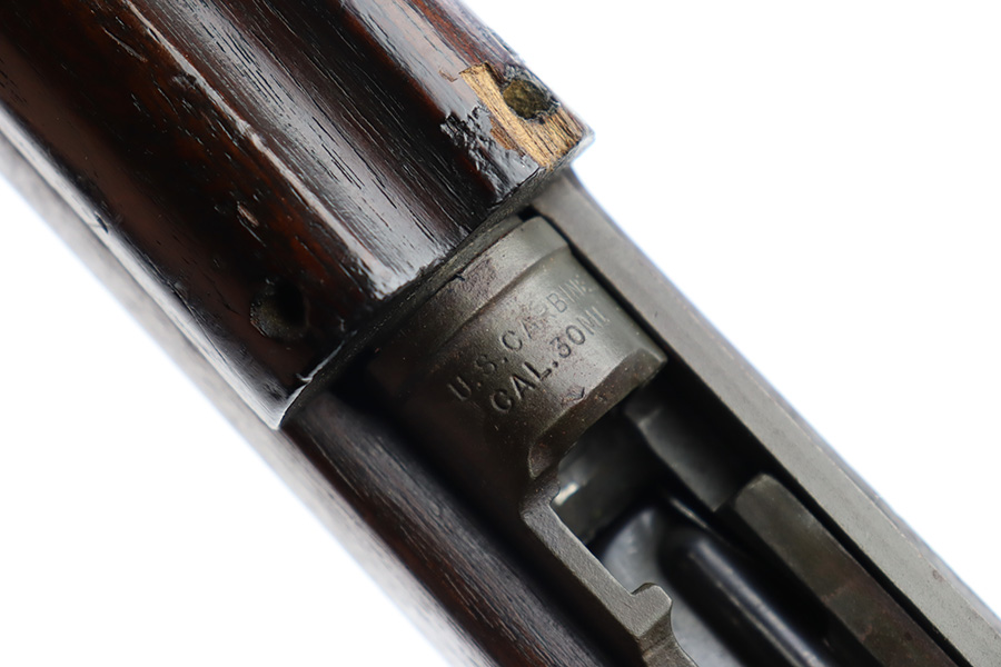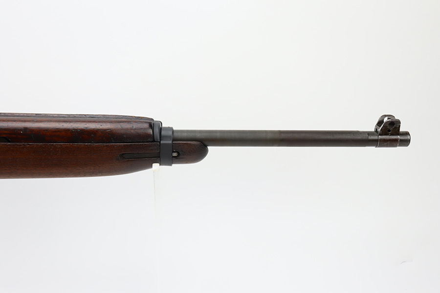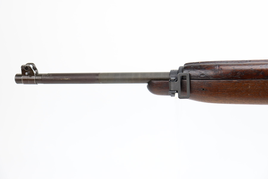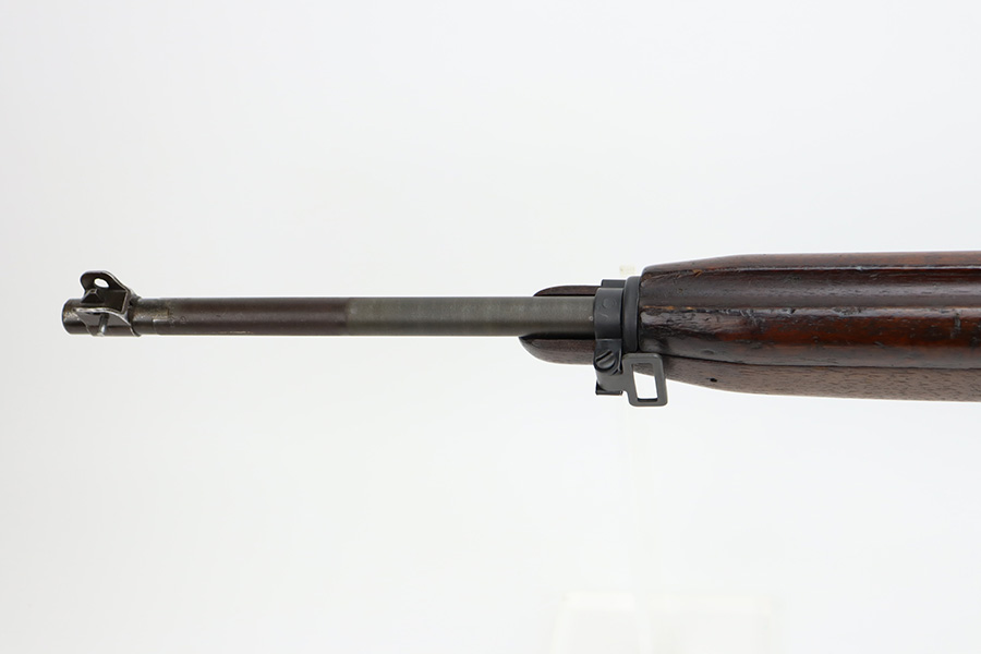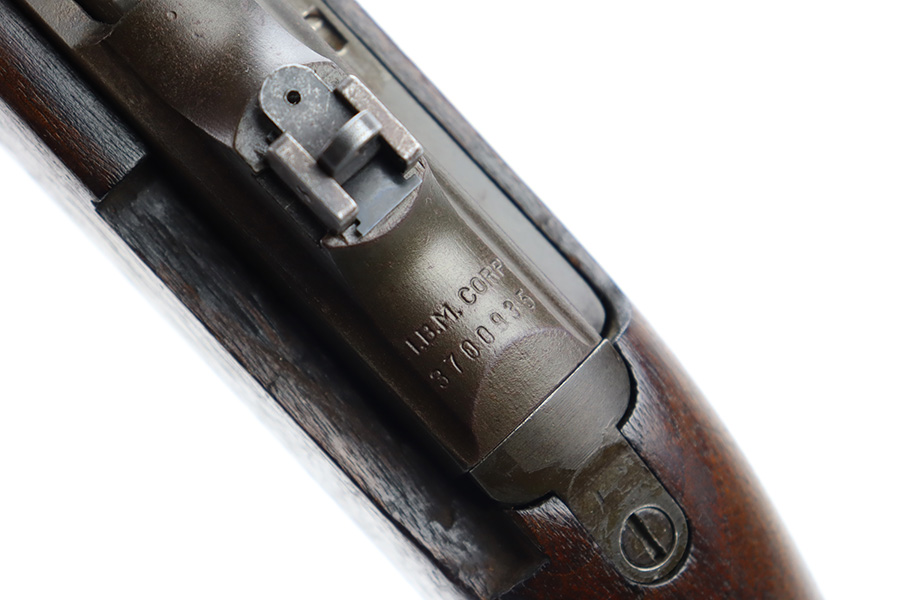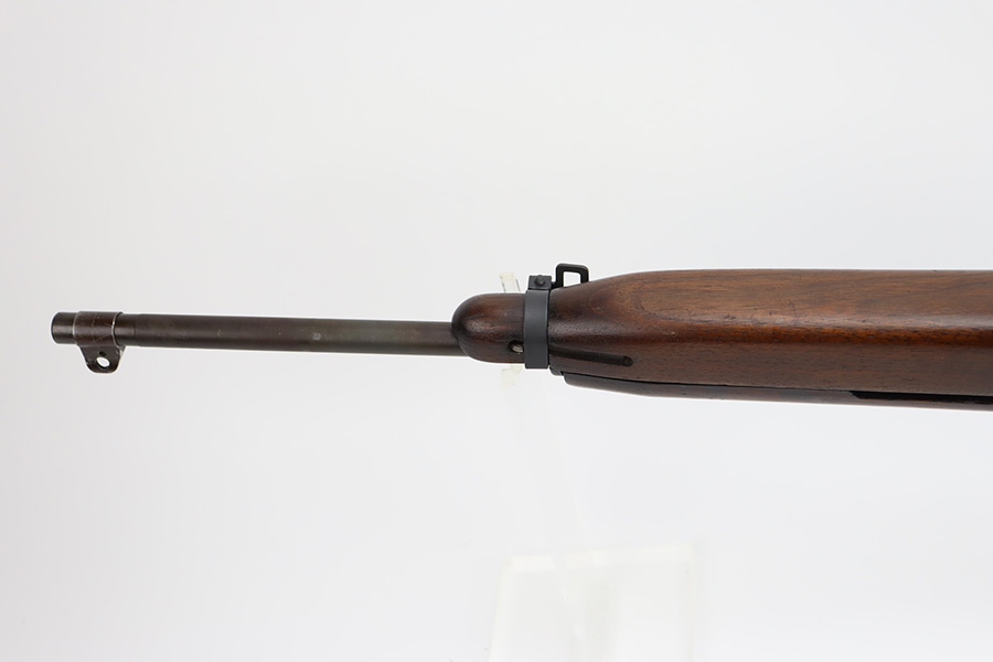 12/7/23 – This is a nice IBM M1 Carbine issued to the US military in 1944. The barrel is IBM-marked and dated 10-43. “IO” marked Inland stock with a cross-canon cartouche and “H” marking on the right side of the butt stock. The top of the barrel near the front sight appears to have been milled. There is very little actual finish loss on the metal parts, but there is brown patina under the finish throughout. Overall, the wood is pretty nice, but there is a small chip in the upper hand guard and a rectangular cut-out on the left side of the stock, up against the receiver. Excellent bore.