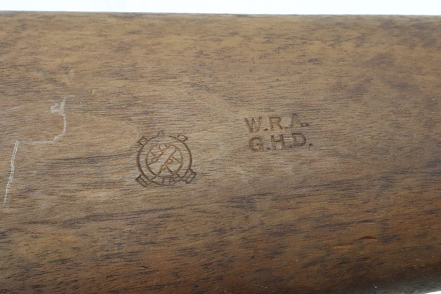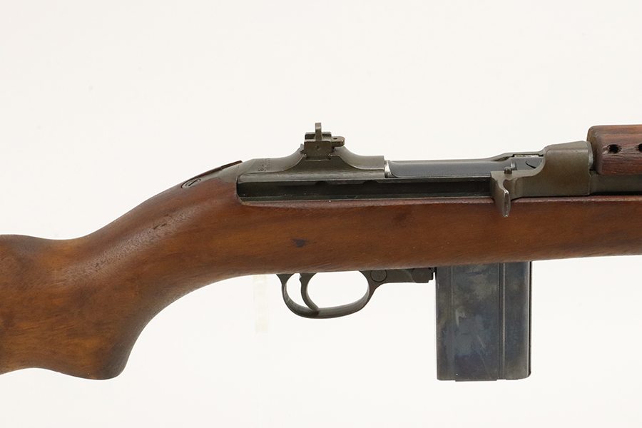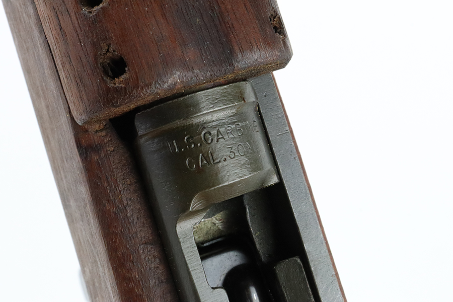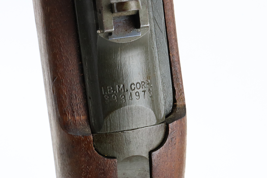 2/29/24 – This is an IBM M1 Carbine from 1944. The barrel is marked IBM, but the stock is a reproduction replacement. The finish on the metal parts is original and rates about 98%. There is almost no actual finish loss, but there is some spotty patina on the barrel. The wood is excellent. Mint bore.
