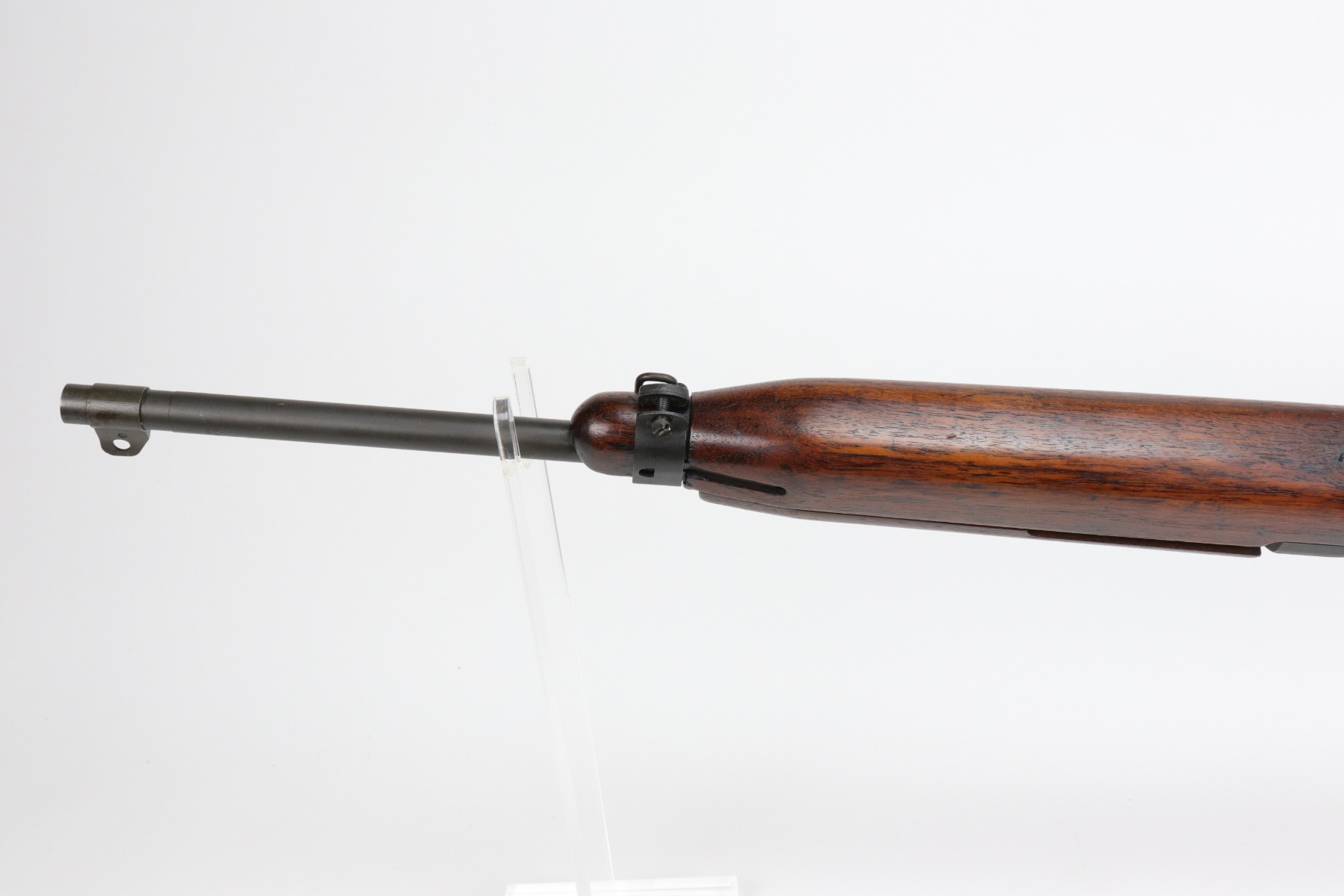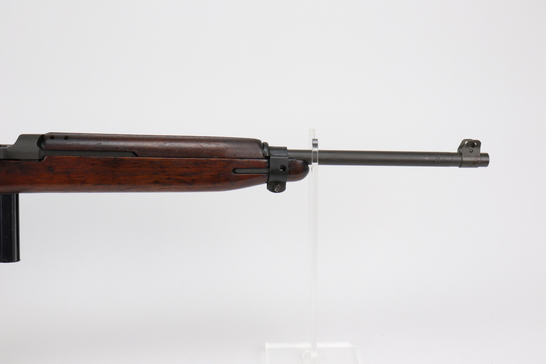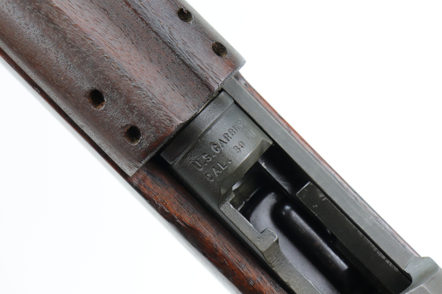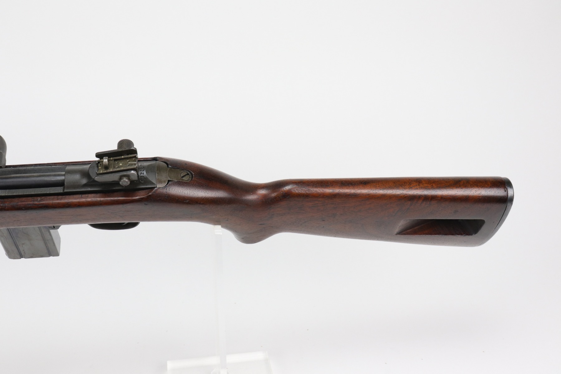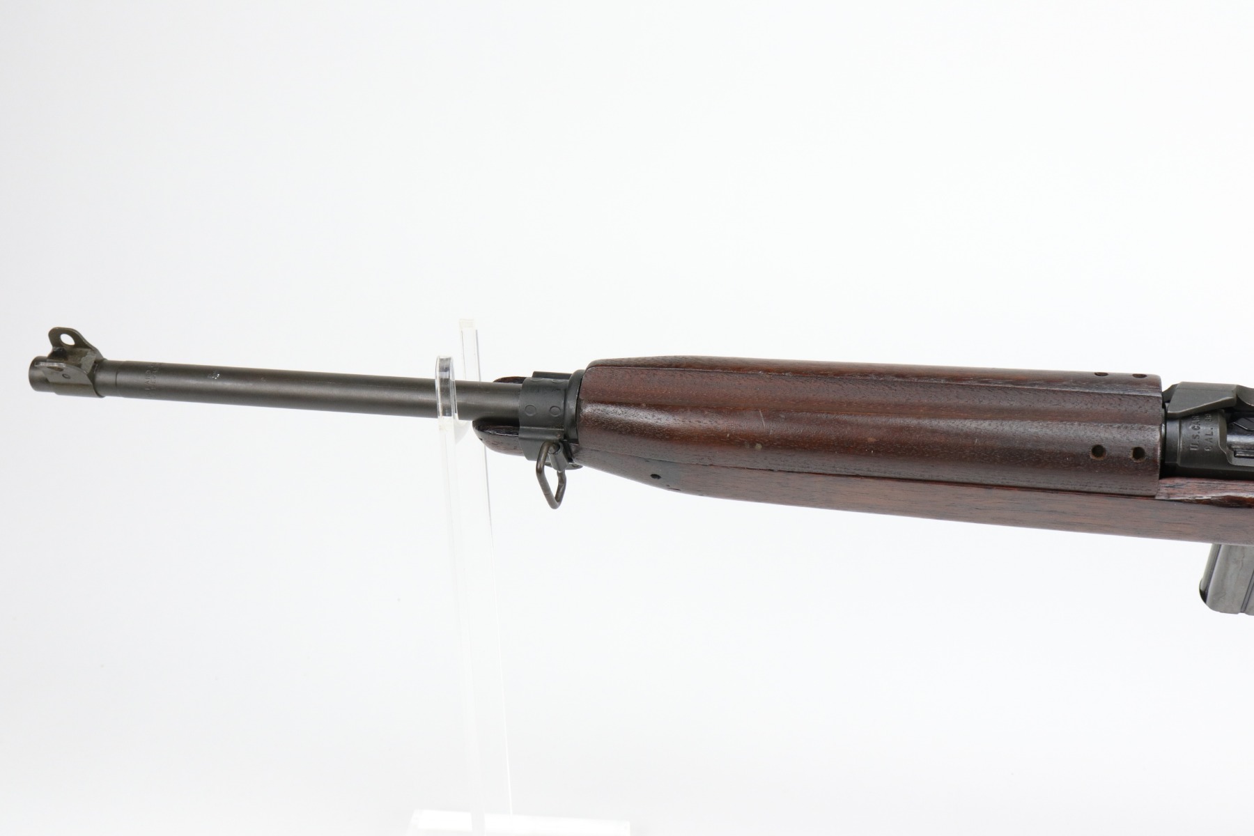 2/23/21 – This is an excellent example of an Inland M1 Carbine issued to the US military in late 1944. All original and correct. The barrel and stock are properly Inland marked. The adjustable rear sight is proper for a gun this late in the war’. It has a proper round bolt that is marked “IO”. The slide is marked “PI”. The hammer is marked “WI”. The trigger housing is also properly Inland marked. The mag release is marked “IH”. Overall, the gun is in excellent condition, retaining virtually all of its finish with just one spot of discoloration around the muzzle. The stock is excellent except for a few very minor dings. The bore is mint. Comes with one period-correct magazine.