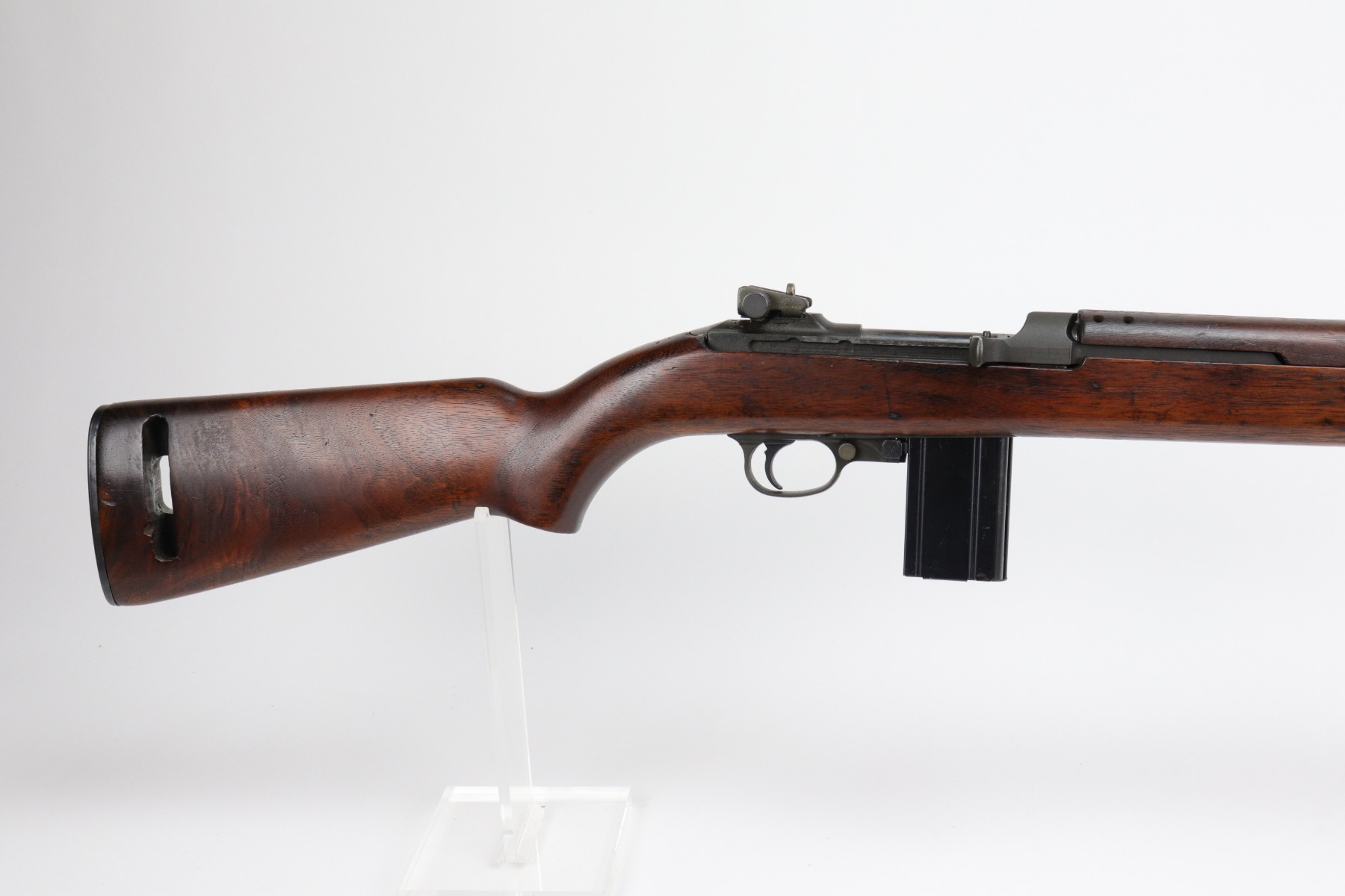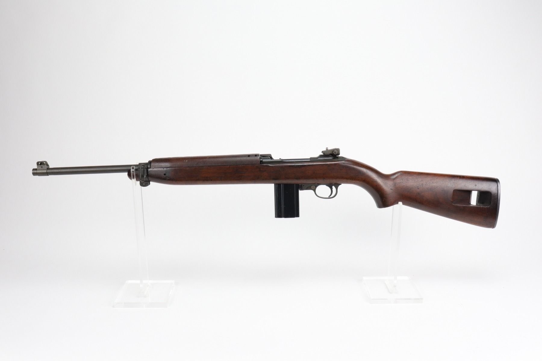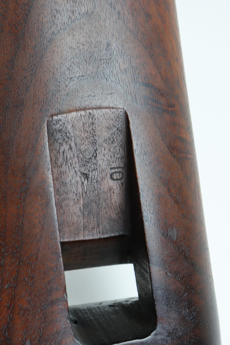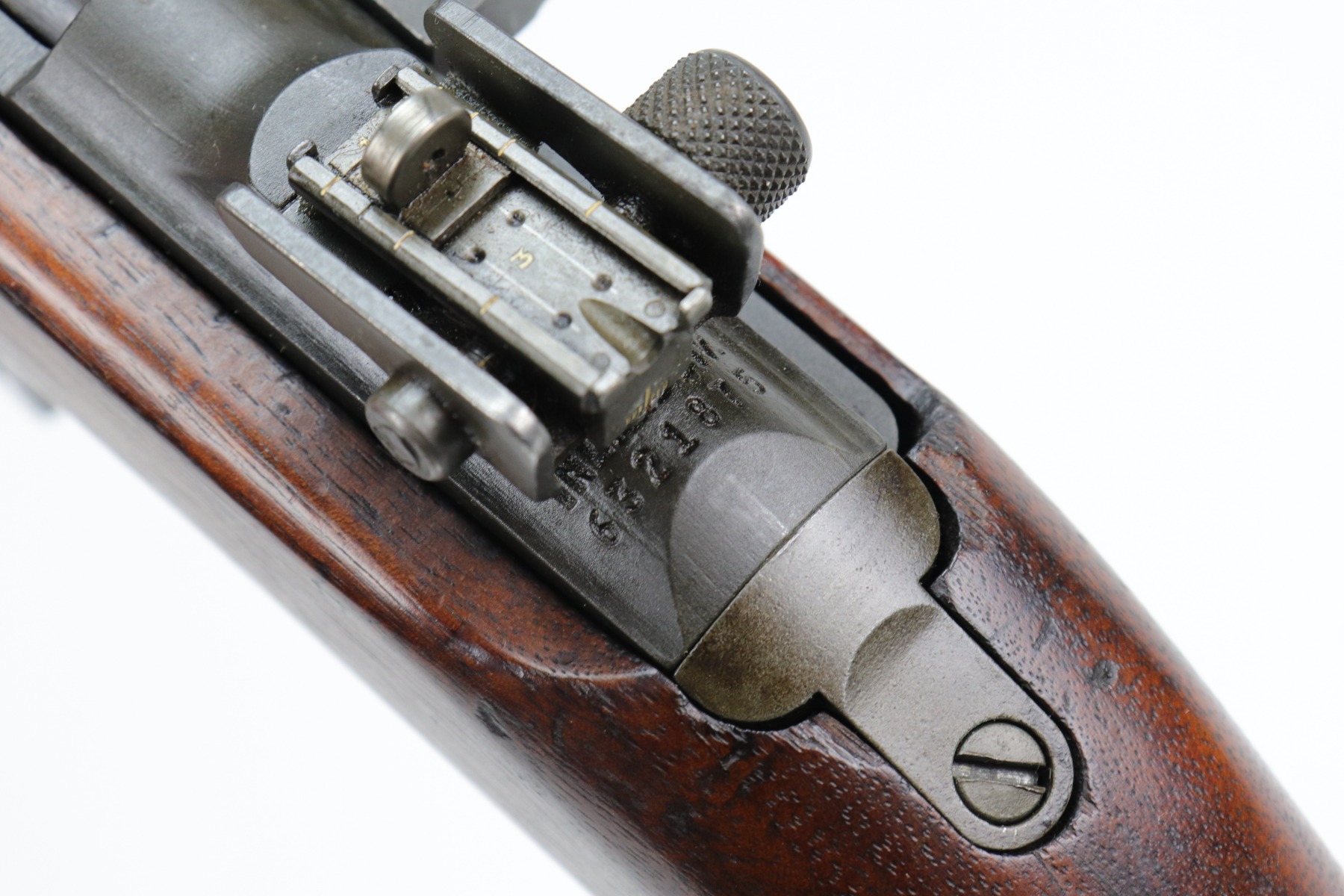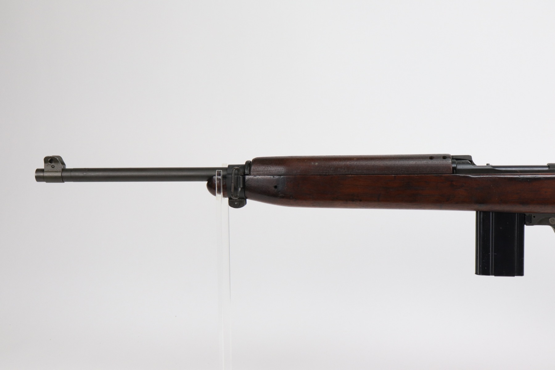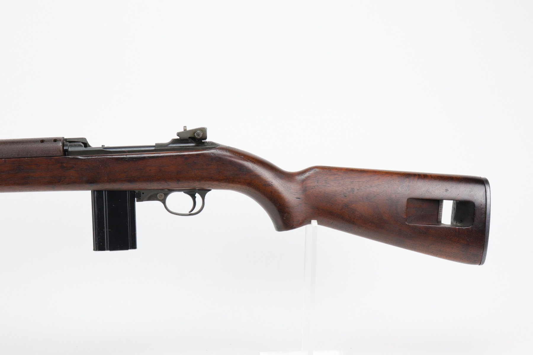 2/23/21 – This is an excellent example of an Inland M1 Carbine issued to the US military in late 1944. All original and correct. The barrel and stock are properly Inland marked. The adjustable rear sight is proper for a gun this late in the war’. It has a proper round bolt that is marked “IO”. The slide is marked “PI”. The hammer is marked “WI”. The trigger housing is also properly Inland marked. The mag release is marked “IH”. Overall, the gun is in excellent condition, retaining virtually all of its finish with just one spot of discoloration around the muzzle. The stock is excellent except for a few very minor dings. The bore is mint. Comes with one period-correct magazine.