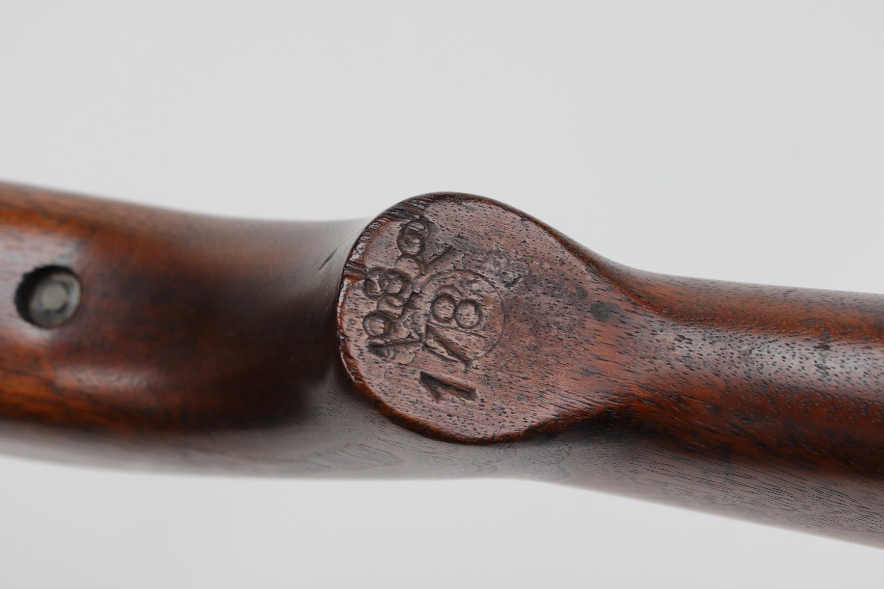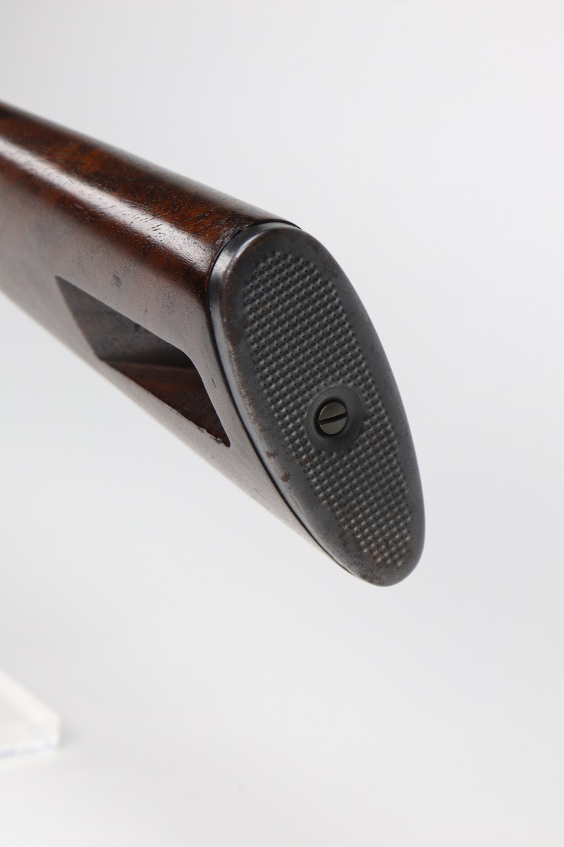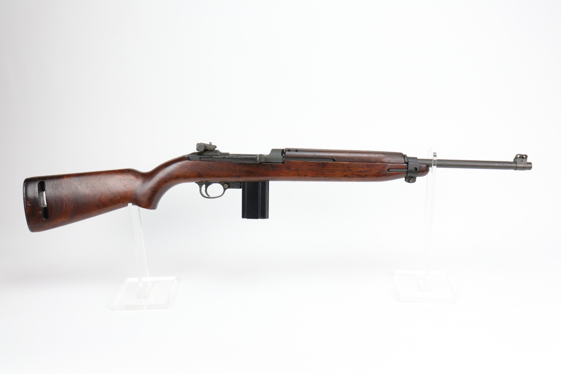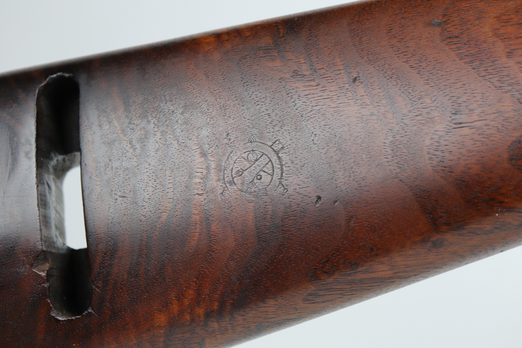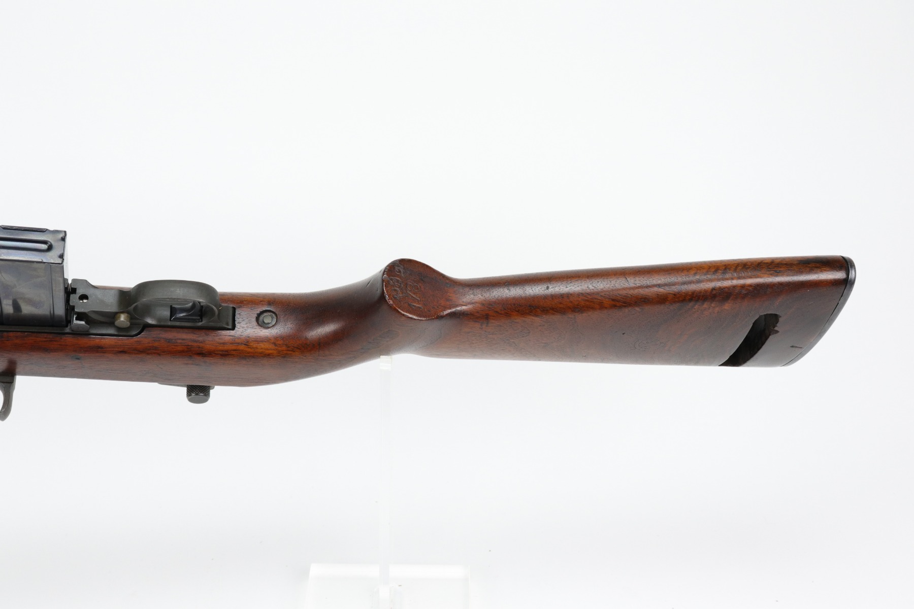 2/23/21 – This is an excellent example of an Inland M1 Carbine issued to the US military in late 1944. All original and correct. The barrel and stock are properly Inland marked. The adjustable rear sight is proper for a gun this late in the war’. It has a proper round bolt that is marked “IO”. The slide is marked “PI”. The hammer is marked “WI”. The trigger housing is also properly Inland marked. The mag release is marked “IH”. Overall, the gun is in excellent condition, retaining virtually all of its finish with just one spot of discoloration around the muzzle. The stock is excellent except for a few very minor dings. The bore is mint. Comes with one period-correct magazine.