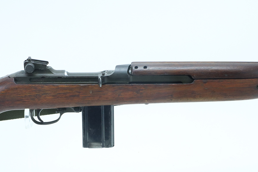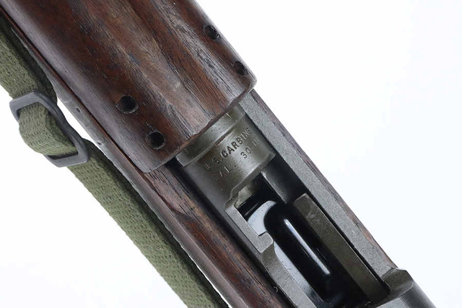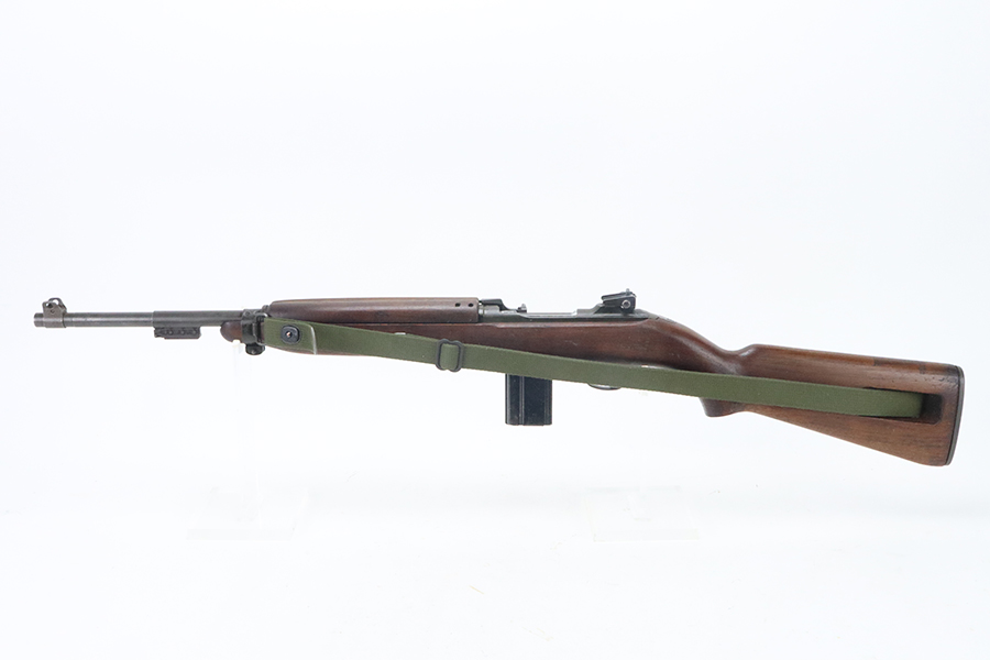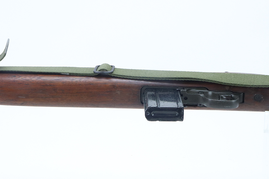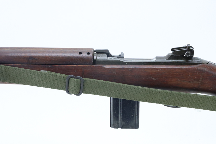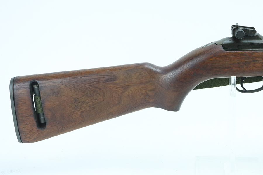 7/25/24 – This is a nice example of an Inland M1 Carbine issued to the US military in 1944. It was reworked after the war – a bayonet lug was added – likely for re-issue during the Korean War. A detailed parts list with markings is included in the photos. The finish on the metal parts rates about 94-95%. There is some minor thinning and very light spotty oxidation along the barrel. The bolt has been parkerized. Nice wood furniture, but there is a wood repair along the top edge of the butt stock. Faint cross-canon cartouche on the right side of the butt stock. Mint bore. Comes with a canvas sling, oiler, and one magazine.