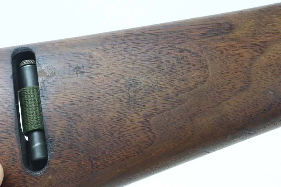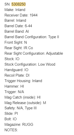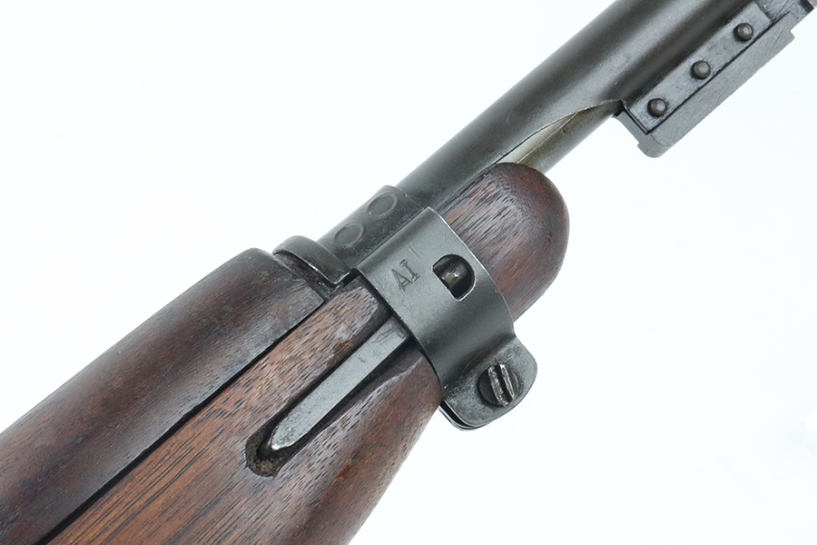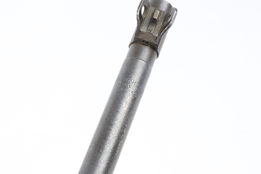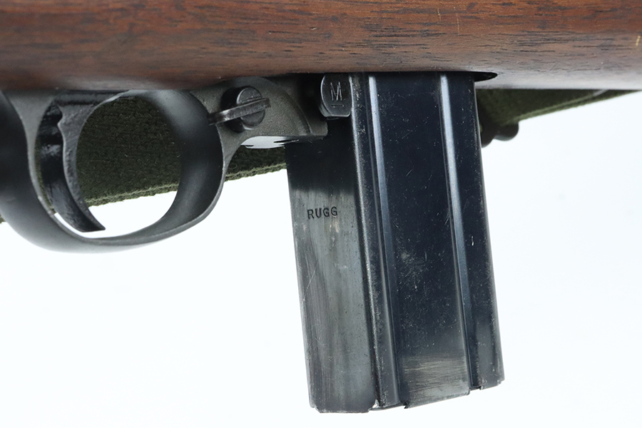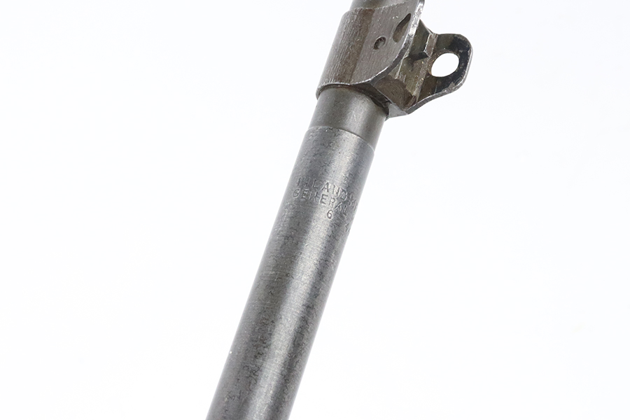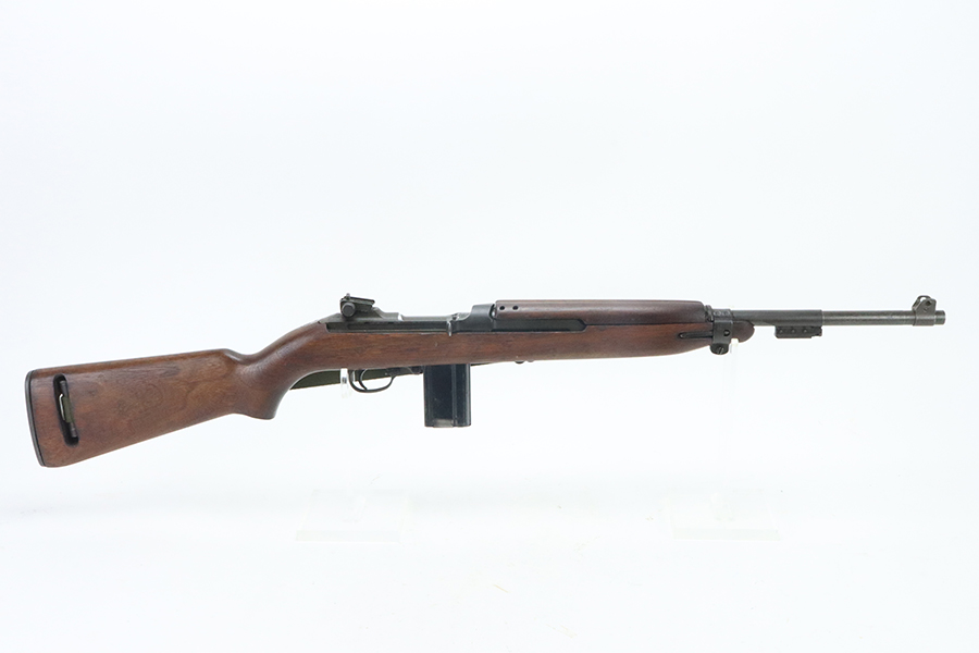 7/25/24 – This is a nice example of an Inland M1 Carbine issued to the US military in 1944. It was reworked after the war – a bayonet lug was added – likely for re-issue during the Korean War. A detailed parts list with markings is included in the photos. The finish on the metal parts rates about 94-95%. There is some minor thinning and very light spotty oxidation along the barrel. The bolt has been parkerized. Nice wood furniture, but there is a wood repair along the top edge of the butt stock. Faint cross-canon cartouche on the right side of the butt stock. Mint bore. Comes with a canvas sling, oiler, and one magazine.