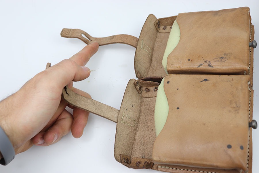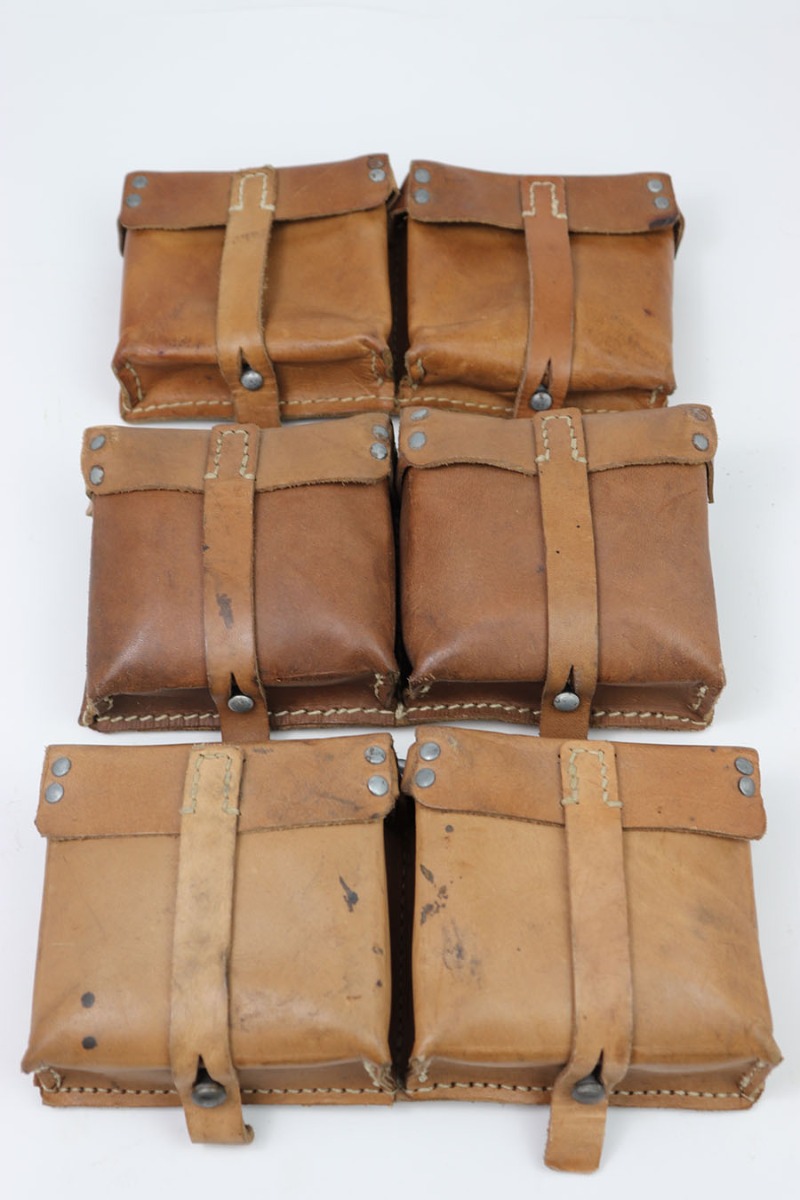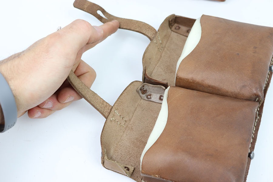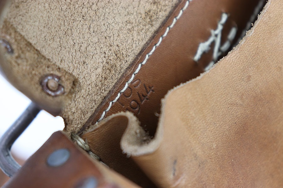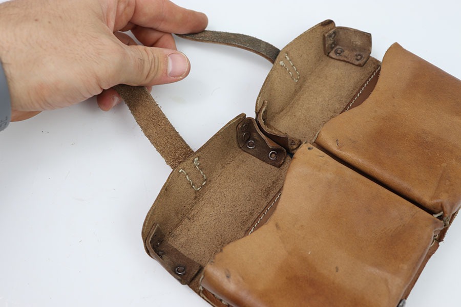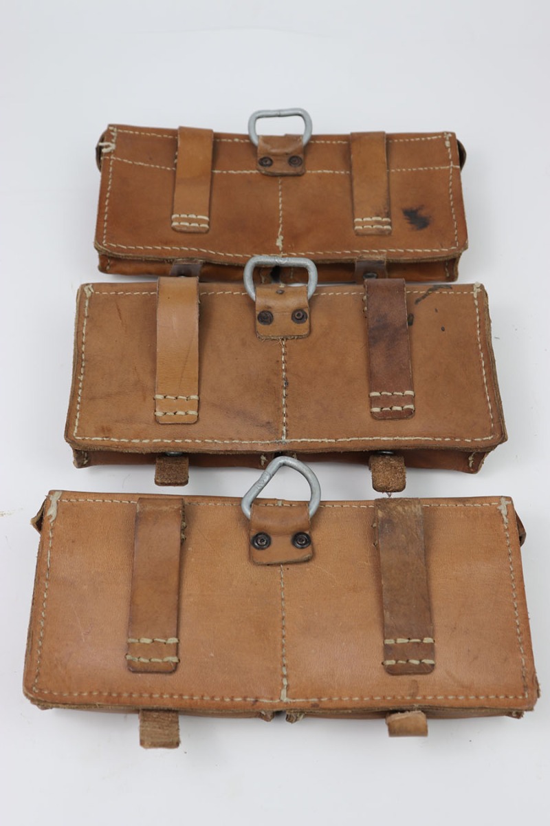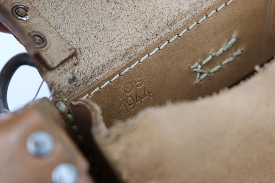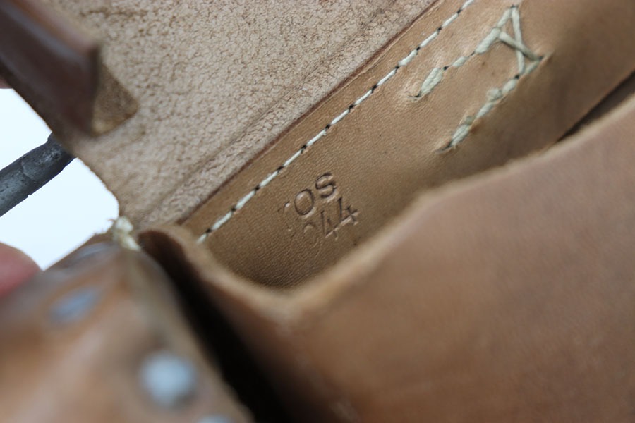 10/24/24 – This is a set of three late WW2 production K98 ammo pouches. The pouches are all smooth brown style leather and in excellent overall condition. The inside of all three pouches are marked “ros 1944”. No notable flaws and all original stitching intact throughout.