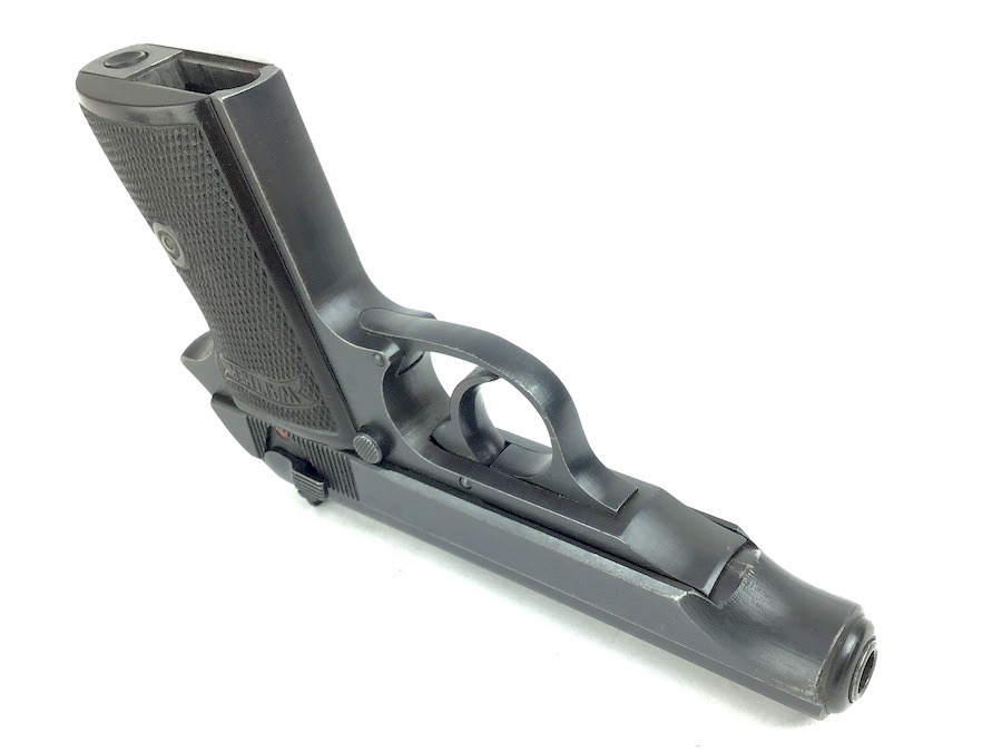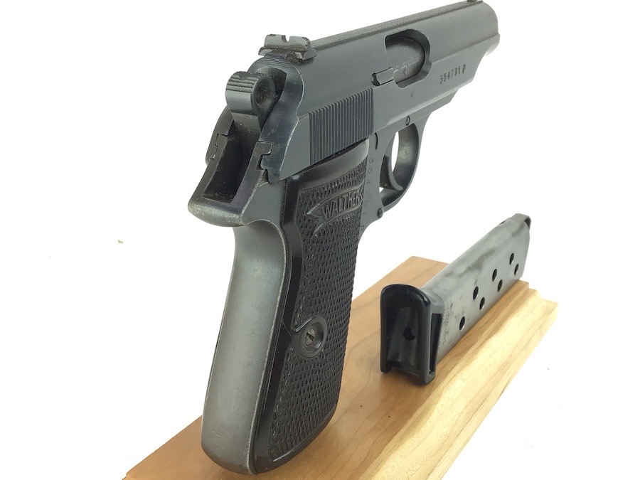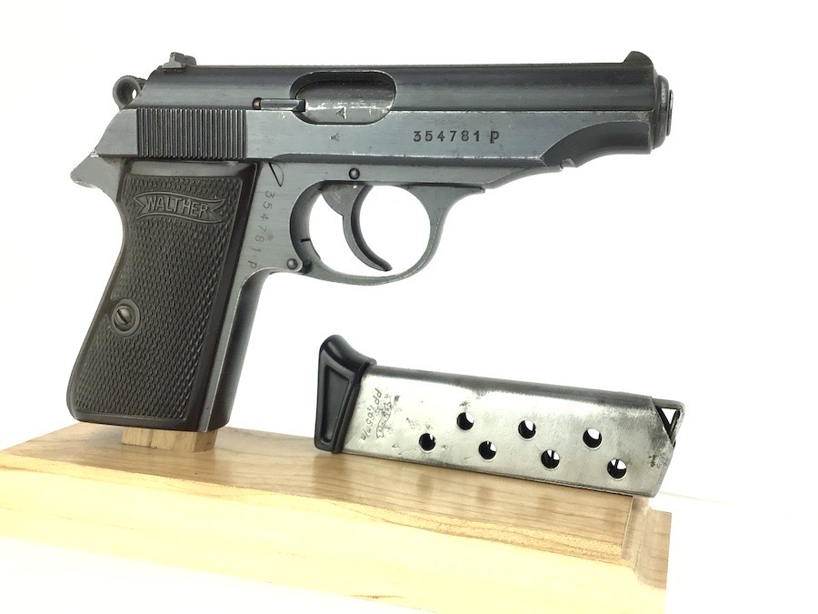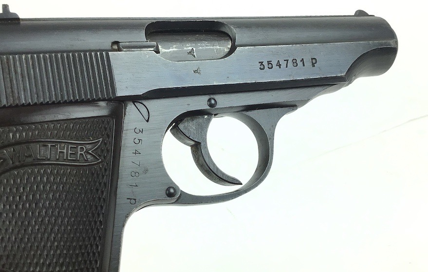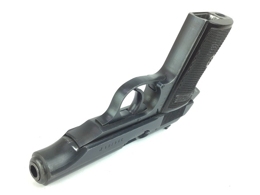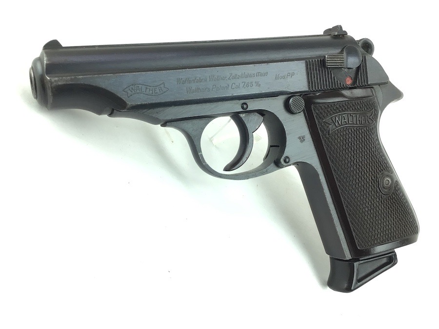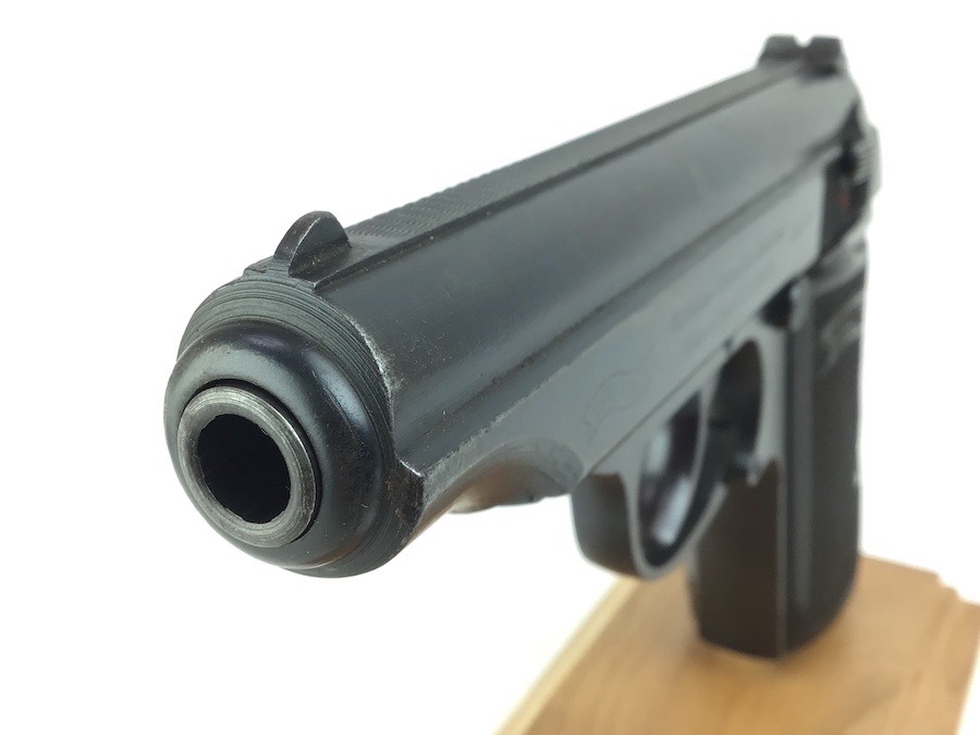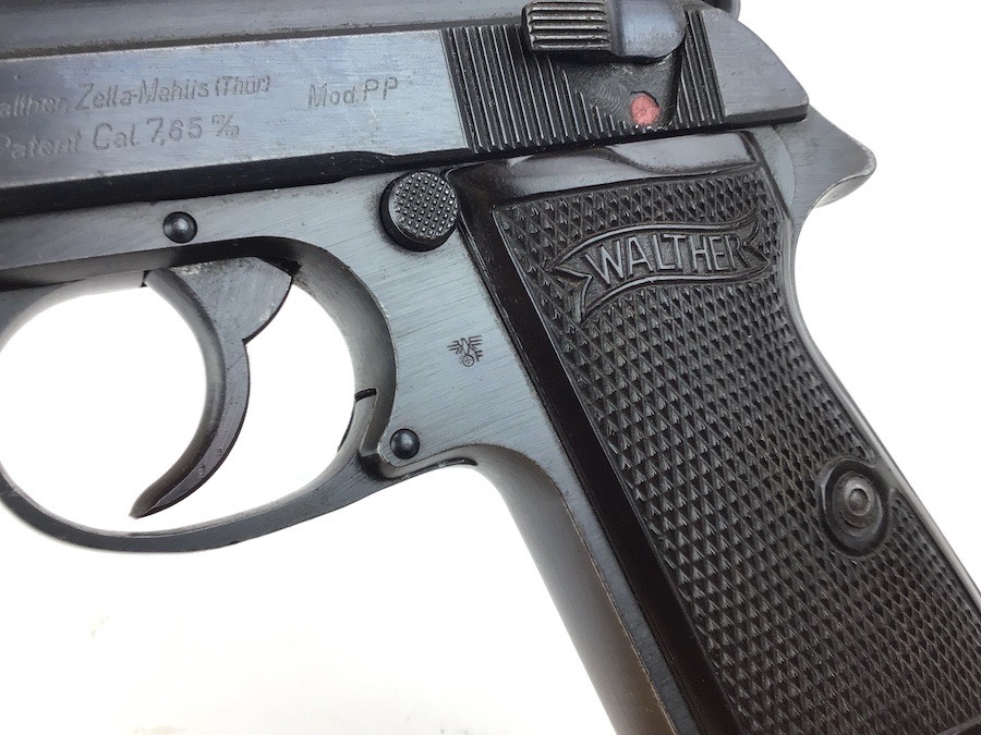 3/14/24 -This is a late / end of war production WW2 nazi Police eagle/F Walther PP. The frame has a police eagle/F stamp, which is a fairly rare police code stamp. The pistol has a generally rough, late war finish signifying the rush of German production. Includes a period-correct, finger extension magazine. The magazine has worn bluing and a few pits, but functions fine. The pistol has retained roughly 96% of its original finish. There is minor wear on the high edges and around the muzzle. Excellent grips. Great bore.