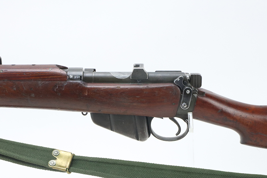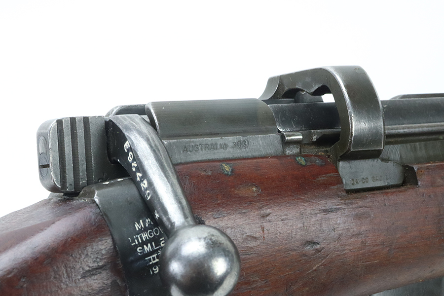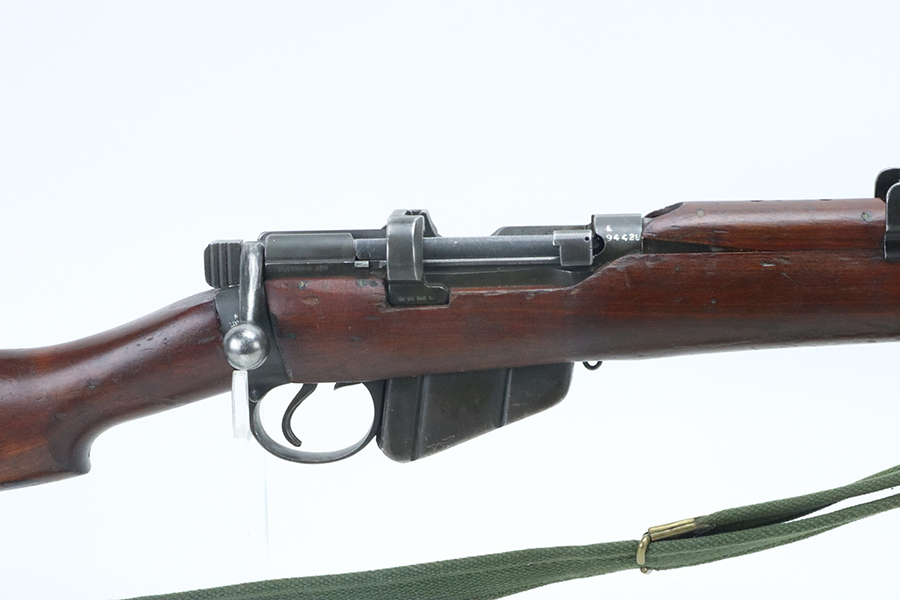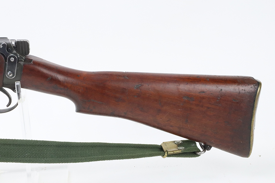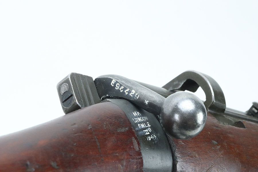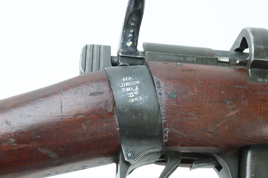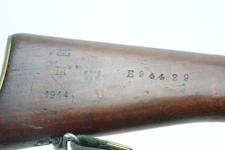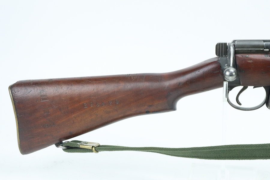 5/21/24 – This is a very nice example of an Australian Lithgow SMLE Mk III* Rifle, manufactured in 1944. The gun is all matching and has the proper military proofs. Import mark on the right side of the receiver. The stock is also matching and has crisp markings on the right side of the butt stock (dated 1944). The metal parts have retained about 90% of their original finish with general high edge wear. Excellent wood furniture. Stone-mint bore.