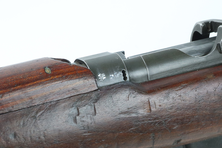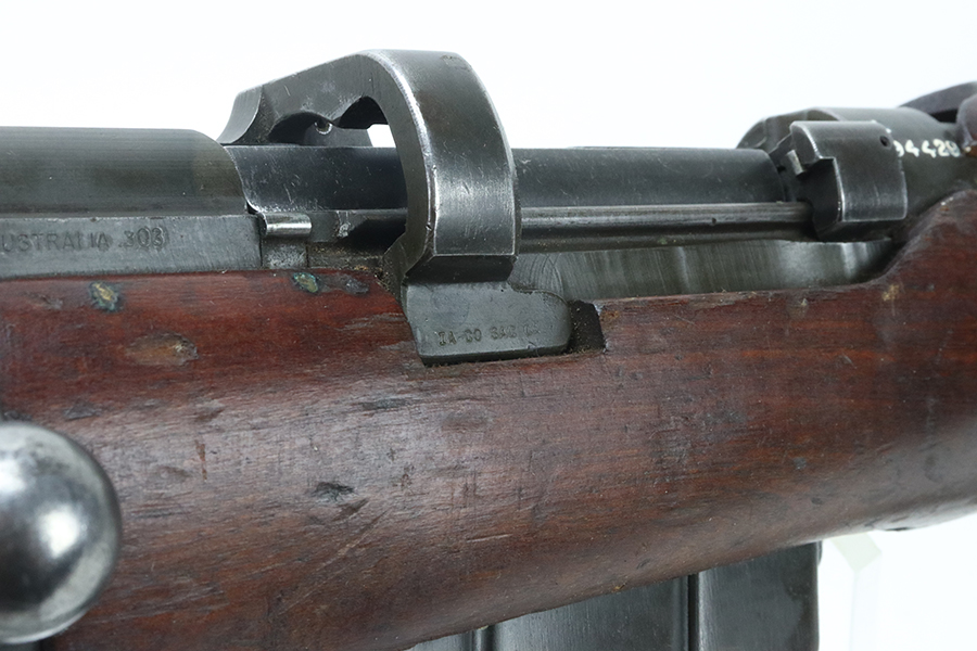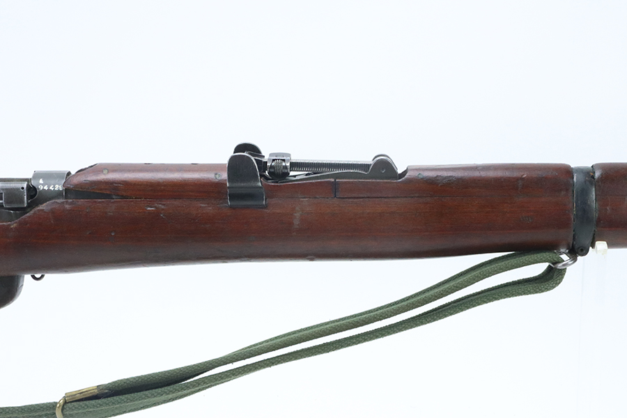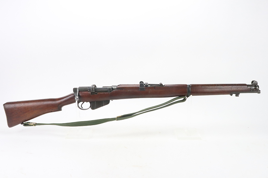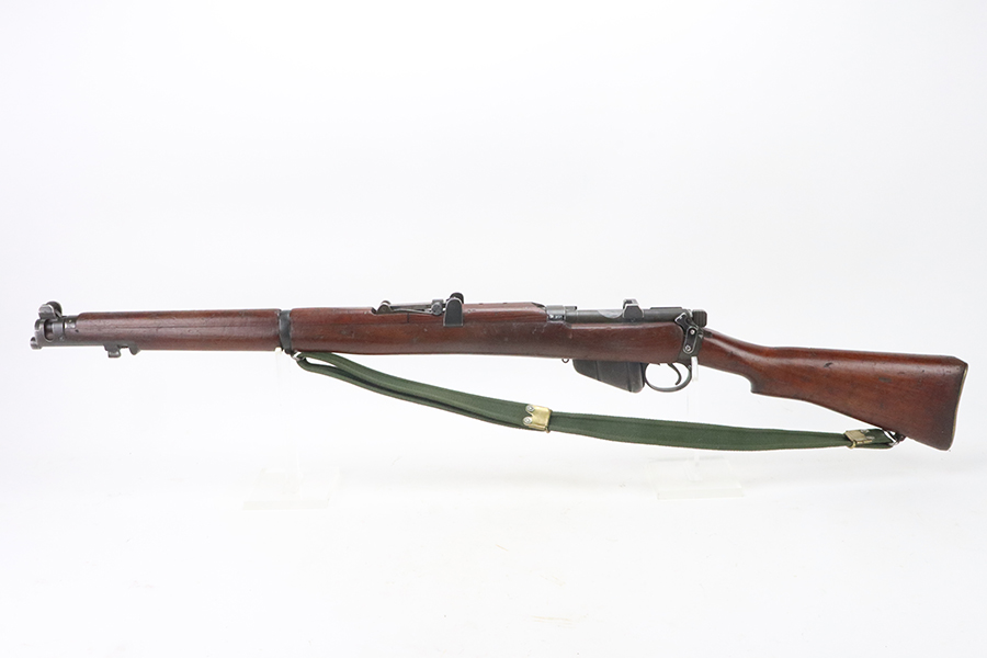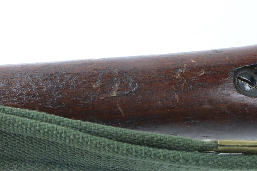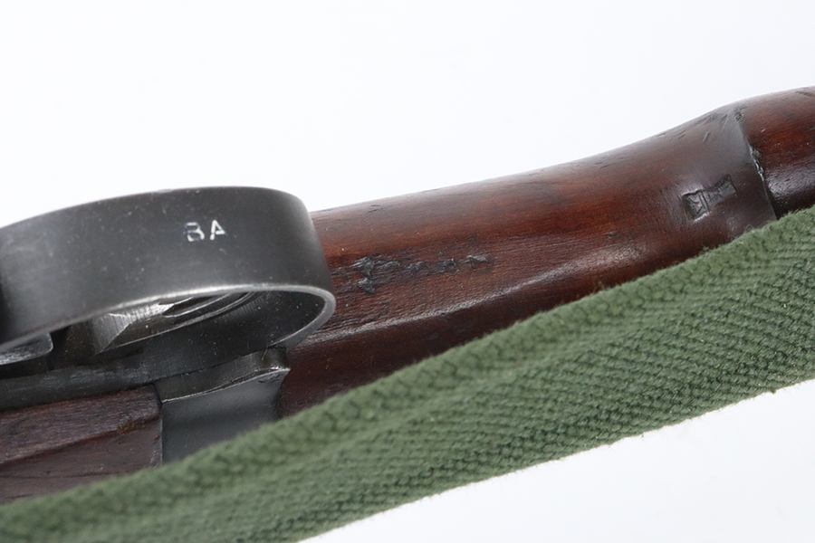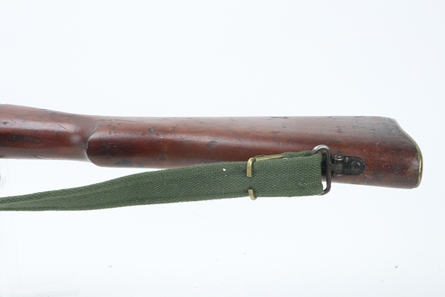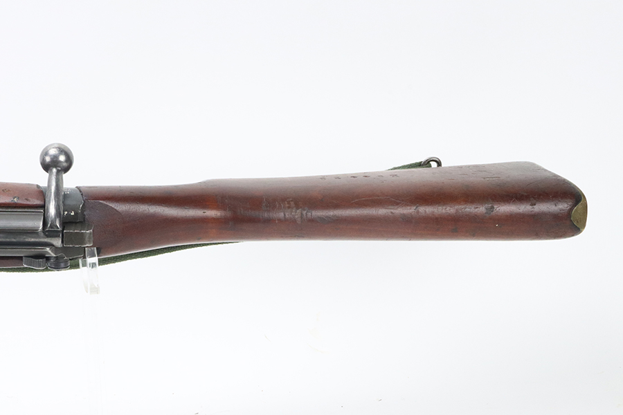 5/21/24 – This is a very nice example of an Australian Lithgow SMLE Mk III* Rifle, manufactured in 1944. The gun is all matching and has the proper military proofs. Import mark on the right side of the receiver. The stock is also matching and has crisp markings on the right side of the butt stock (dated 1944). The metal parts have retained about 90% of their original finish with general high edge wear. Excellent wood furniture. Stone-mint bore.