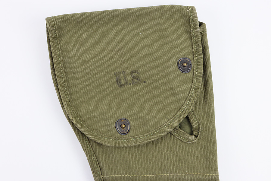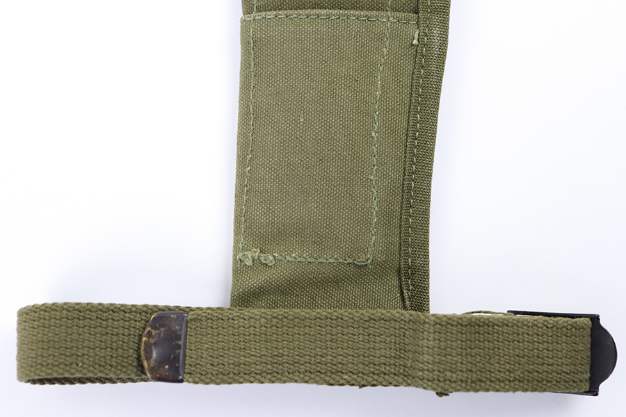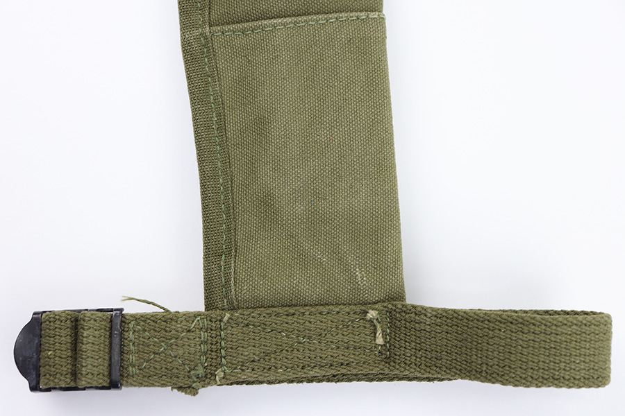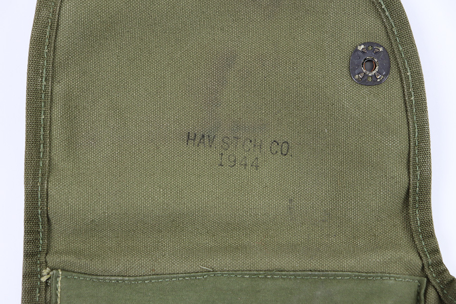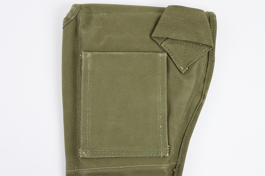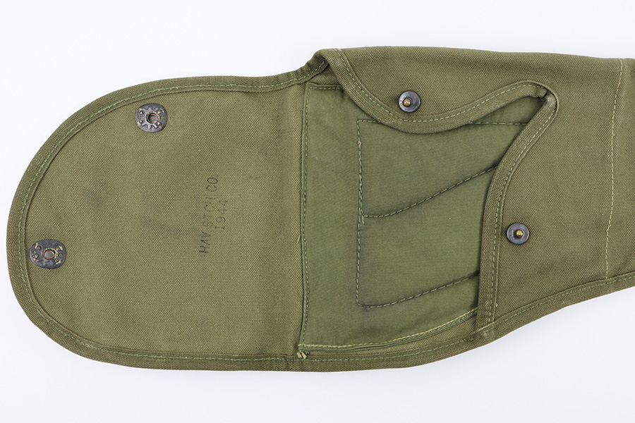 10/23/23 – This is a WW2 original canvas carry case for a M1 carbine or M1A1 Paratrooper carbine rifle. This example has clean canvas and all original stitching throughout with no notable issues. The exterior is “US” ink stamped, and the interior is ink stamped with a maker and date. Fully functional closure clasps.