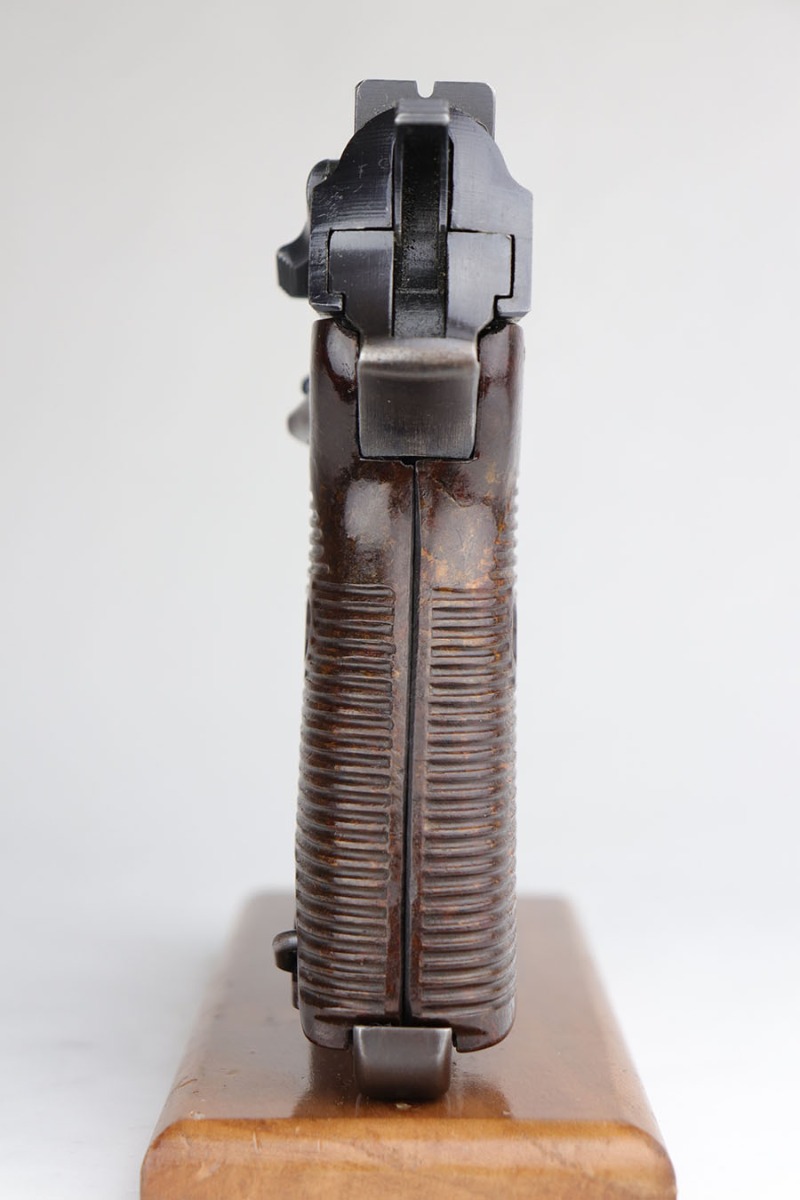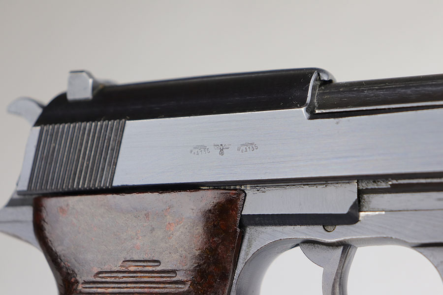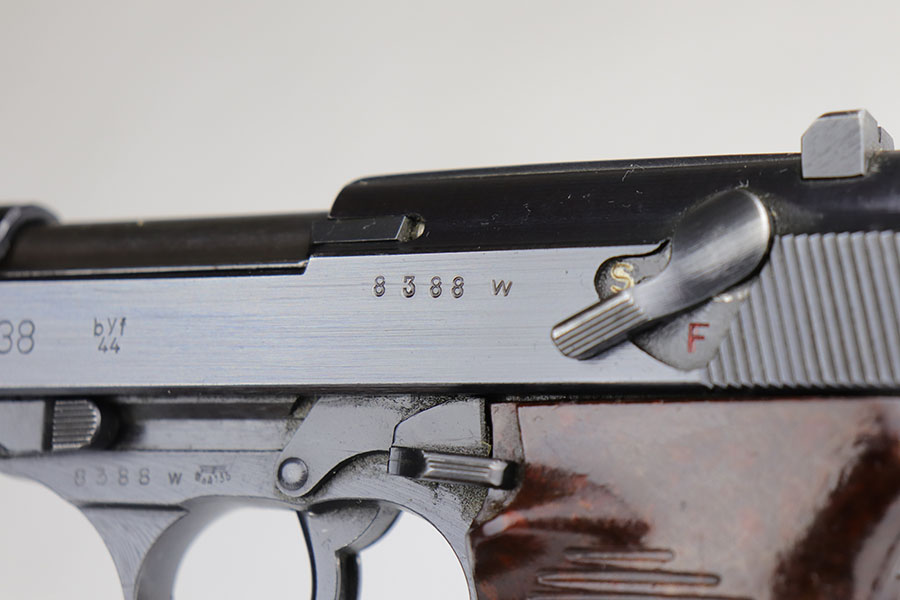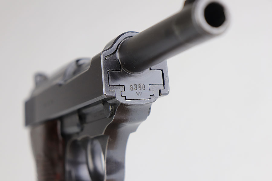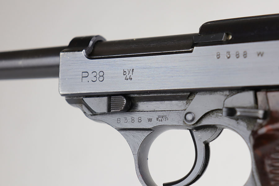 5/29/20 – This is an all matching and original Mauser P.38 from July of 1944. It has a near-mint profile view, with nearly all of the finish loss on the front strap. Bore is mint and looks unfired. Grips are similarly minty. Smooth mechanics, including the de-cocker. Mauser magazine.
