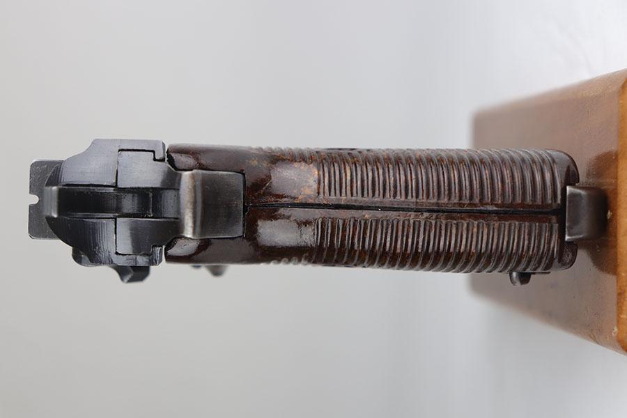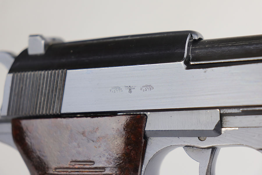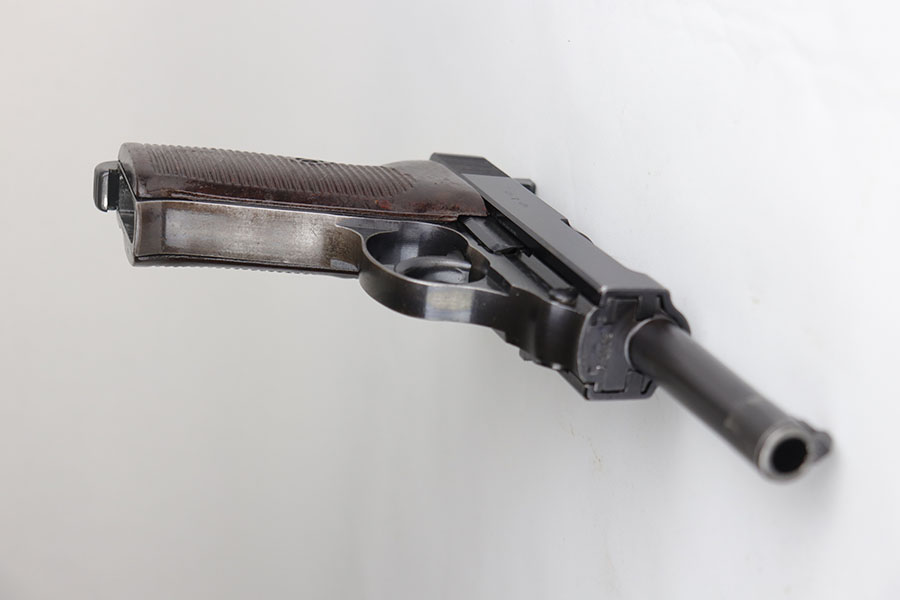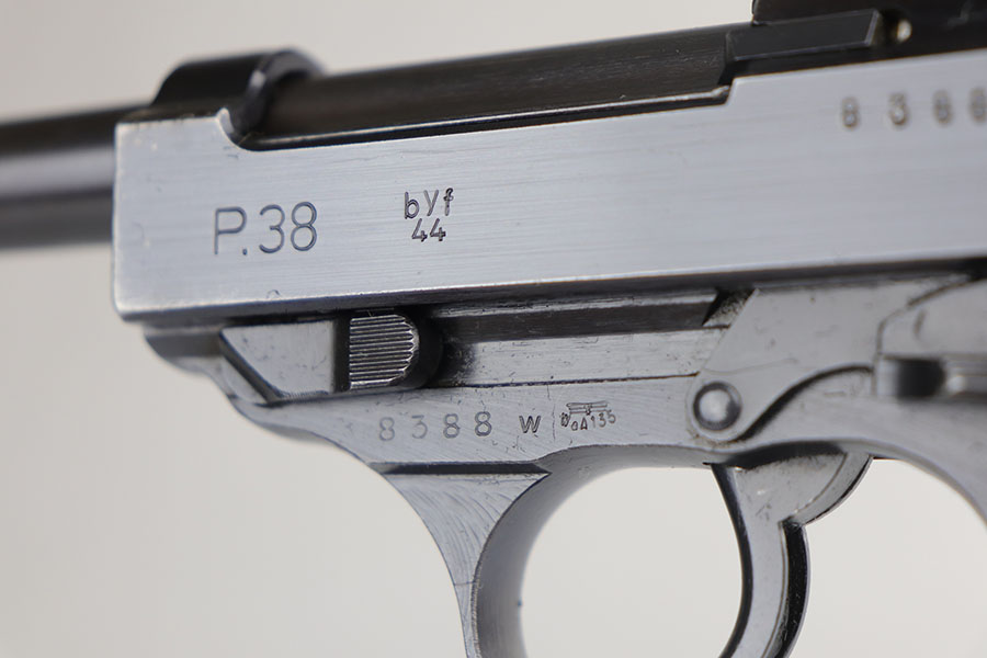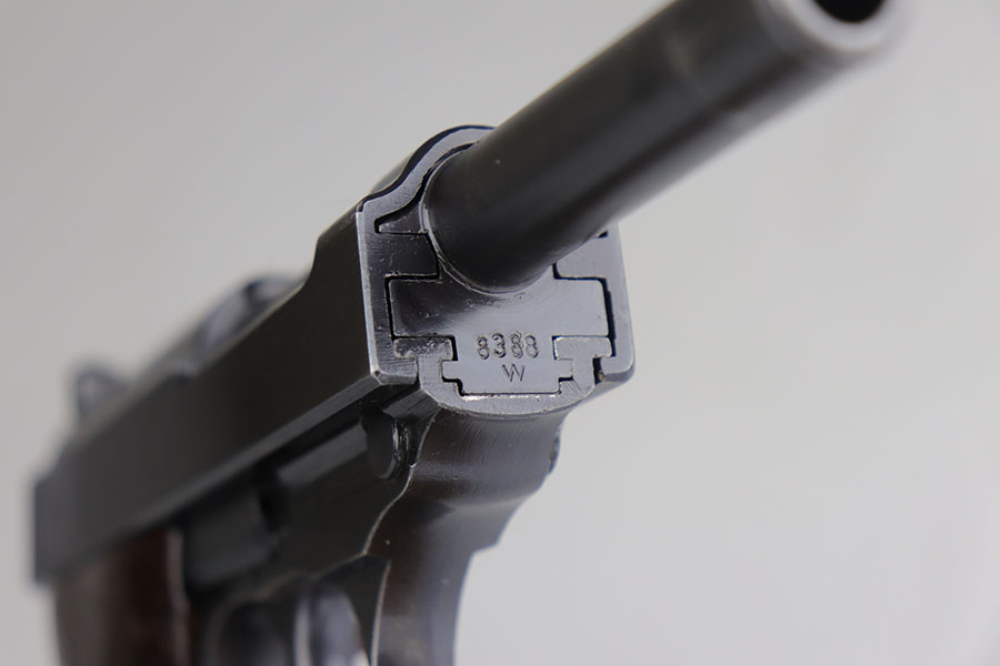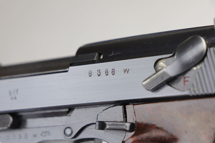 7/23/20 – This is an all matching and original Mauser P.38 from July of 1944. It has a near-mint profile view, with nearly all of the finish loss on the front strap. Bore is mint and looks unfired. Grips are similarly minty. Smooth mechanics, including the de-cocker. Mauser magazine.