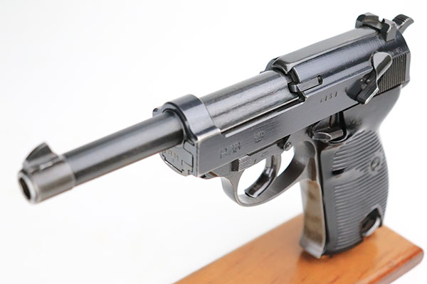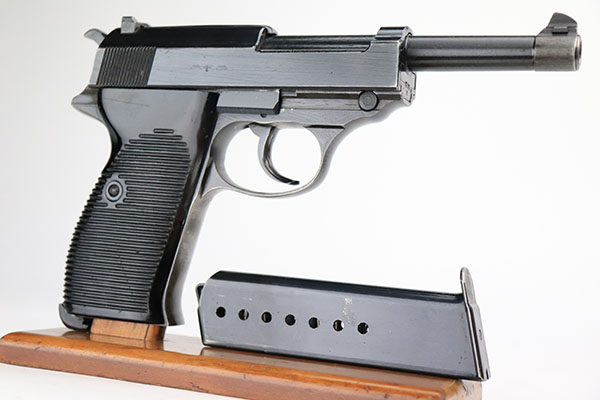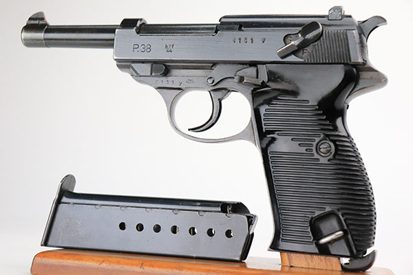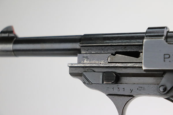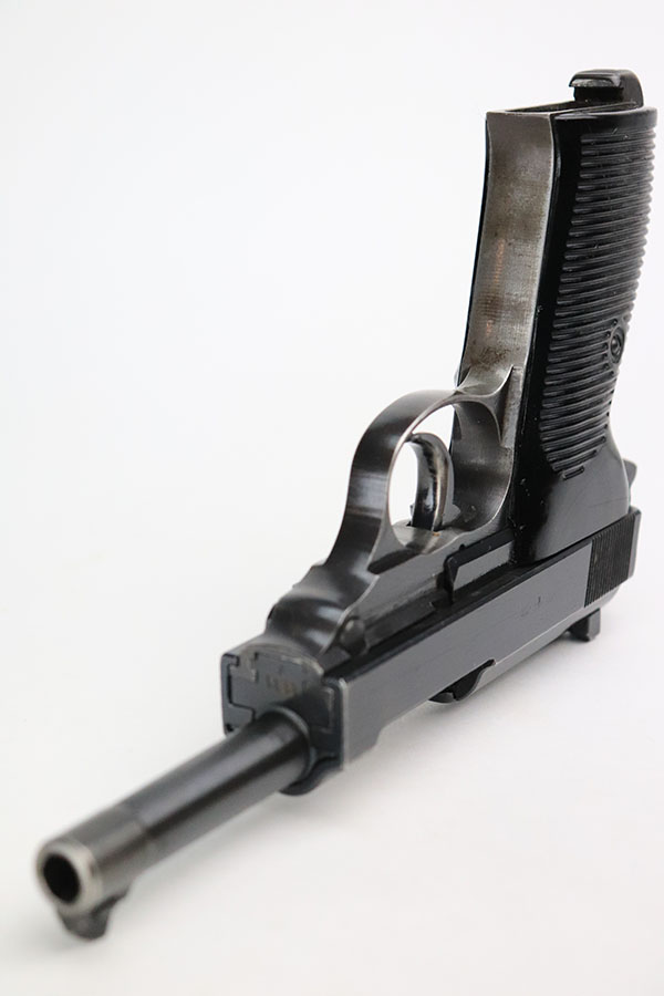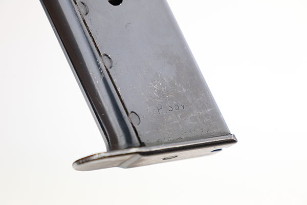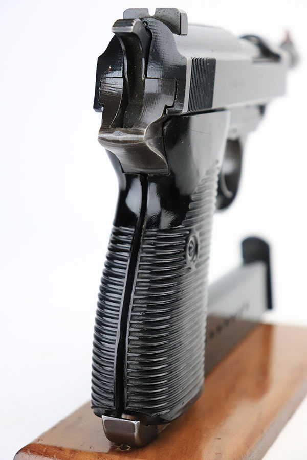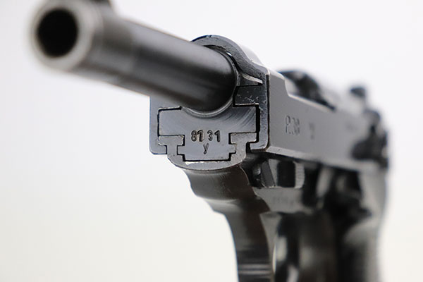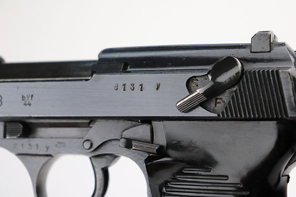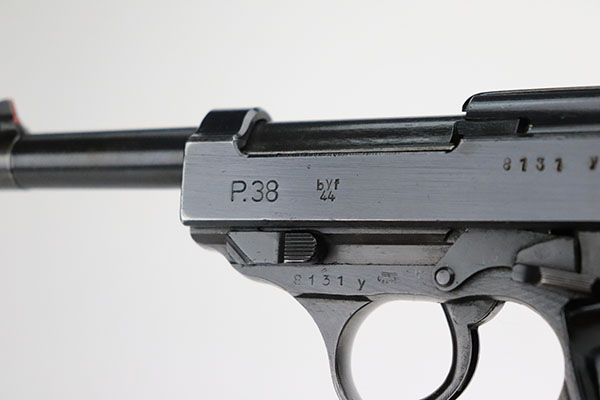 10/4/22 – This is very nice example of a BYF 44 Mauser P.38 issued to the Nazi military in 1944. It is all matching and has the proper “Waffen 135” military proofs throughout. It has retained about 90% of its original finish. The majority of the finish loss is on the front strap, so the profile views are excellent. Very minor wear around the muzzle and front edges of the slide. Comes with nice plastic grips – some light scuffing on the left side and some light scratches on the right. Also comes with a period-correct “Eagle 135” marked magazine. The bore has strong rifling, but there is freckling throughout. De-cocker is functional.