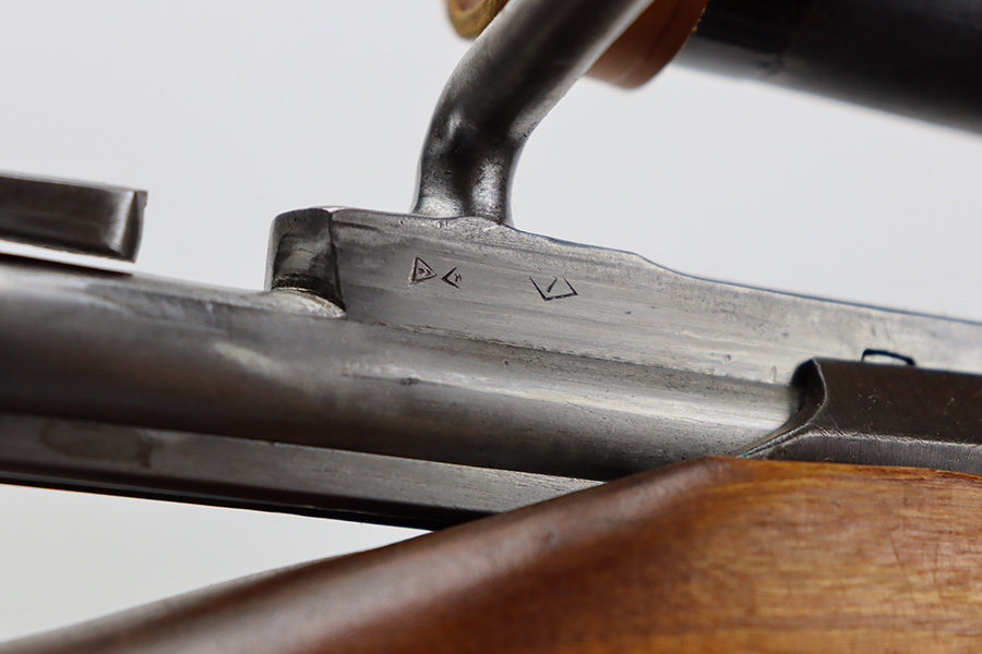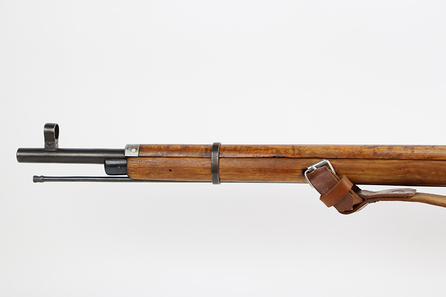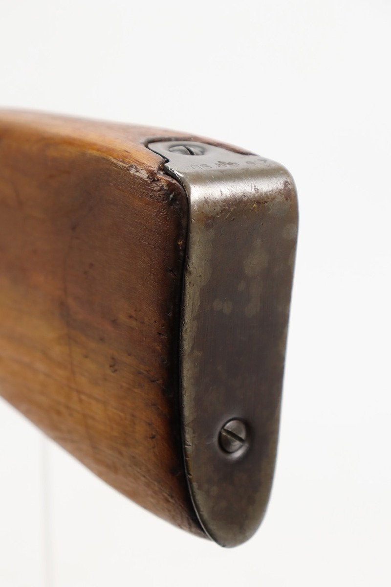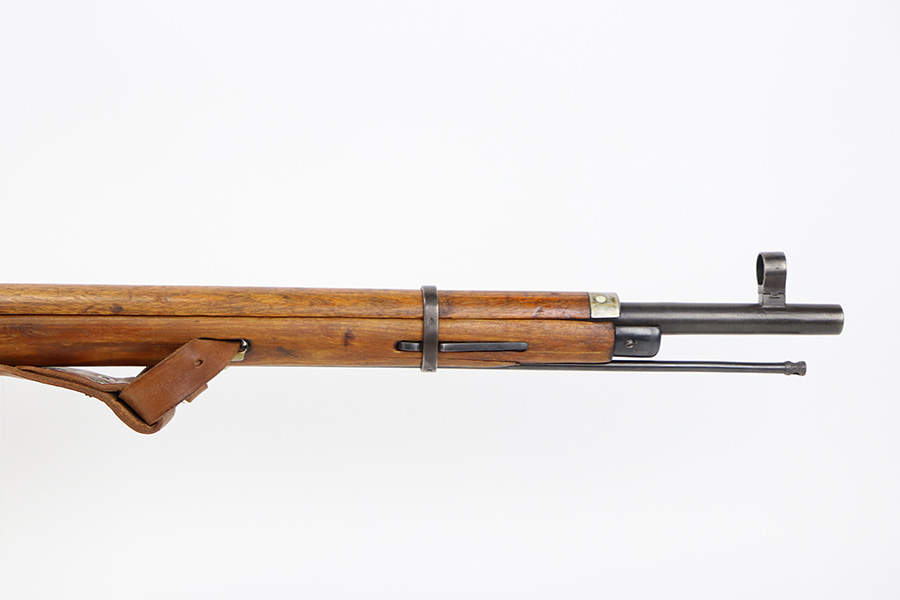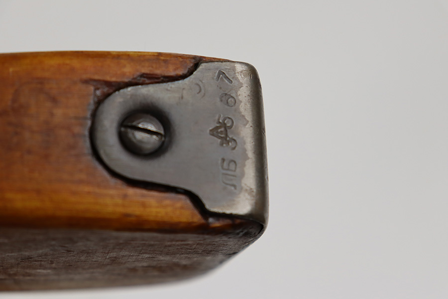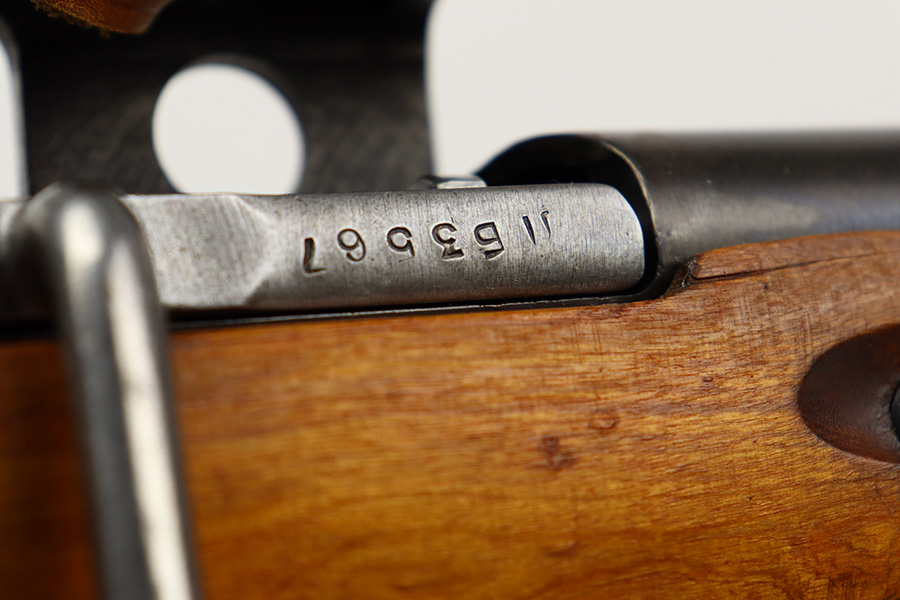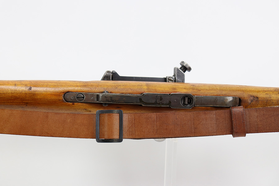 9/8/23 – This is a very nice example of a Mosin-Nagant Model 91/30 in a sniper configuration. All matching with no import marks. Equipped with a reproduction sniper scope (excellent optics) and scope rail. Comes with a nice leather sling and leather eye caps. The metal parts have retained about 90% of their finish with minor thinning on the receiver and some spotty discoloration on the magazine. Nice wood furniture, but it has been lightly sanded. The bore has pretty good rifling, but there is frosting in the grooves.