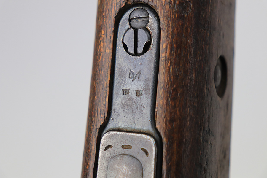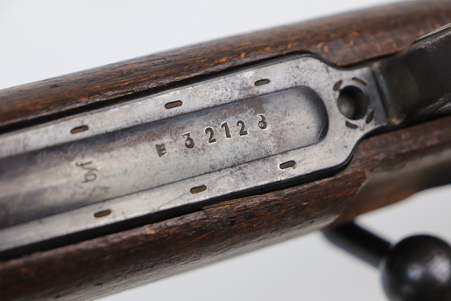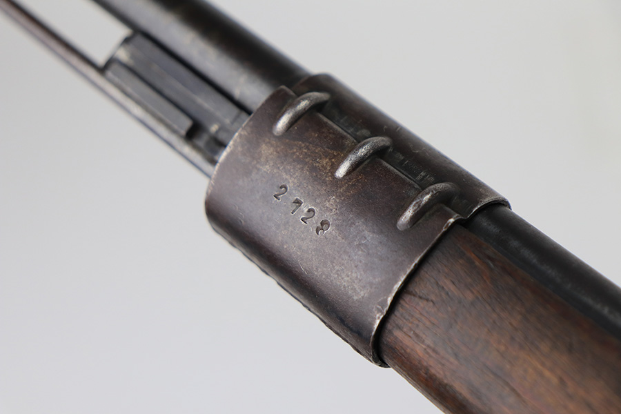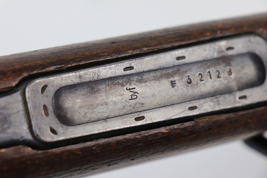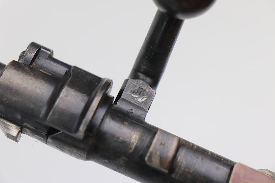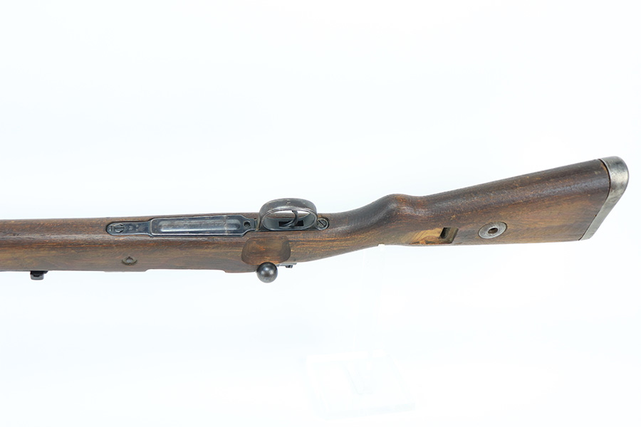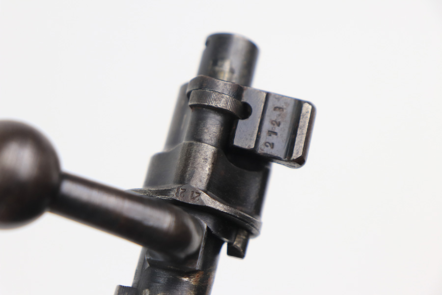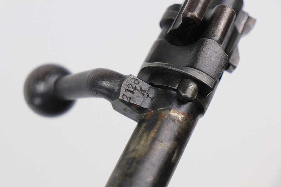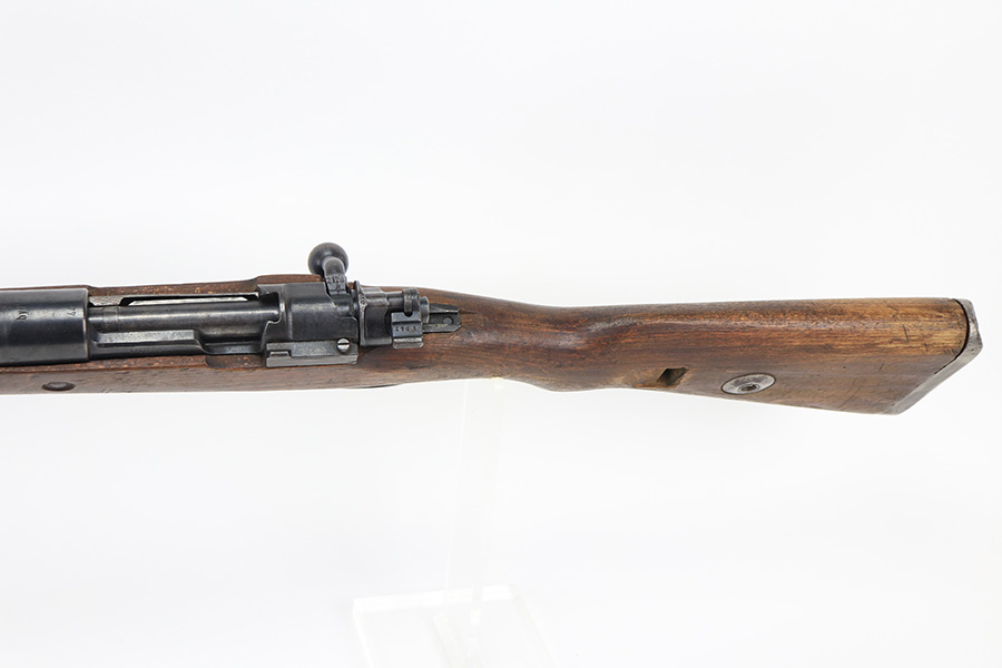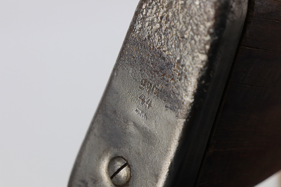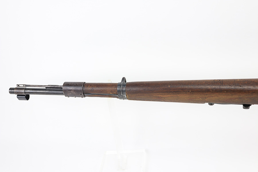 1/14/22 – This is a matching and original Mauser K98 from 1944. Numbers matching throughout, including bands, bolt assembly, trigger assembly, receiver. Finish shows patina in several areas, and most of the actual bluing loss on the barrel, bands and trigger group. The stock shows its age but has no major issues, and features a sharp waffenamt on the right side. Buttplate is ‘gqm’ marked with ’44 date, and features notable corrosion/rough pitting. Comes with cleaning rod and sight hood. Very good bore with minor frost throughout.