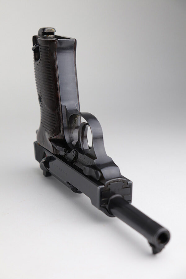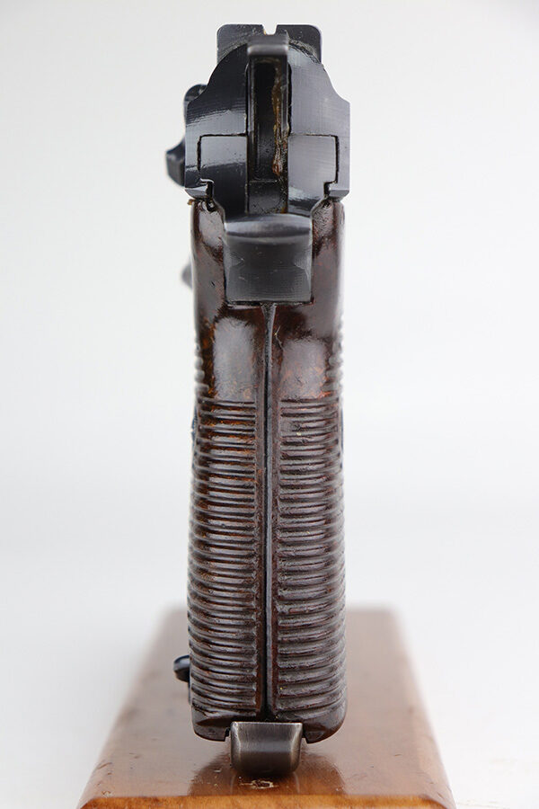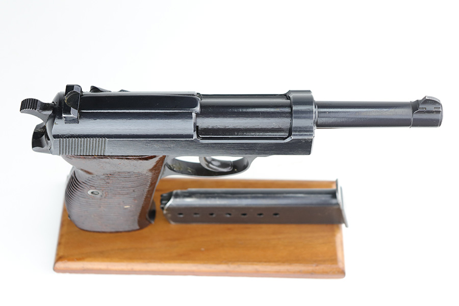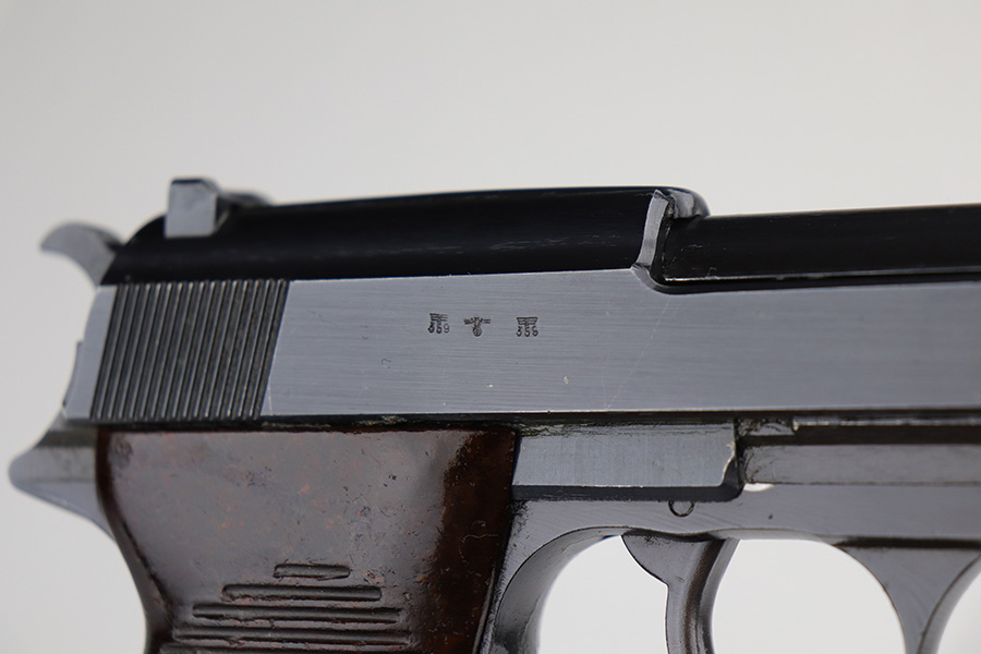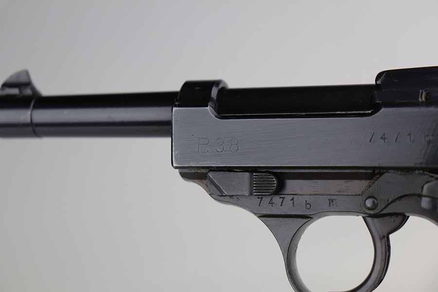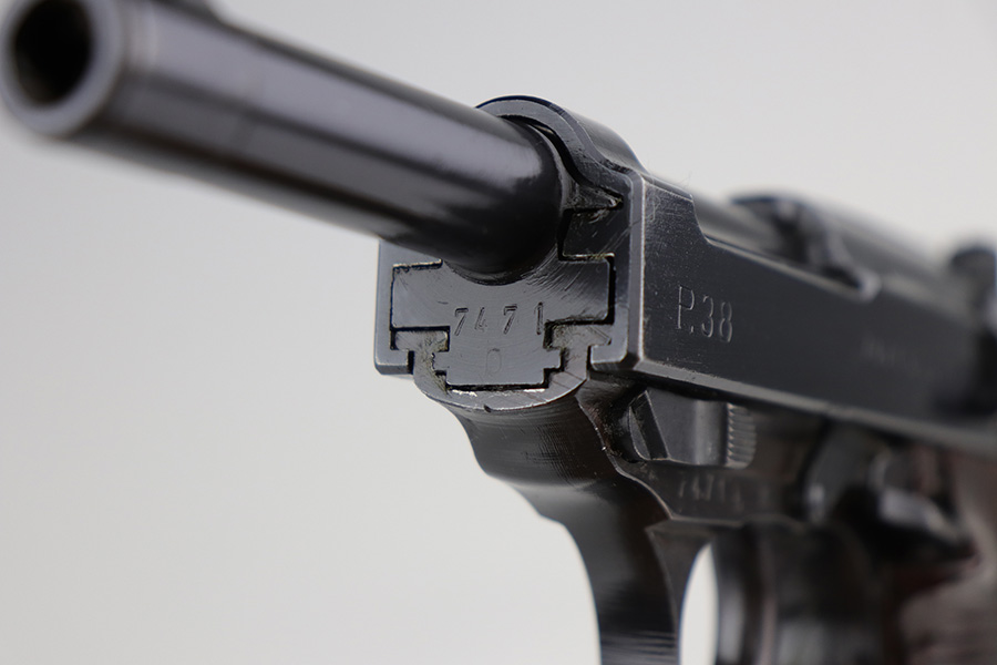 9/8/21 – This is a gorgeous, mint example of a Walther P.38 issued to the Nazi military in 1944. It is all matching and has the proper “Eagle 359” military acceptance proofs. It has retained about 99% of its bluing with just hints of wear on some of the high edges. One very light surface scratch on the right side of the slide. Comes with excellent grips and a rare late-war “U”-marked magazine. De-cocker is functional. Bore is mint.