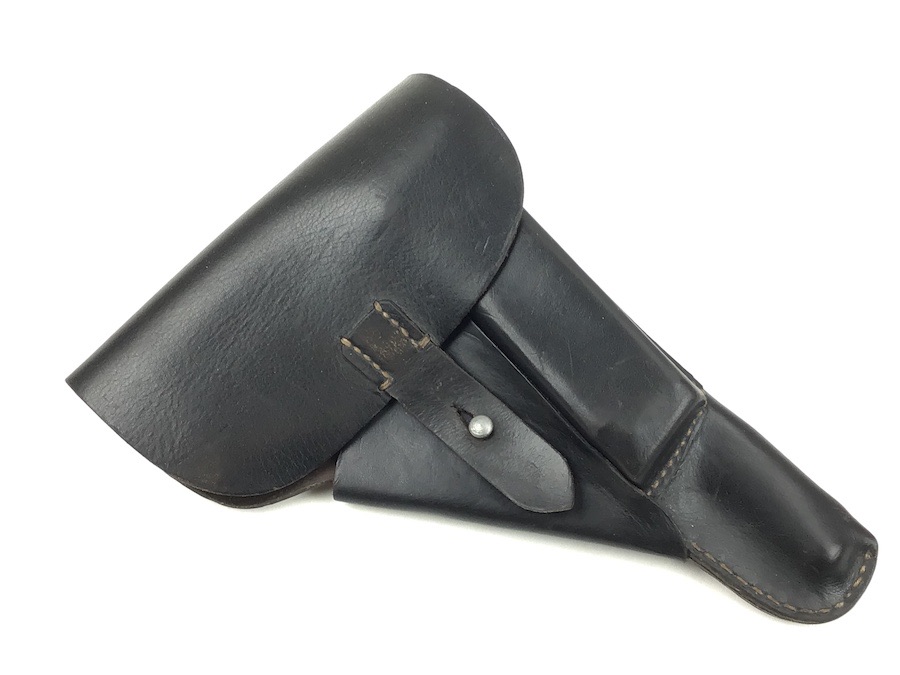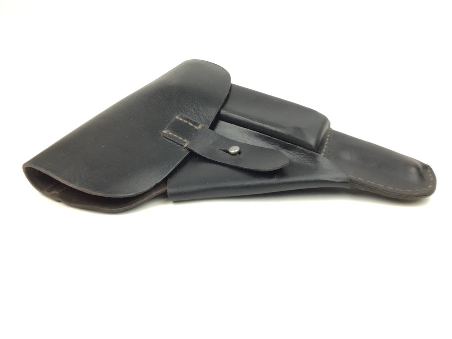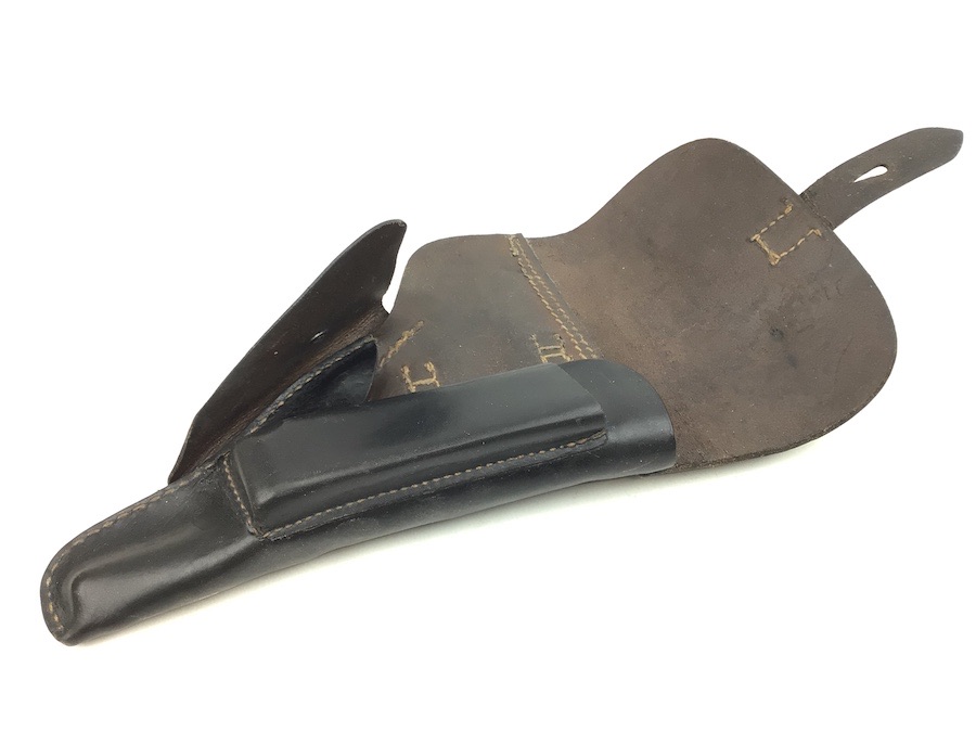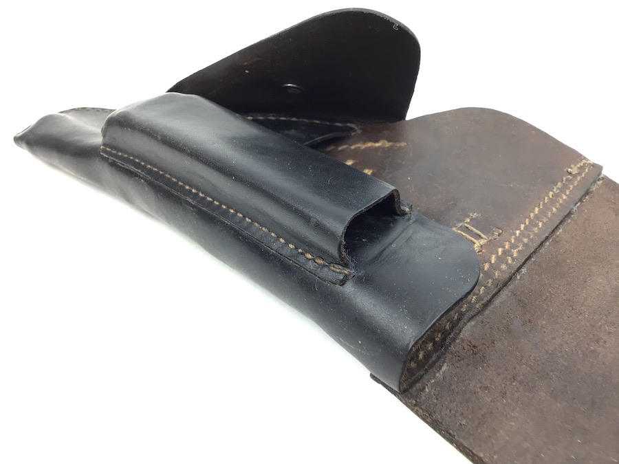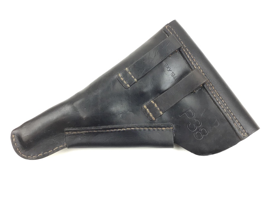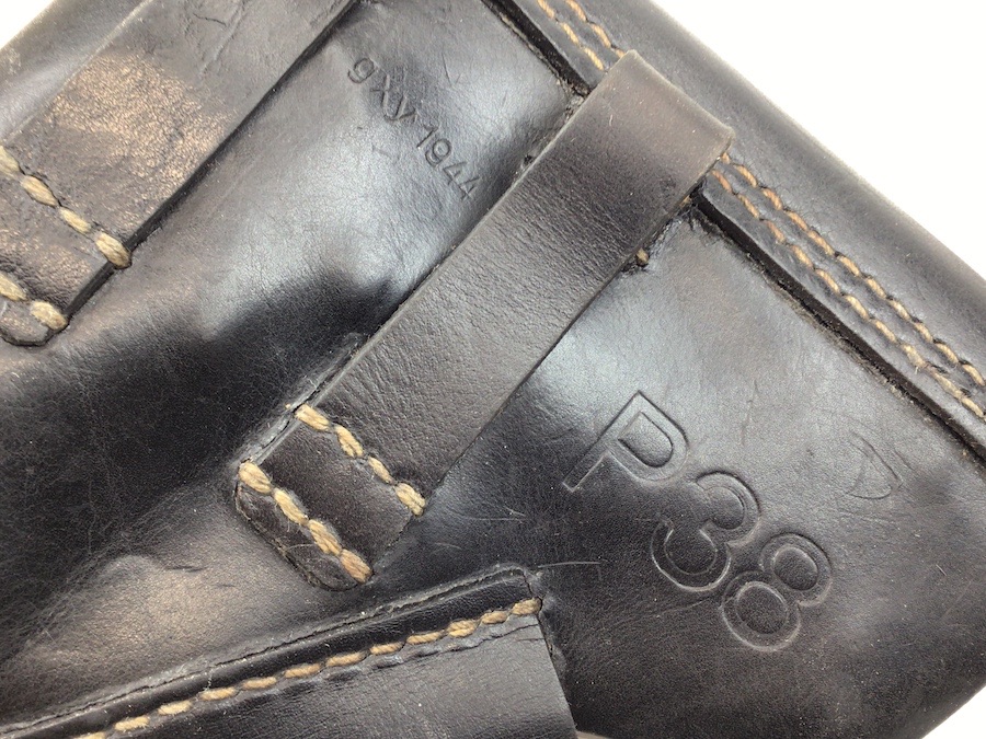 2/28/22 – This is a very good example of a late WW2 P.38 soft shell holster. The stitching is completely intact as well with no issues. The back of the holster has a distinct, “gxy” maker stamp and “1944” date stamp. This holster would go well with a P.38 from 1943-45.