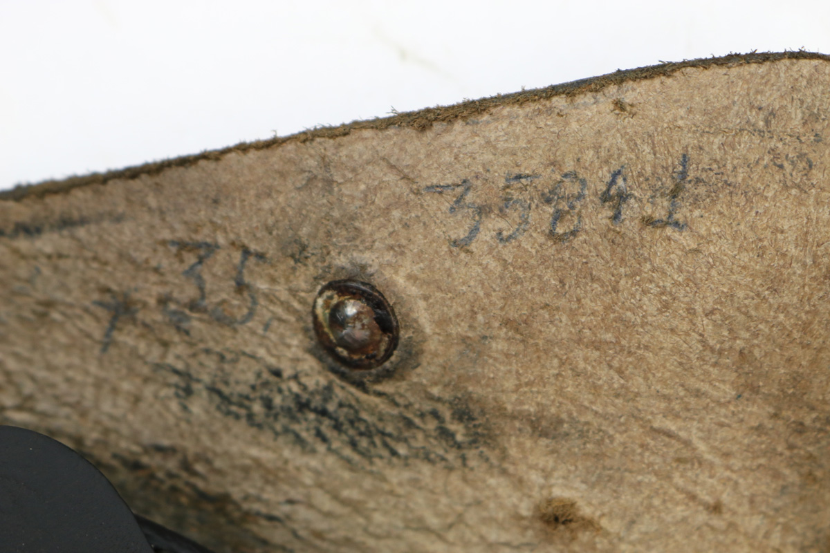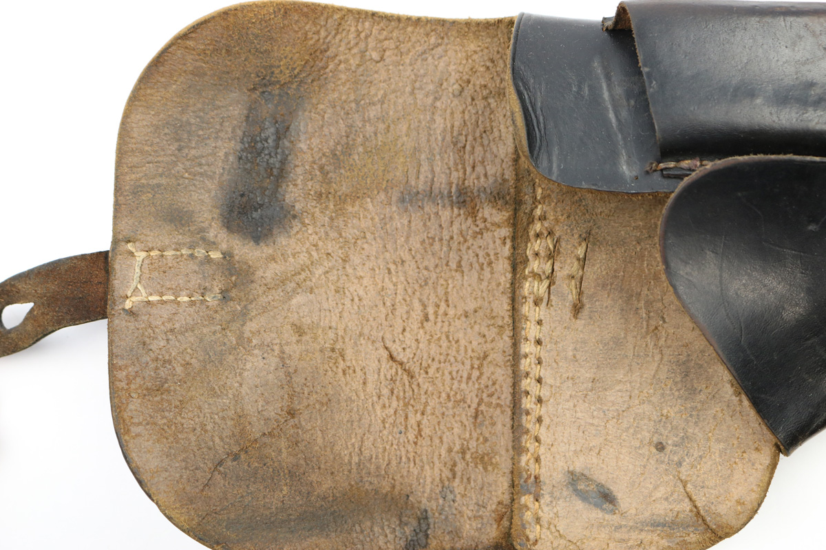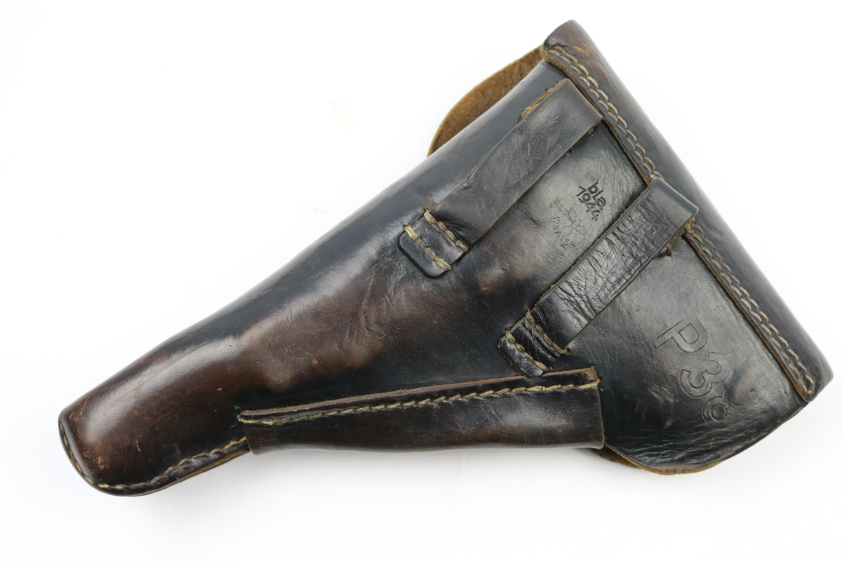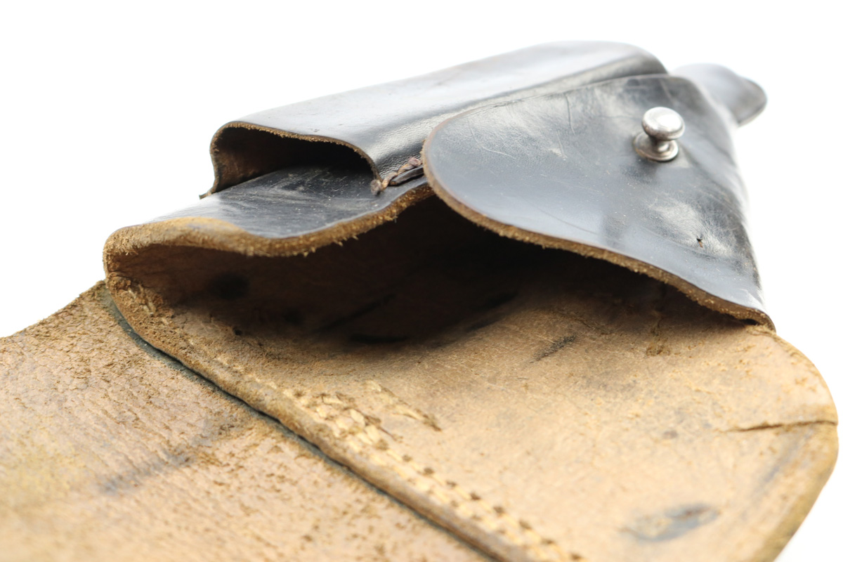 8/11/18 – This is a late ww2 production 1944 dated P.38 holster. The holster is softshell style with a 1944 date, bla maker code, P.38 stamp, and waffen proof ont he back leather. The leather is soft and pliable with normal wear and light fading of the black dye. The stitching is all original and in tact. Guaranteed original.