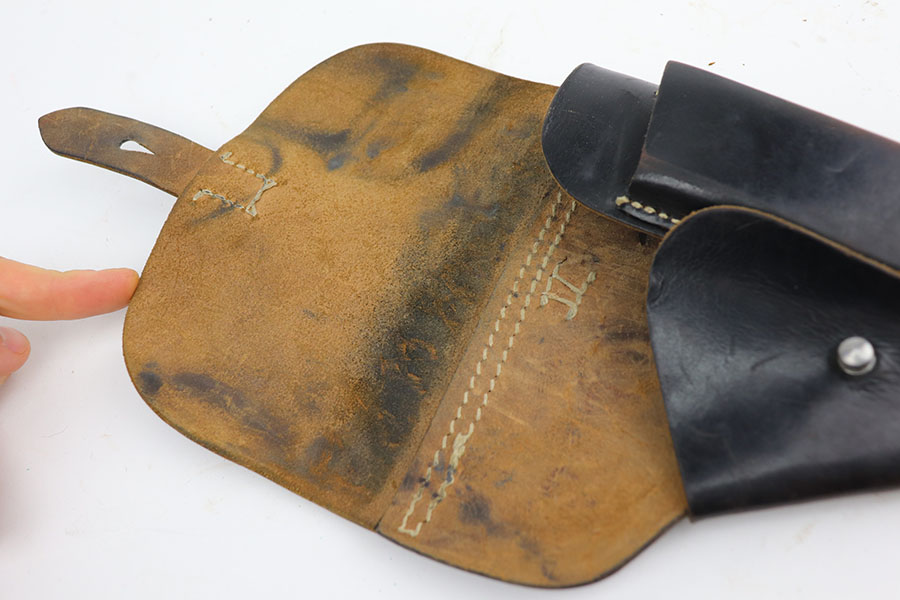 3/16/21 – This is an original 1944 dated P.38 holster. The back of the holster is maker stamped, dated, and P.38 stamped. The leather has normal aging and wear but is in great overall condition with no major issues. Fairly clean interior leather. All stitching in tact.
