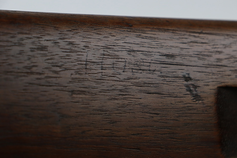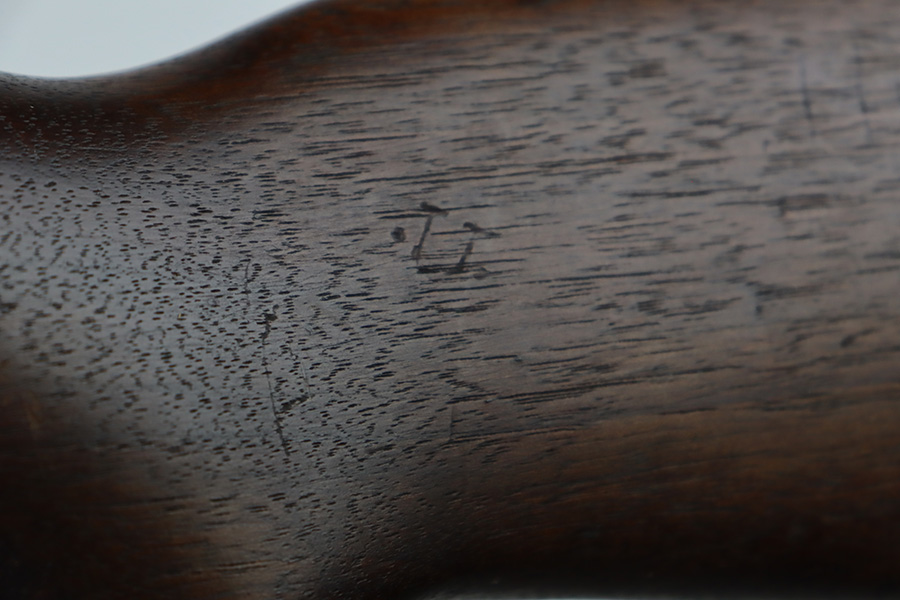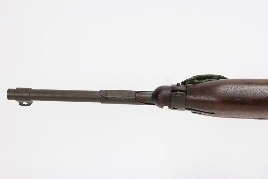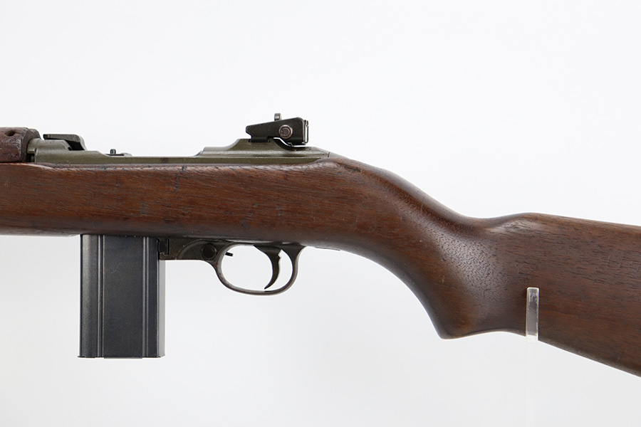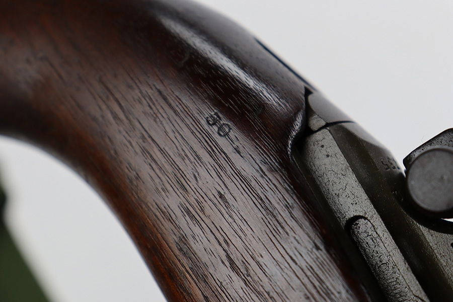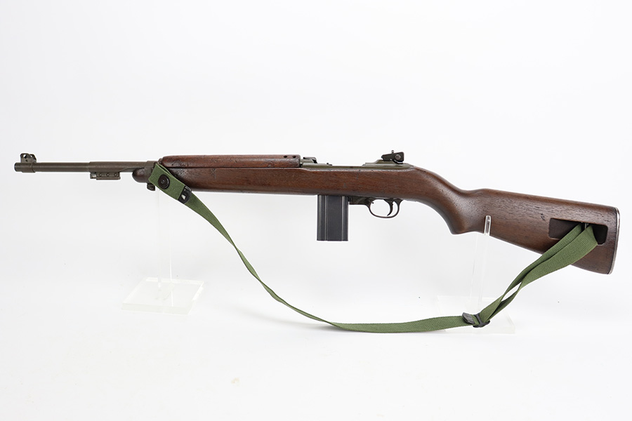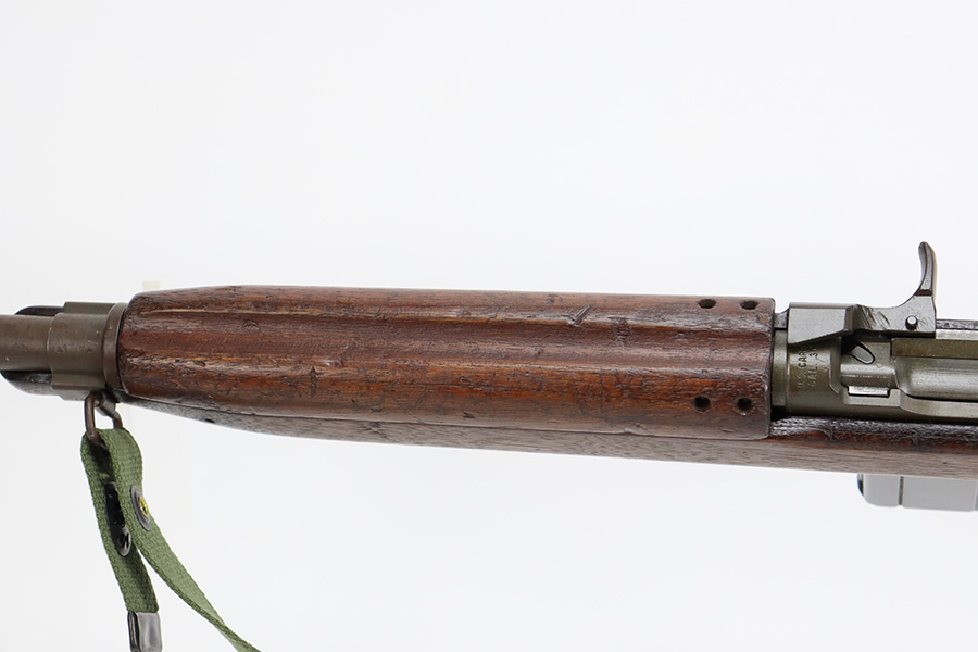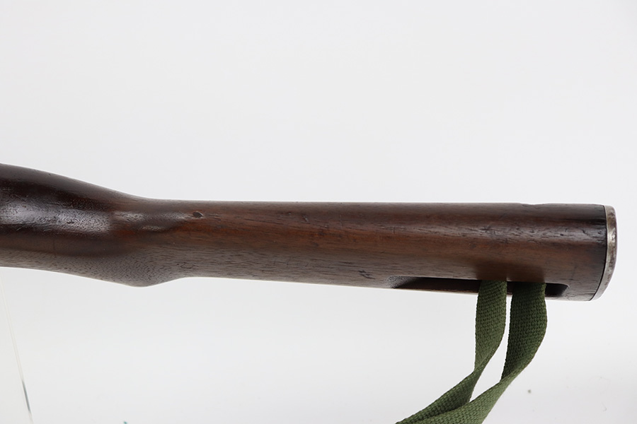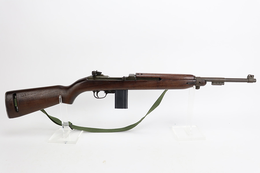 8/25/23 – This is an excellent example of a Quality Hardware M1 Carbine. The serial number on the receiver dates it to 1944. Underwood barrel dated February of 1944. An adjustable rear sight and bayonet lug were added later, likely for use during the Korean War. The stock is Underwood marked and has a rack number on the right side of the butt stock. Standard Products marked recoil plate. The metal parts have retained nearly all of their parkerized finish with just some light spotty oxidation on the bayo lug. Overall, the wood furniture is nice, but there are some small gouges on the upper handguard. Mint bore. Comes with an original oiler, reproduction canvas sling, and an un-marked magazine.