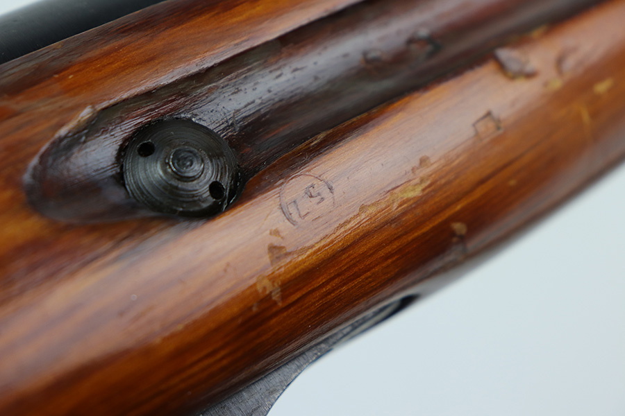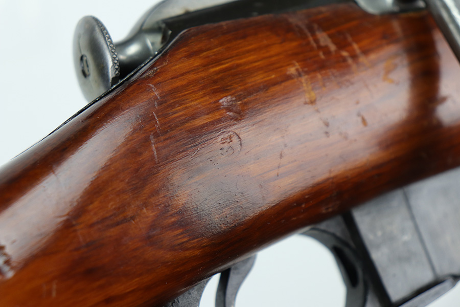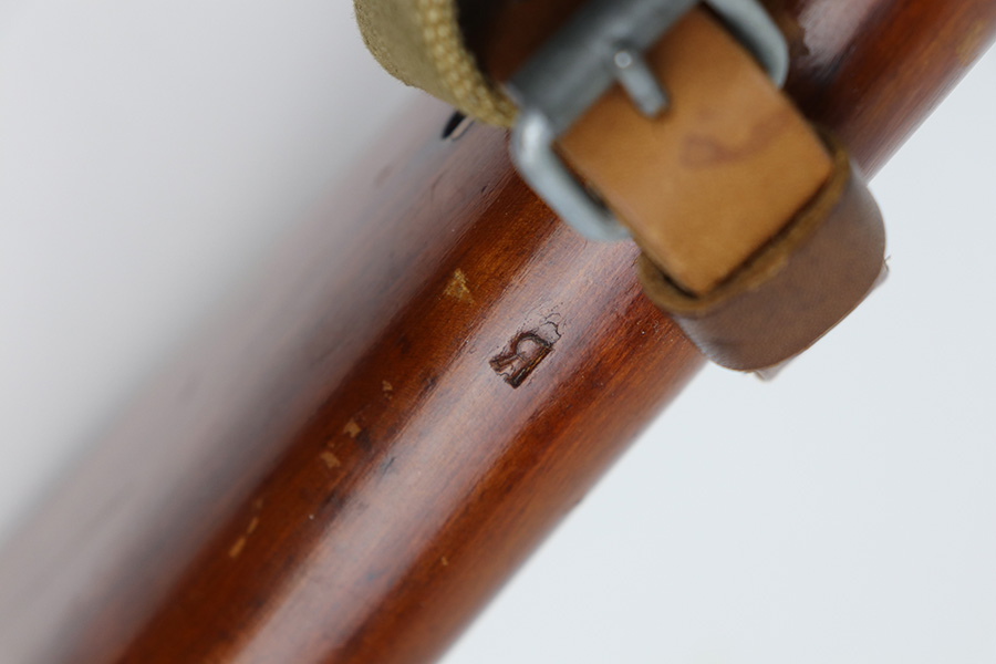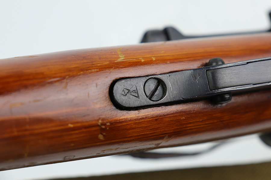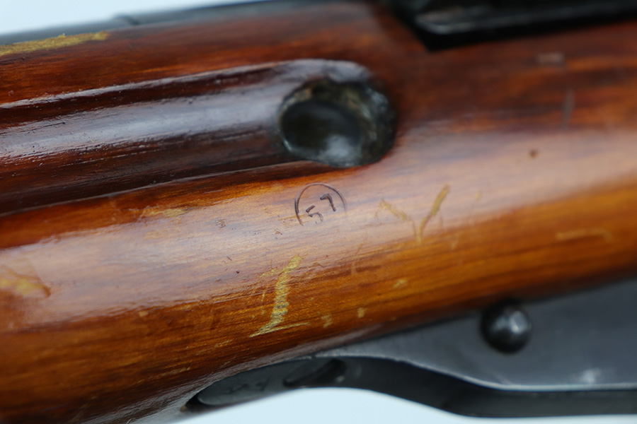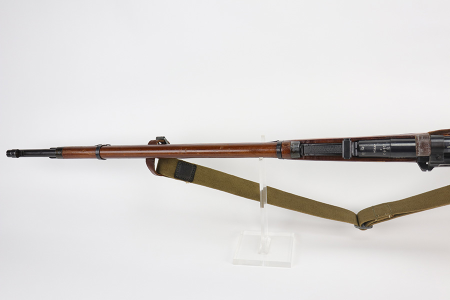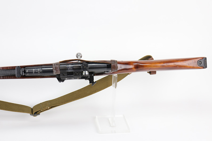 9/10/21 – This is an excellent example of a Mosin-Nagant Model 1891/30 sniper rifle issued to the Soviet military in 1944. The gun is mostly matching, but there is a different number on the receiver and the number on the magazine has been re-numbered. It’s possible the gun has been arsenal-reworked. Import mark on the barrel. The serial number is scratched into the scope mount. The scope is serialized and has the Soviet seal on it. Excellent, clear optics. The gun comes with a leather scope cover and a canvas sling. It has returned most of its bluing with a few very light handling marks here and there. The stock is nice, but there are minor dings throughout. The bore is mint.