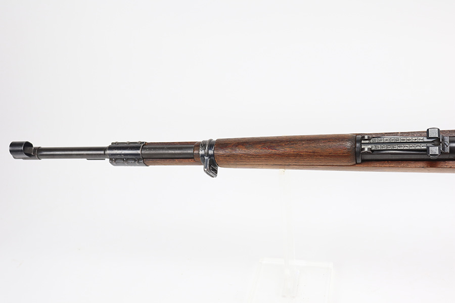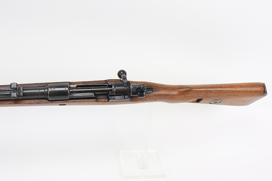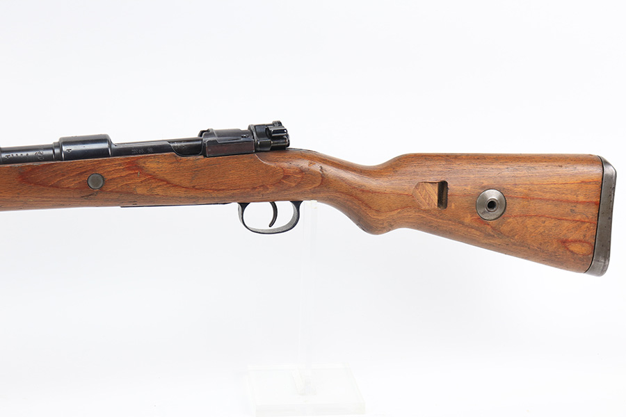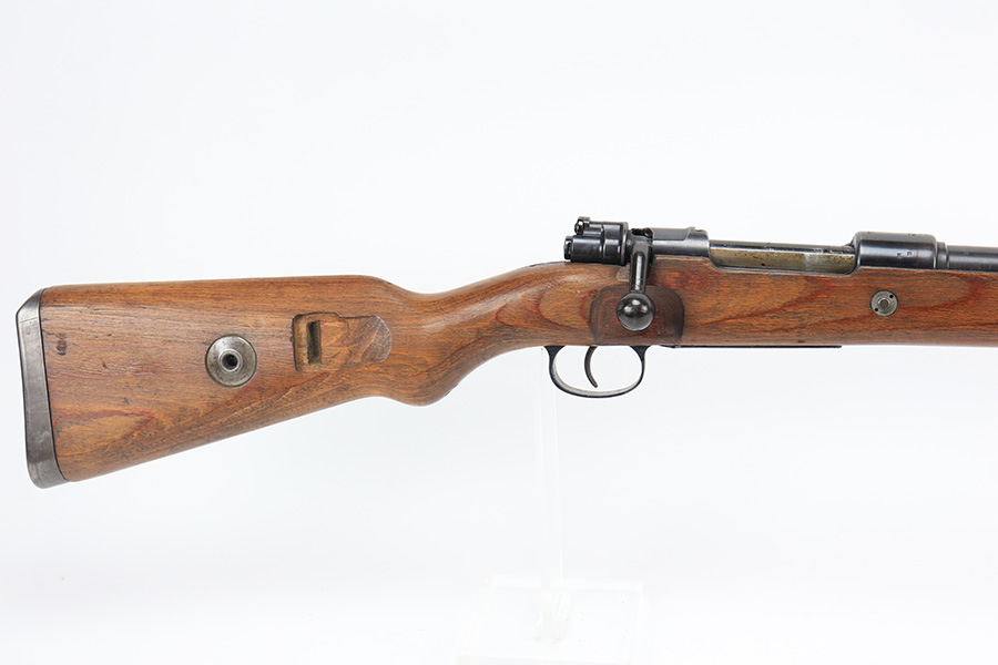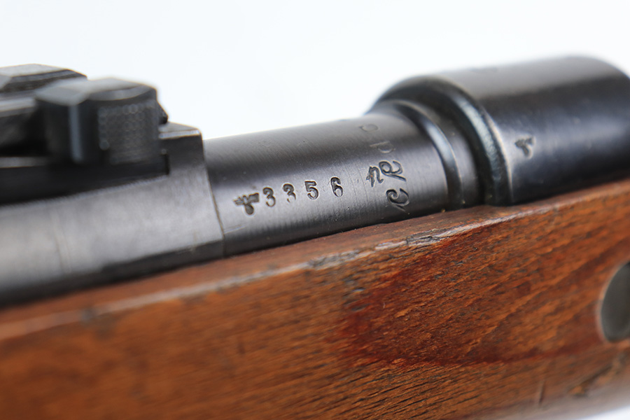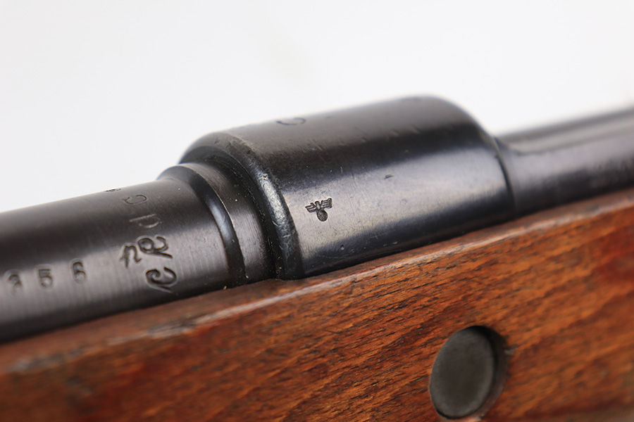 3/30/22 – This is a late WW2 production K98 made by Sauer. The rifle is all original finish and all matching except for the bolt assembly. The wood stock is not numbered, but it is waffen proof stamped on the underside of the butt-end, as well as “H” Heer army stamped on the right cheek of the buttstock. The stock has a few normal signs of aging, mild dings, and mild sanding throughout but no major issues. The hand guard has a faint “356” stamped on the interior (matching). The metal has no rust or pitting but is rough in a few areas and has normal finish loss and edge wear. The bore is excellent, clean, and shiny with minimal wear and strong rifling – 9/10 overall.
