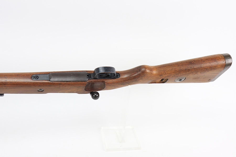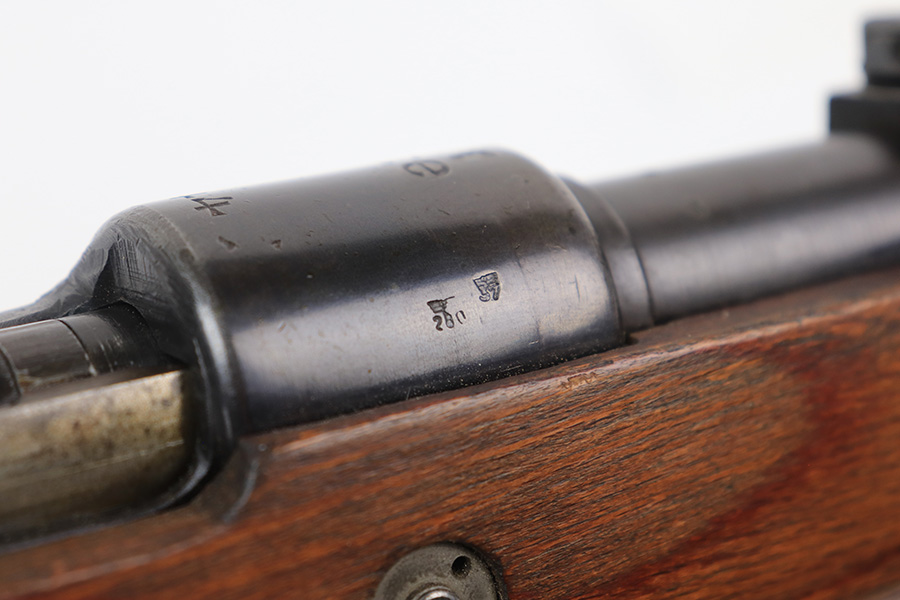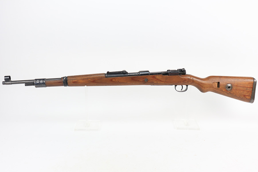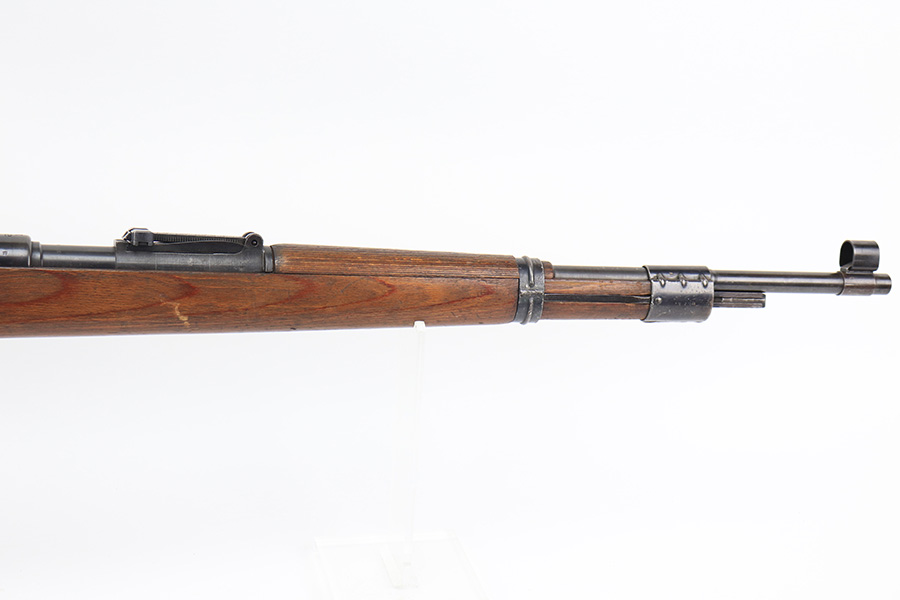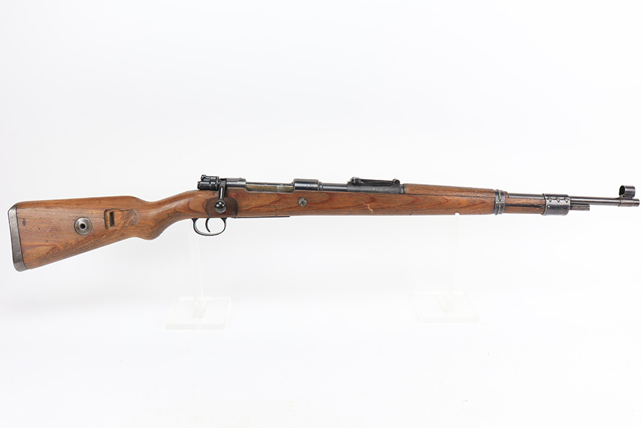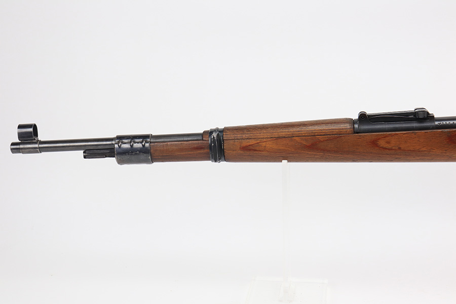 3/30/22 – This is a late WW2 production K98 made by Sauer. The rifle is all original finish and all matching except for the bolt assembly. The wood stock is not numbered, but it is waffen proof stamped on the underside of the butt-end, as well as “H” Heer army stamped on the right cheek of the buttstock. The stock has a few normal signs of aging, mild dings, and mild sanding throughout but no major issues. The hand guard has a faint “356” stamped on the interior (matching). The metal has no rust or pitting but is rough in a few areas and has normal finish loss and edge wear. The bore is excellent, clean, and shiny with minimal wear and strong rifling – 9/10 overall.
