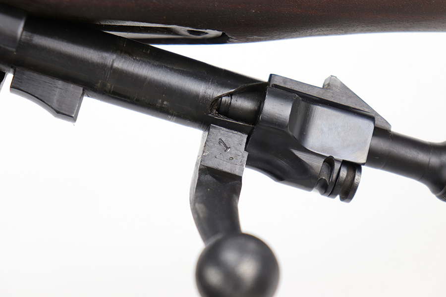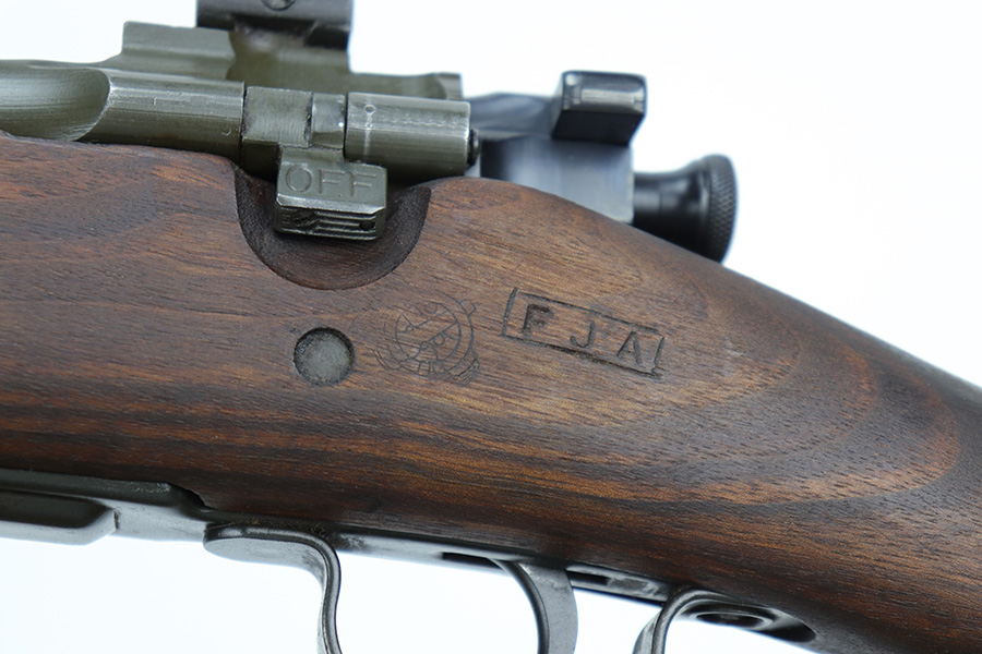 6/15/23 – This is a minty example of an arsenal-refurbished Smith-Corona Model 03-A3 bolt action rifle. The receiver dates to 1944. The barrel is also Smith-Corona marked and dated October of 1943. The stock has a cross-canon military cartouche and FJA inspection stamp. The metal parts have retained nearly all of their really nice arsenal-refurbished finish with just some very light scuffs here and there. Minty wood furniture. Comes with a canvas sling and front sight hood. Stone-mint bore.