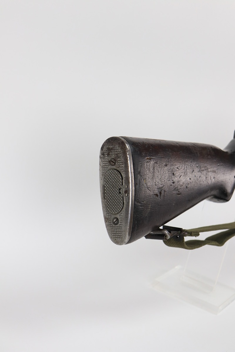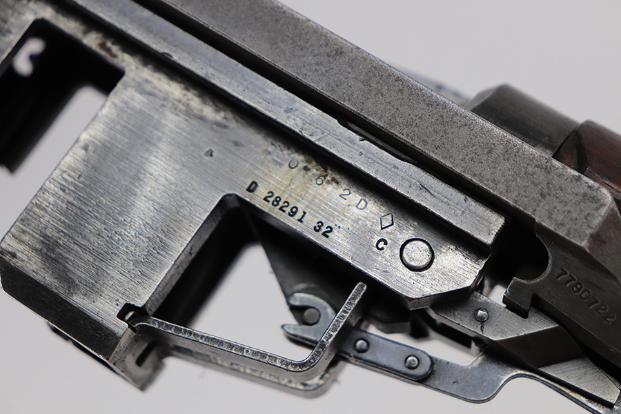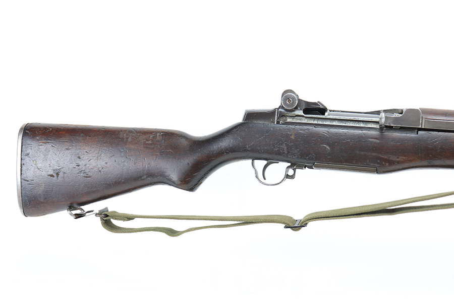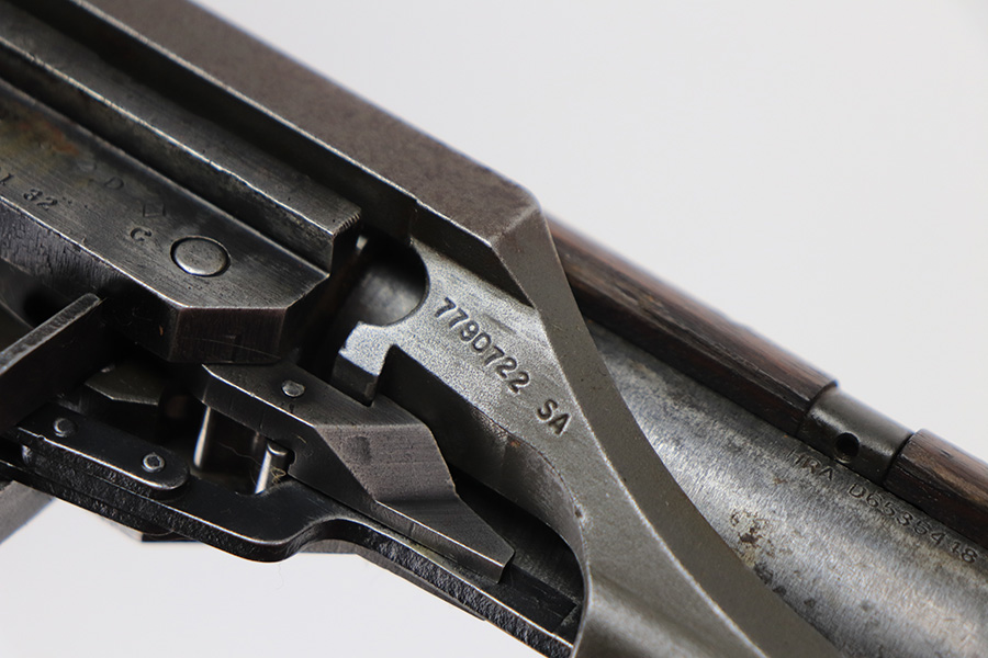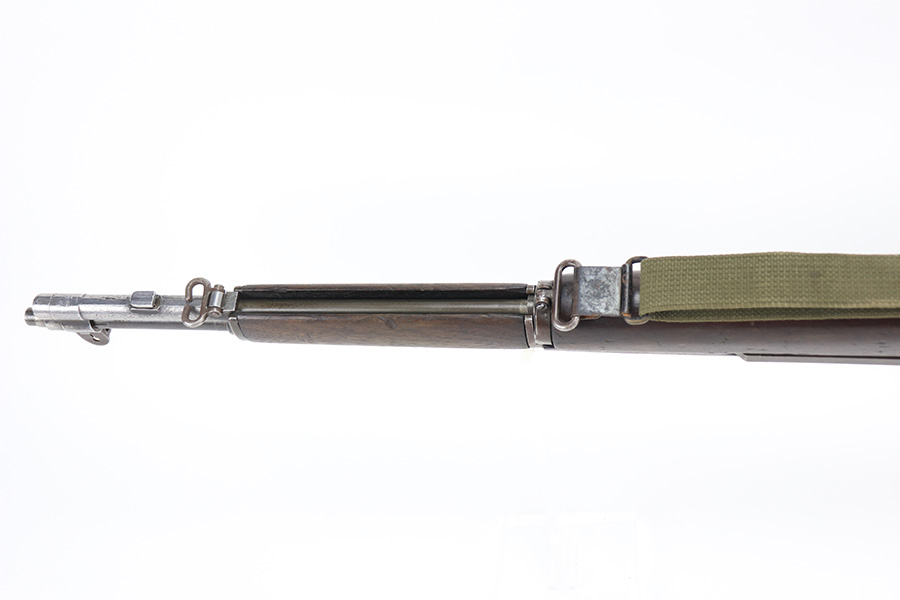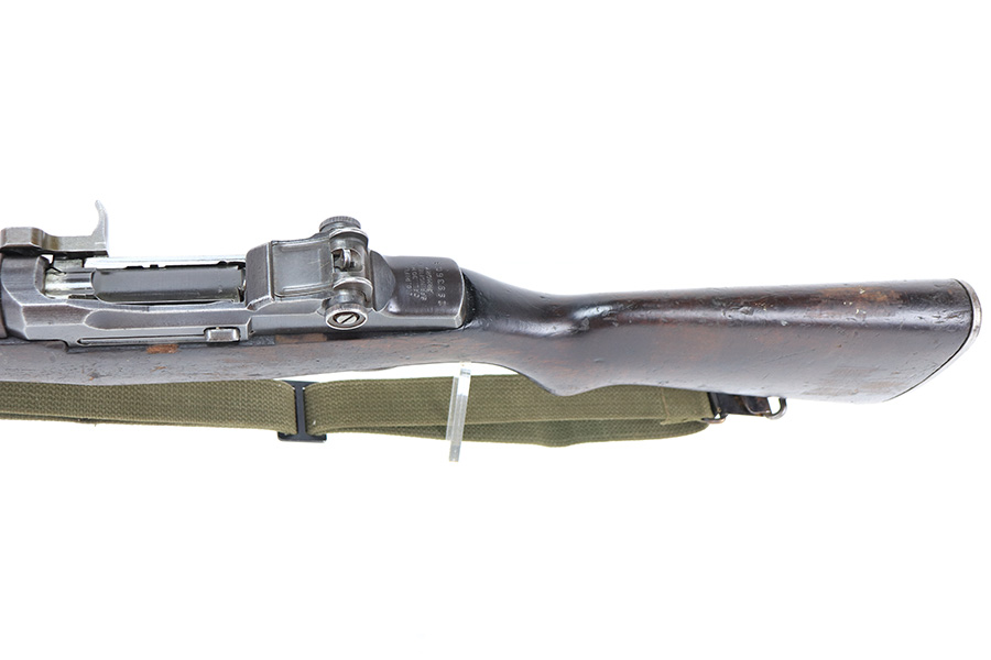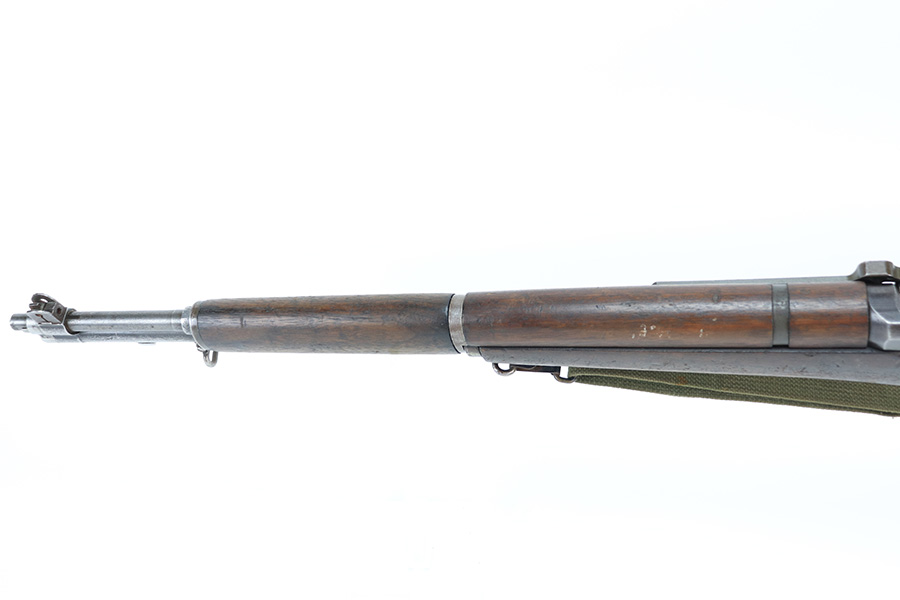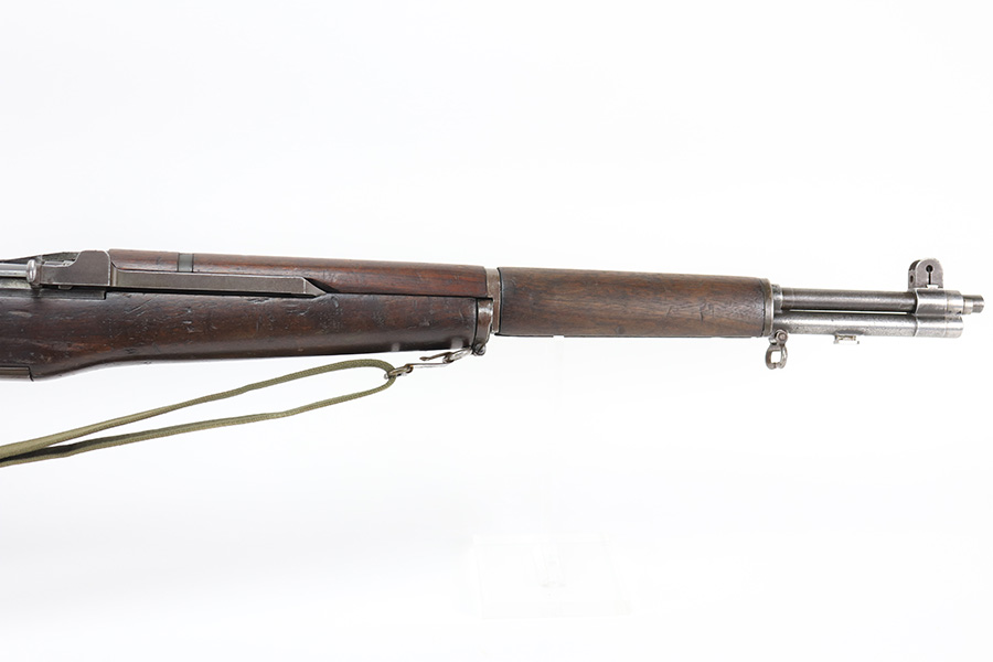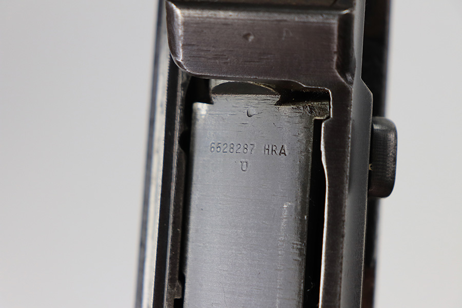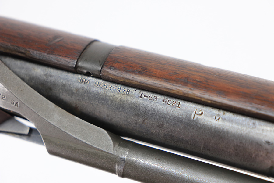 3/1/22 – This is a nice example of a Springfield M1 Garand. The serial number on the receiver dates it to June of 1944. The gun was at least partially reworked after the war, as evidenced by the replacement barrel. The barrel was made by Harrington & Richardson and is dated January of 1953. This was likely done for use in the Korean War. The stock is un-marked except for an extremely faint cross-canon cartouche on the underside near the wrist. Overall, the gun is in nice condition. However, there is generally wear around most of the high edges, some thinning and light brown patina on the receiver, and noticeable finish loss on the barrel and gas cylinder. The stock has noticeable dings, scratches, and small gouges throughout. Very nice bore with good rifling. Muzzle reading: 2.5. Throat reading: 2.