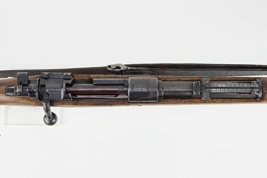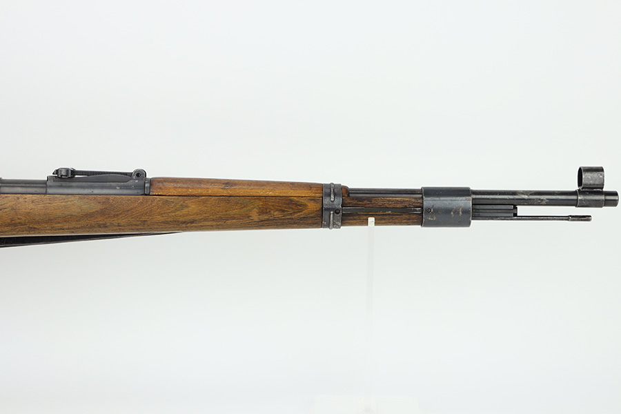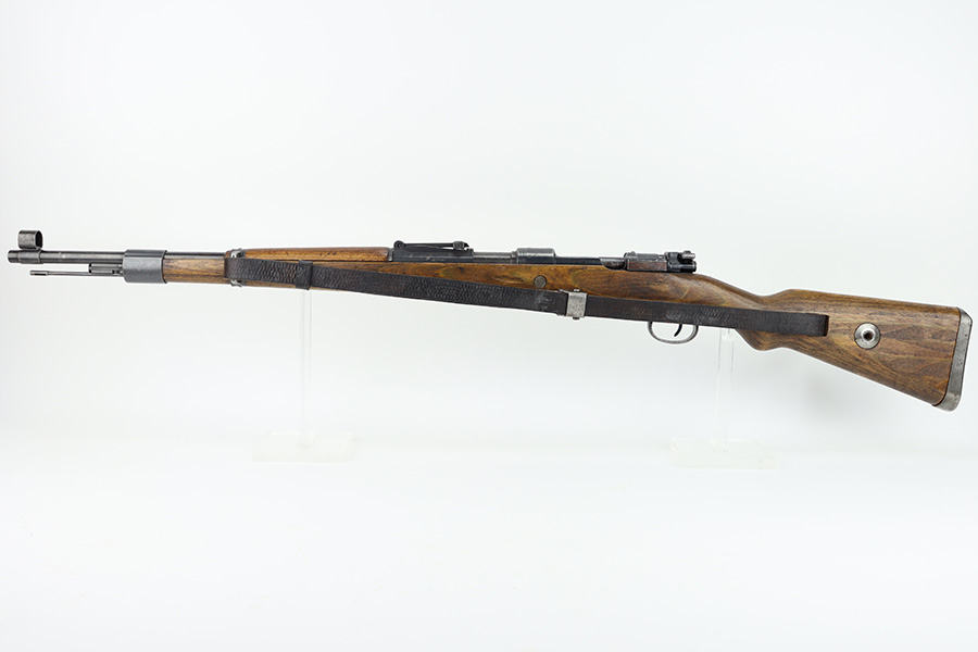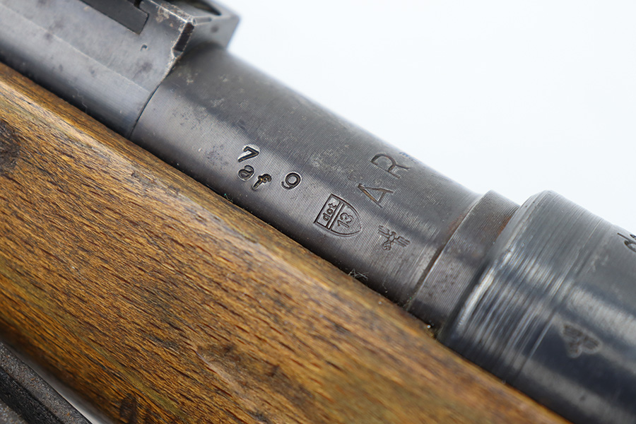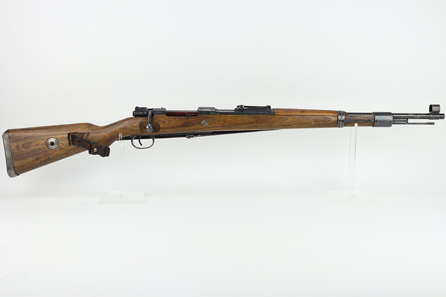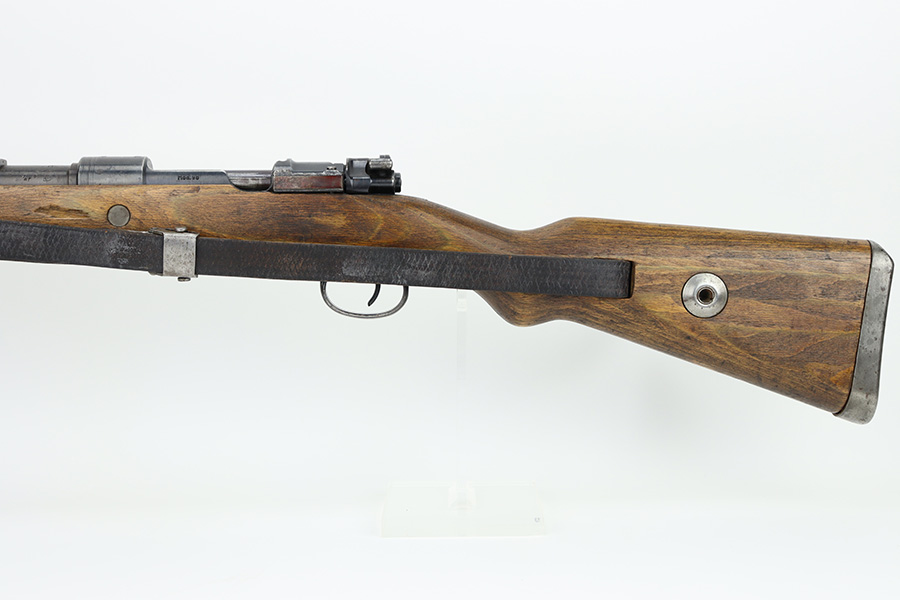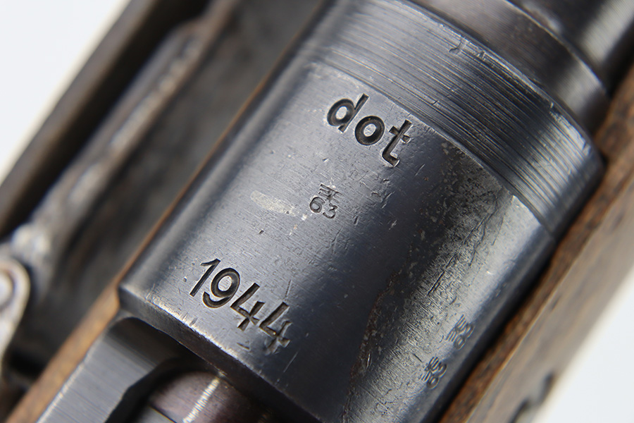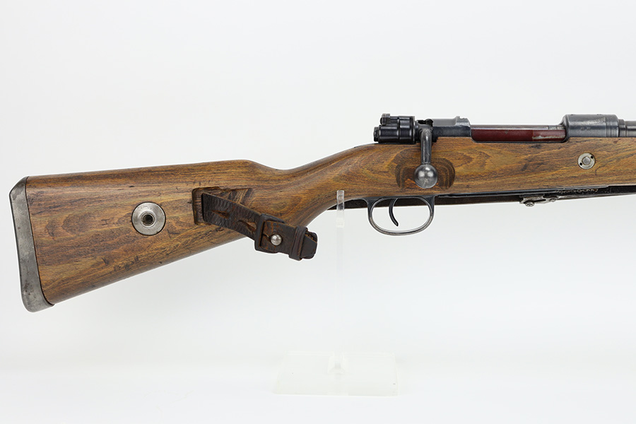11/10/23 – This is a nice example of an original K98 rifle that was manufactured at the Waffen-Werke Brunn factory and issued to the German military in 1944. It’s all matching and original except for the handguard, which is numbered to a different rifle. Matching numbered parts include the stock (channel), rear sight assembly, bands, bolt assembly, floorplate, barrel and receiver. Original bluing throughout with minor wear in most areas but no rust, and minor freckling on the side of the barrel. Excellent bore. Comes with a cleaning rod and leather sling. Stock shows standard handling wear but no cracks or major defects. It is marked ‘dot’ on the underside and has a Heer Army proof, as well.