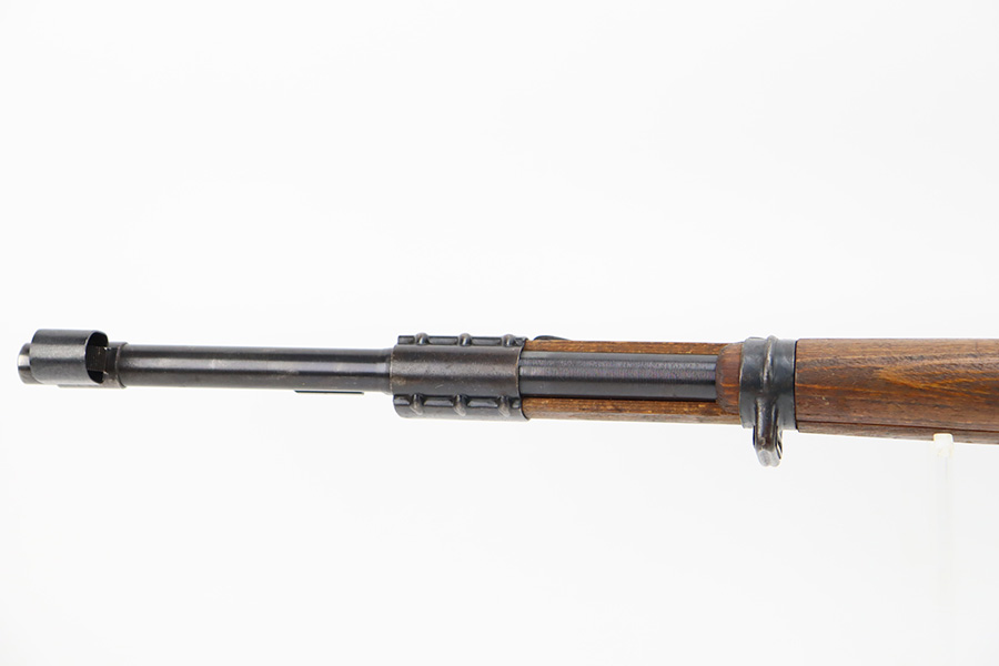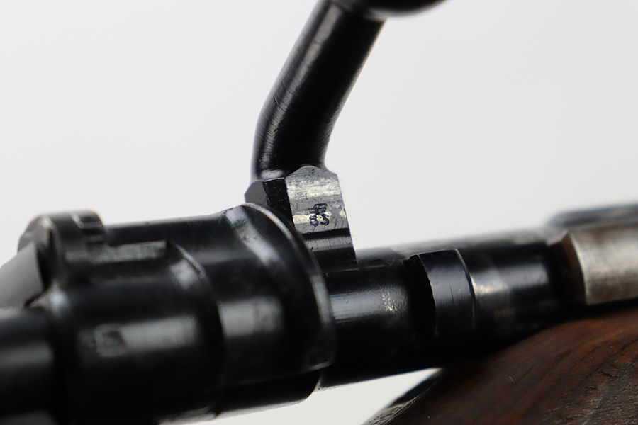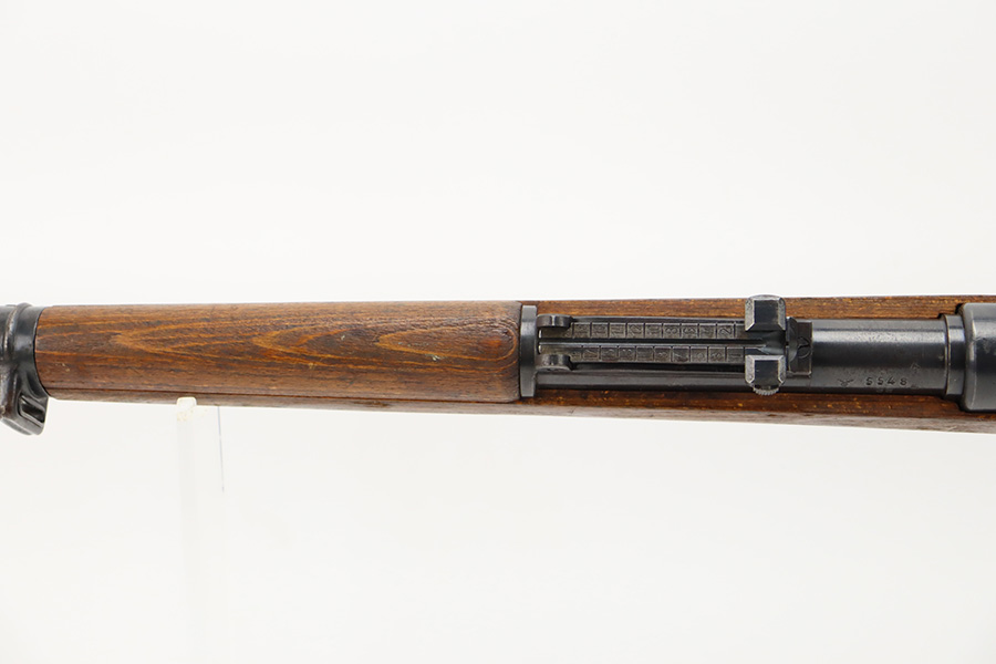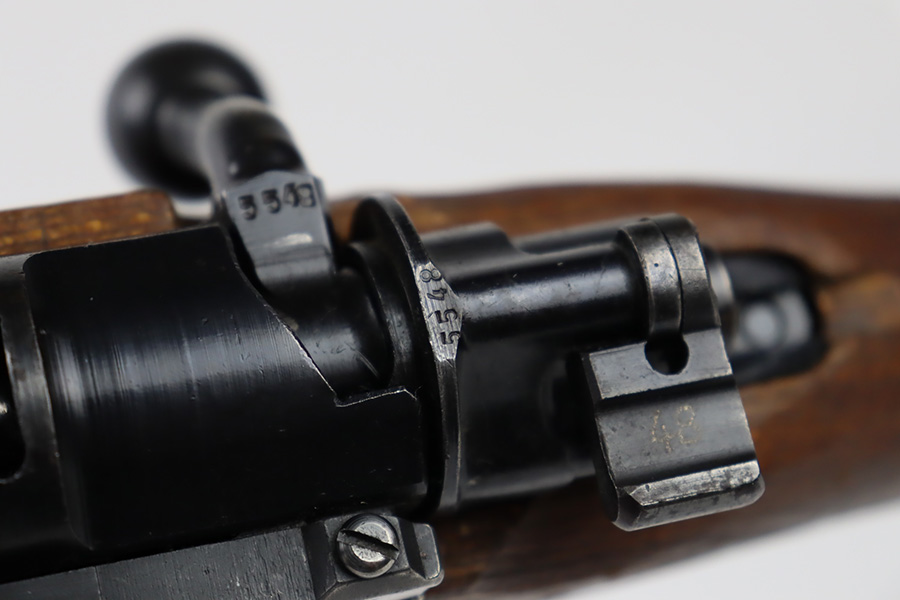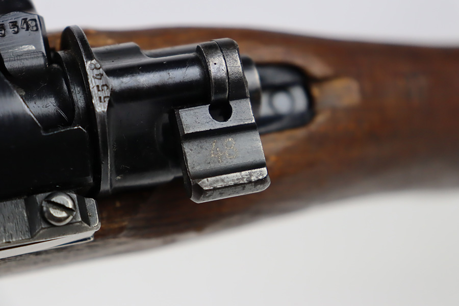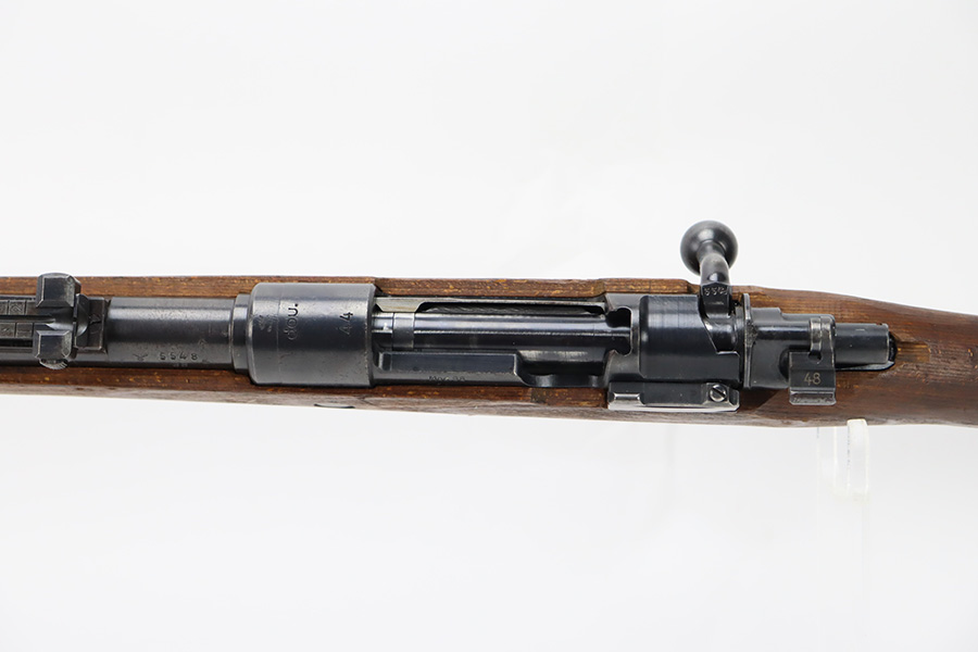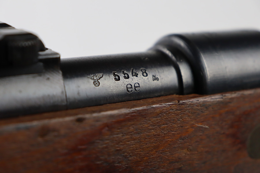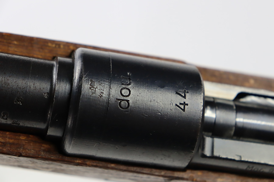 10/5/23 – This is a nice example of a “dou 44” code Waffenwerke Brunn K98 issued to the Nazi military in 1944. It is all matching, but the safety lever has been electro-pencil numbered to match. The finish on the metal parts rates somewhere between 85-90%. The majority of the finish loss is around the muzzle and on the floor plate. Some spotty oxidation on the floor plate and butt plate. The wood furniture is in excellent condition. Mint bore.