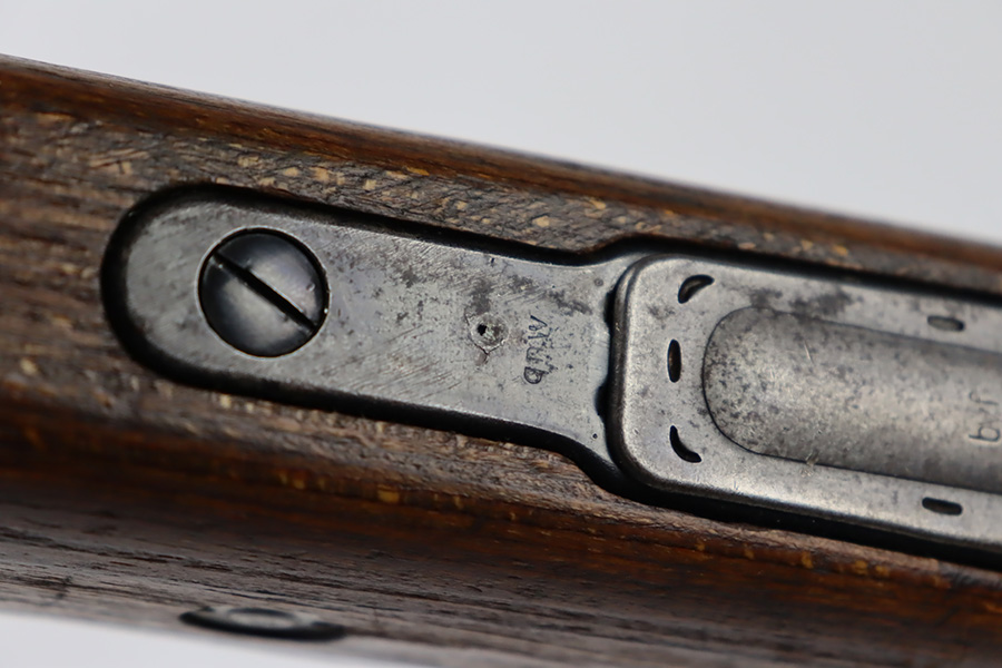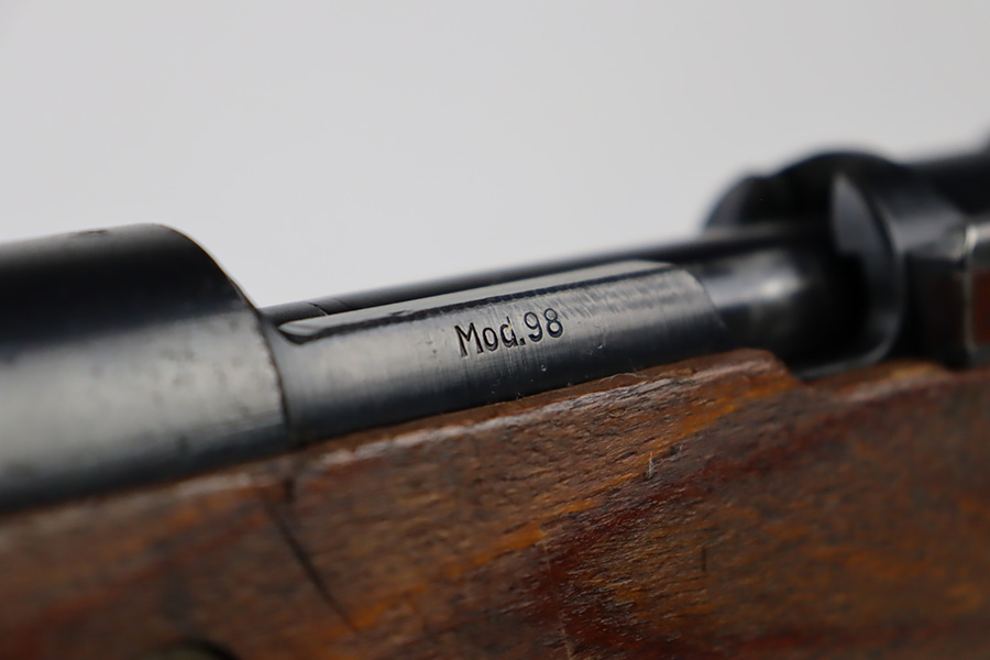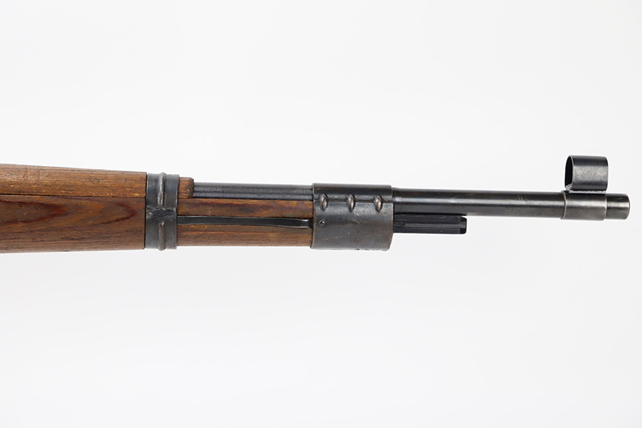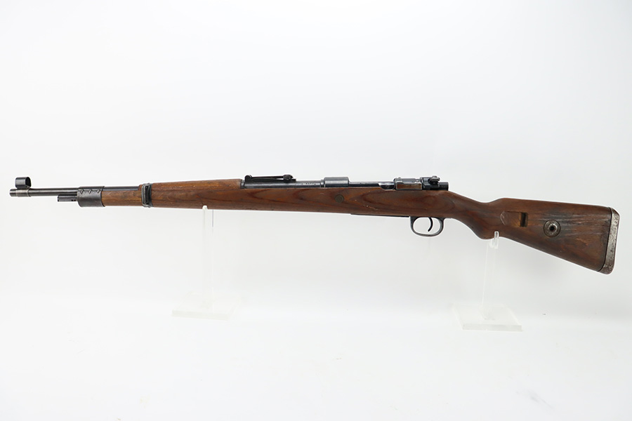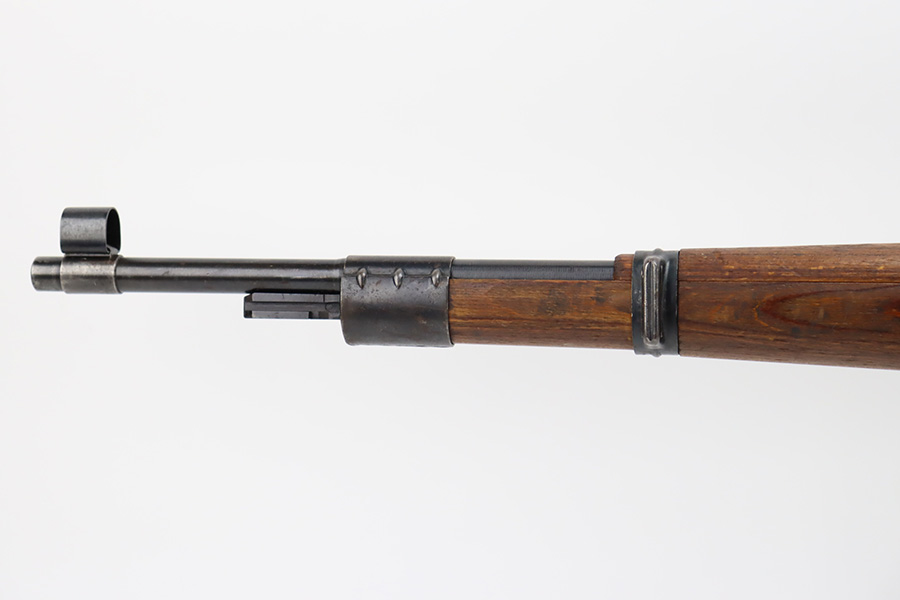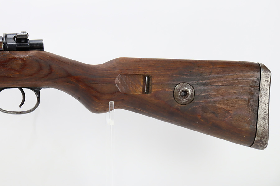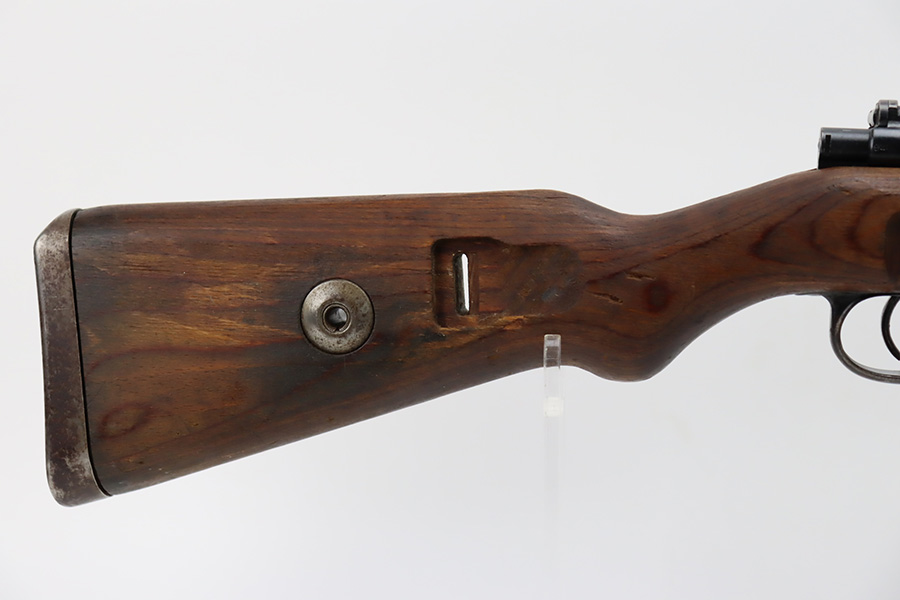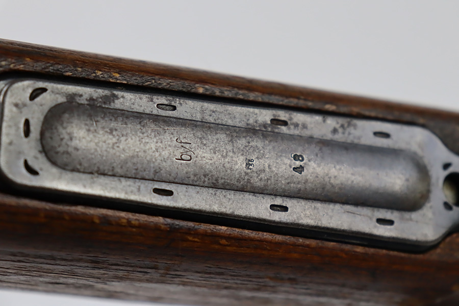 10/5/23 – This is a nice example of a “dou 44” code Waffenwerke Brunn K98 issued to the Nazi military in 1944. It is all matching, but the safety lever has been electro-pencil numbered to match. The finish on the metal parts rates somewhere between 85-90%. The majority of the finish loss is around the muzzle and on the floor plate. Some spotty oxidation on the floor plate and butt plate. The wood furniture is in excellent condition. Mint bore.