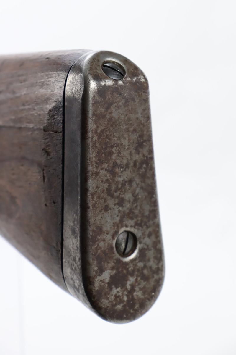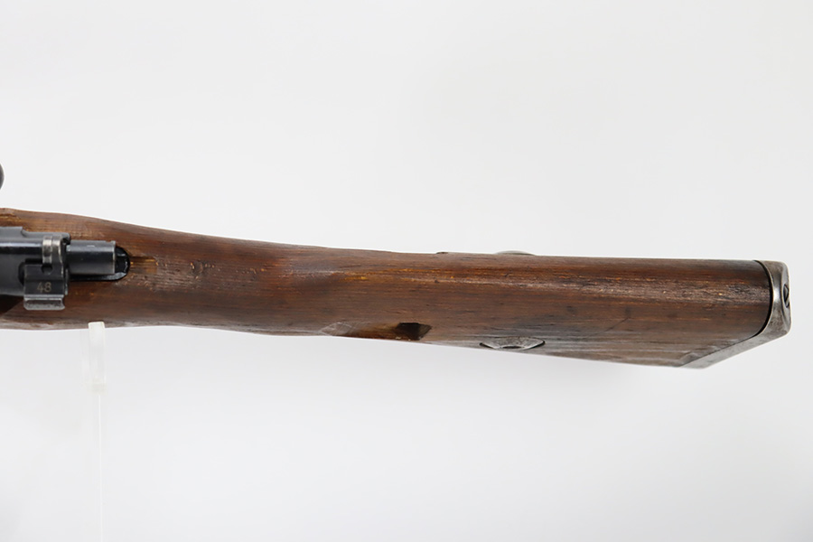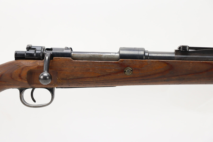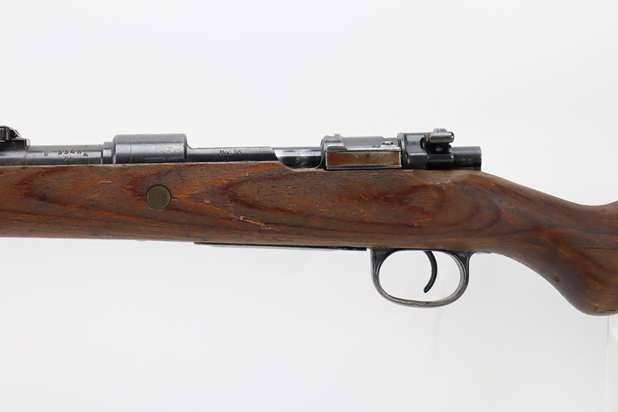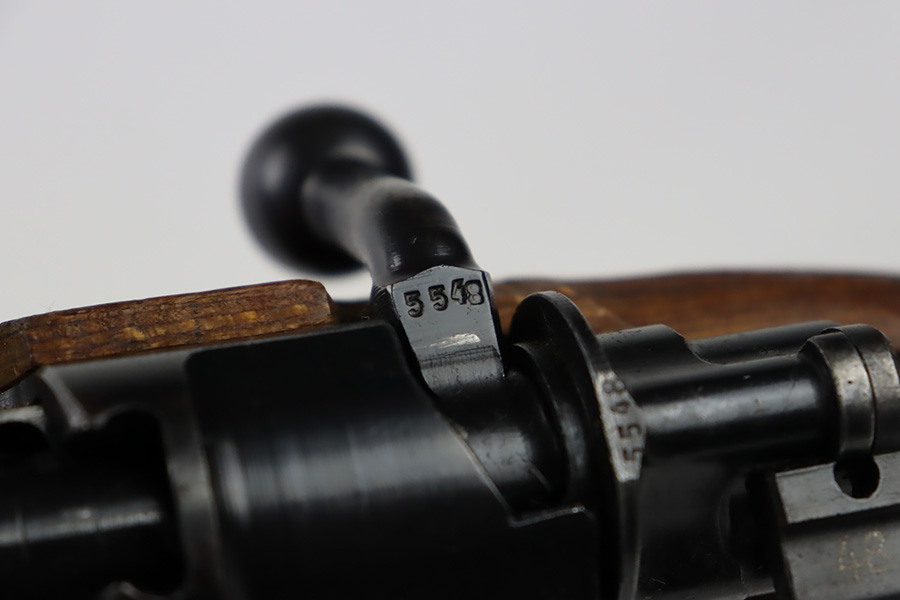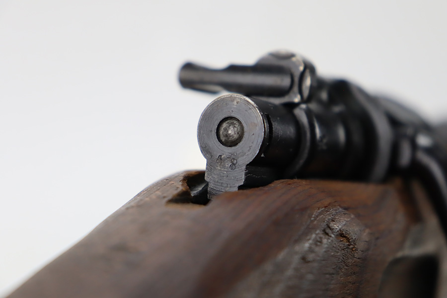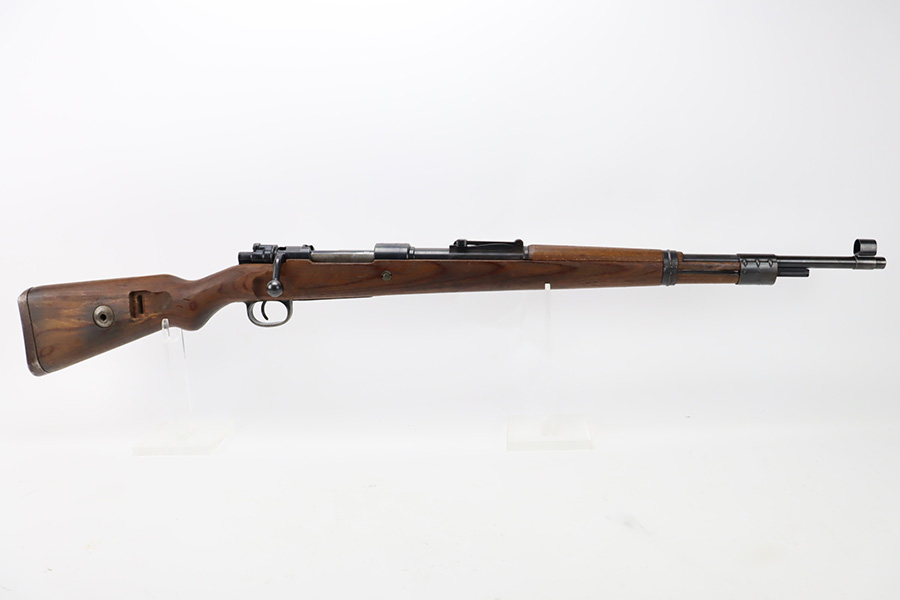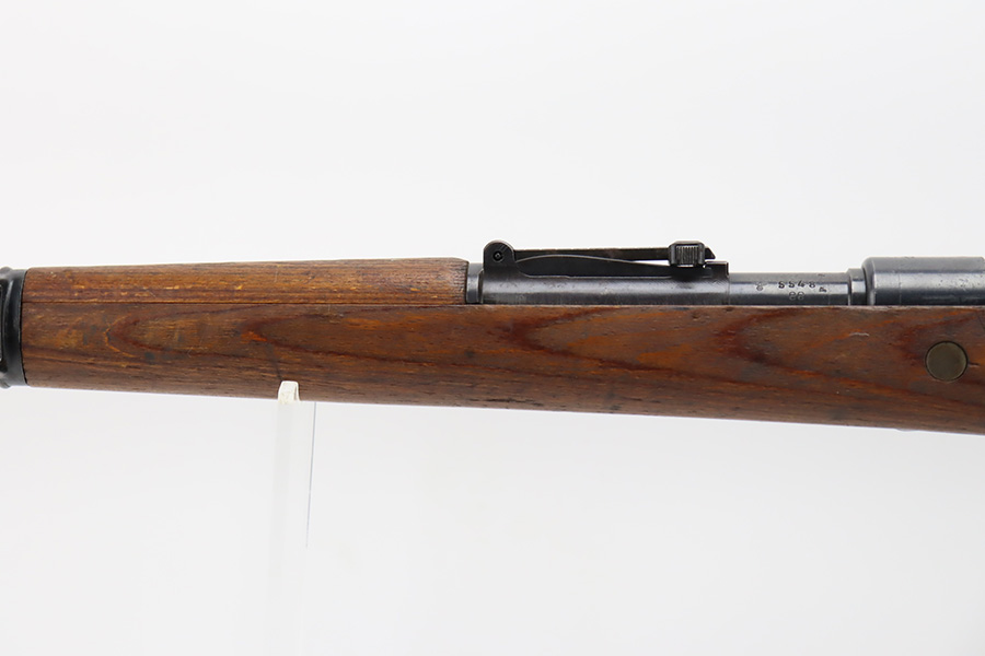 10/5/23 – This is a nice example of a “dou 44” code Waffenwerke Brunn K98 issued to the Nazi military in 1944. It is all matching, but the safety lever has been electro-pencil numbered to match. The finish on the metal parts rates somewhere between 85-90%. The majority of the finish loss is around the muzzle and on the floor plate. Some spotty oxidation on the floor plate and butt plate. The wood furniture is in excellent condition. Mint bore.