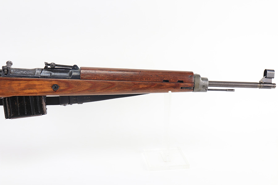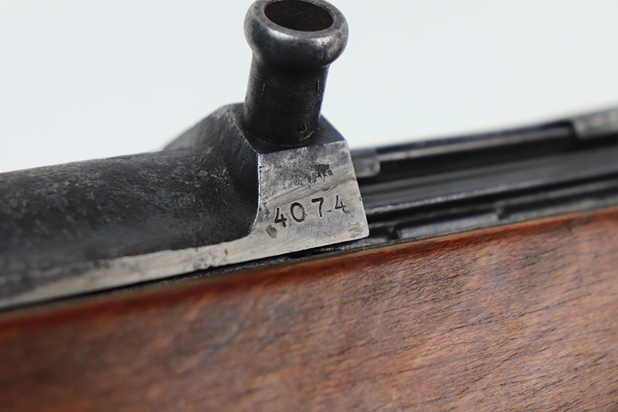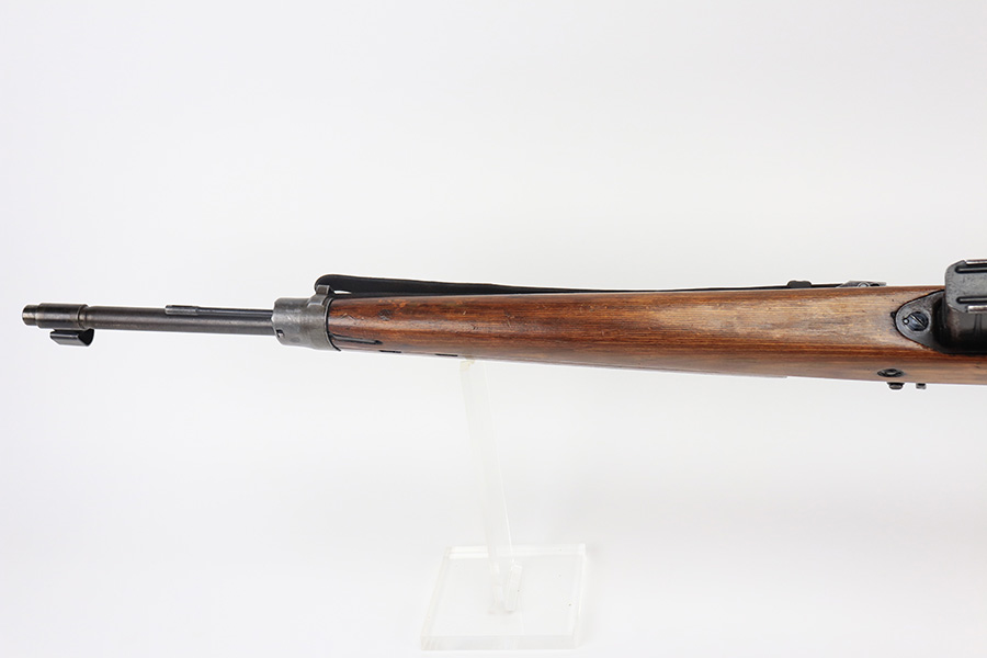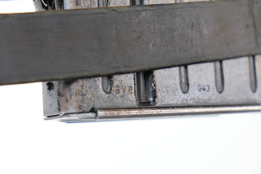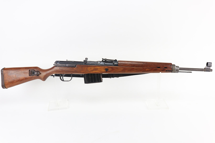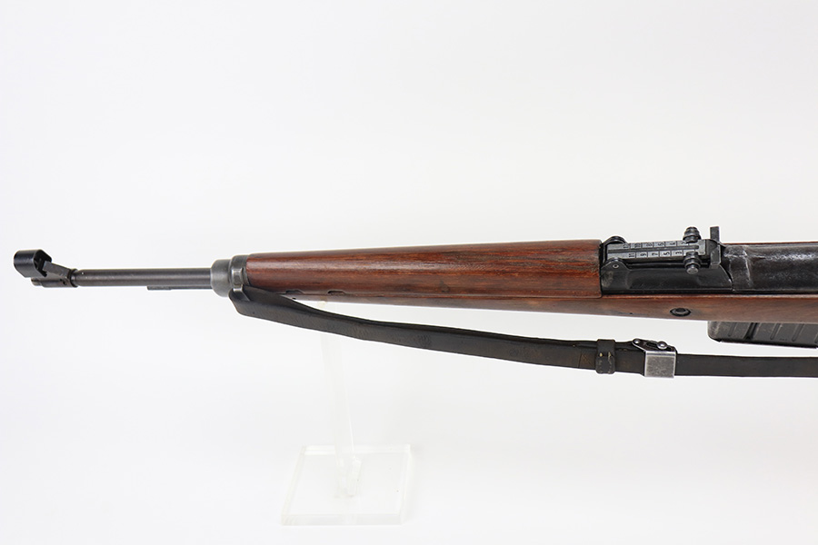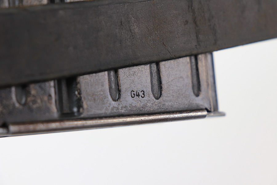 2/1/22 – This is a very nice example of a Walther G.43 rifle issued to the Nazi military in 1944. The gun is all matching, but the bolt has been re-numbered. It has the proper waffen proofs throughout. The gun comes with a shooter’s kit, original sling, original magazine, and cleaning rod. The small leather capture piece of the sling is reproduction. The wood stock is likely a replacement, because the butt plate does not fit properly. The upper hand guard looks to be period-correct. The gun has retained most of its finish, but there are tiny dots of oxidation on the barrel, some discoloration on the receiver, and some wear on the trigger guard. Brown patina on the butt plate. The bore is shiny with good rifling and some areas of very minor pin-pricking. The dust cover on the receiver fits very loose. The bolt has some trouble locking back.