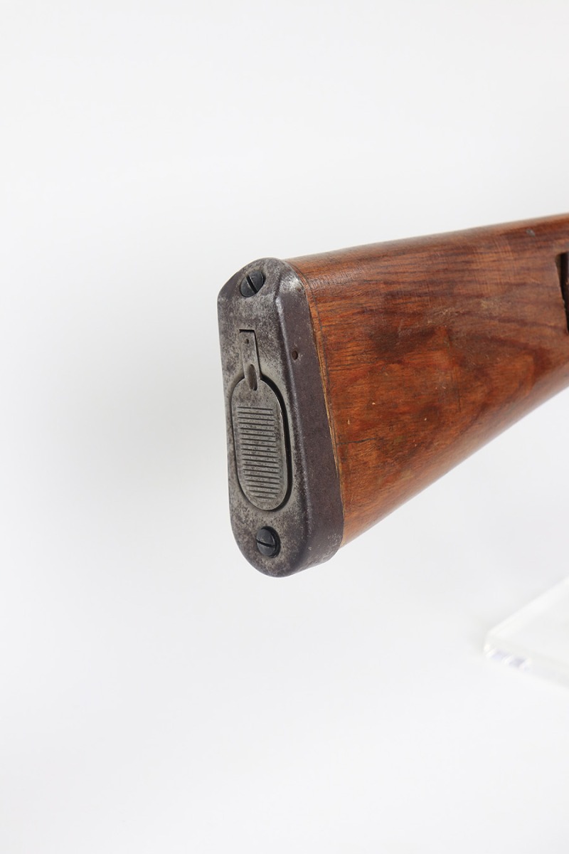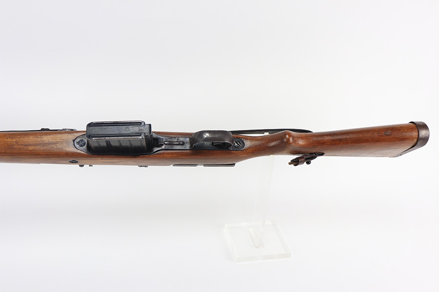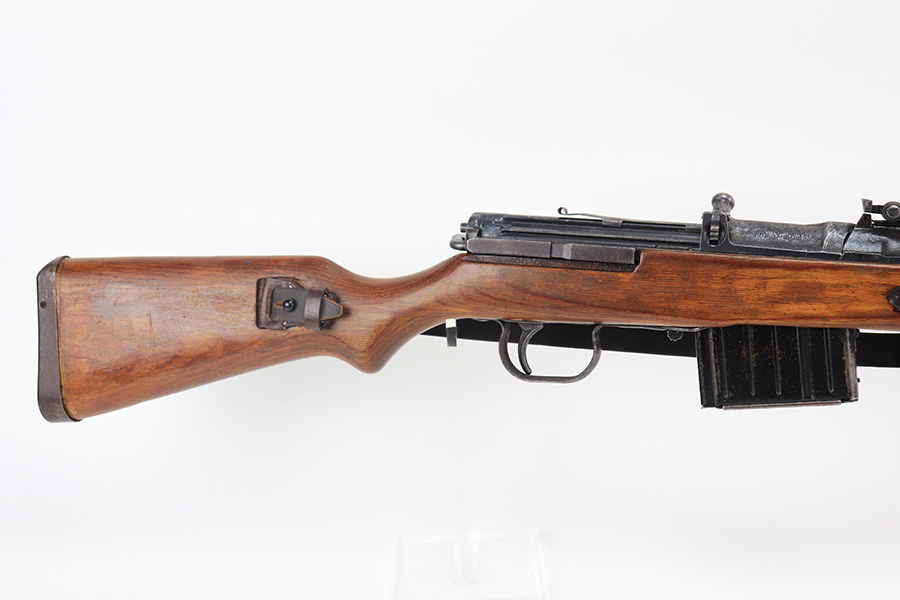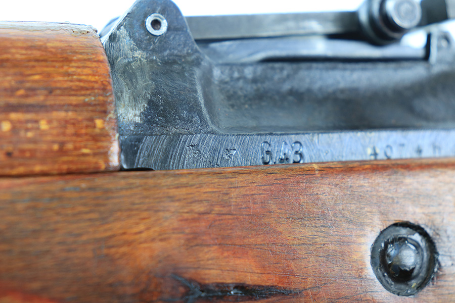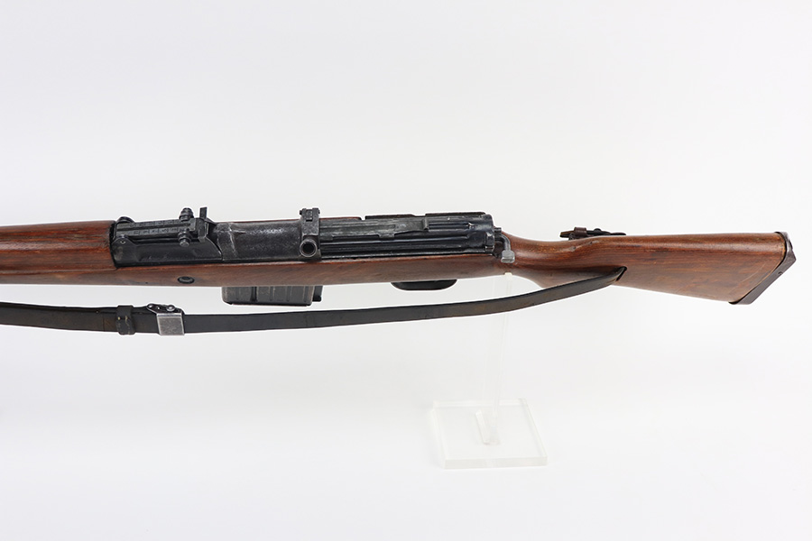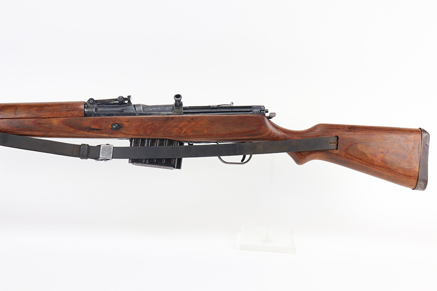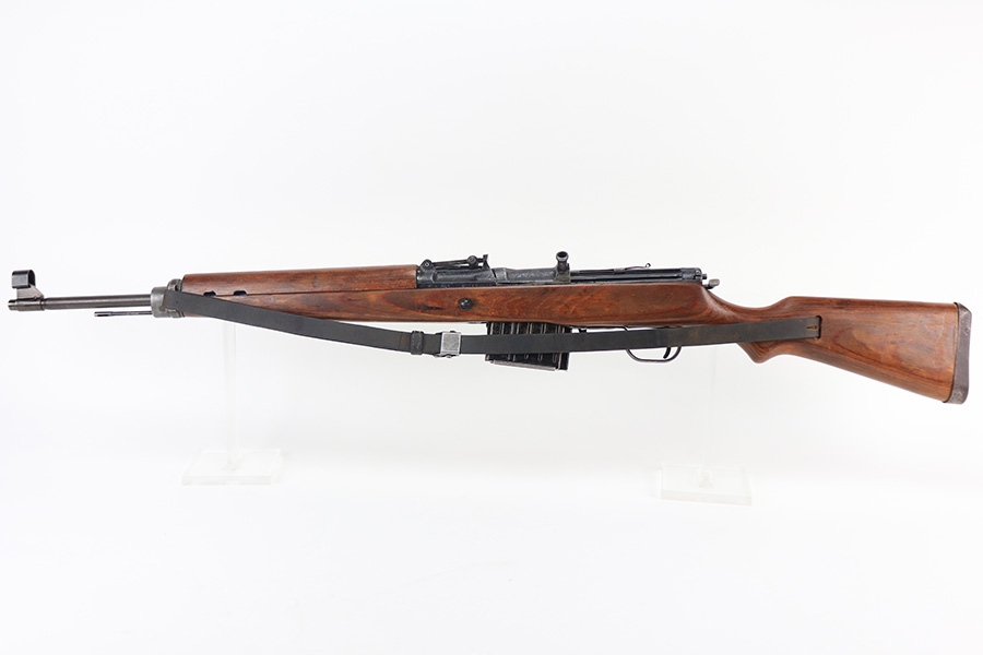 2/1/22 – This is a very nice example of a Walther G.43 rifle issued to the Nazi military in 1944. The gun is all matching, but the bolt has been re-numbered. It has the proper waffen proofs throughout. The gun comes with a shooter’s kit, original sling, original magazine, and cleaning rod. The small leather capture piece of the sling is reproduction. The wood stock is likely a replacement, because the butt plate does not fit properly. The upper hand guard looks to be period-correct. The gun has retained most of its finish, but there are tiny dots of oxidation on the barrel, some discoloration on the receiver, and some wear on the trigger guard. Brown patina on the butt plate. The bore is shiny with good rifling and some areas of very minor pin-pricking. The dust cover on the receiver fits very loose. The bolt has some trouble locking back.