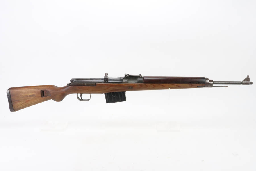 06/10/2024 – For sale is a Walther K43 rifle made in 1944. This rifle is in an overall 93% condition. The receiver and barrel have some slight patina on it but still is free of any major corrosion. The stock has been sanded lightly and there are 2 cracks visible at the bottom of the wrist and the top that have been sealed by a previous owner. The bore is good with it being brighter towards the chamber but does get darker towards the muzzle but has good rifling overall. There is some light surface rust on the front sight and it is missing the front sight hood. The rifle comes with one magazine marked “K43” and “gcb” with an inspection eagle proof. The rifle is mismatched throughout.