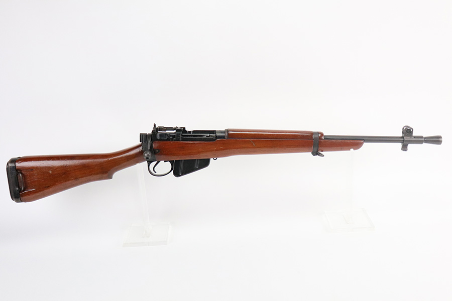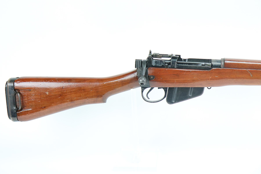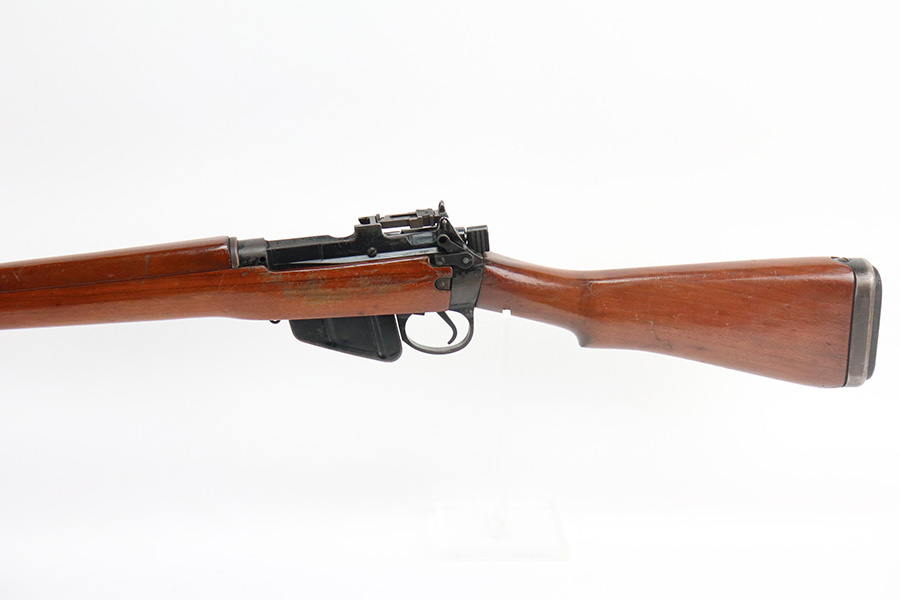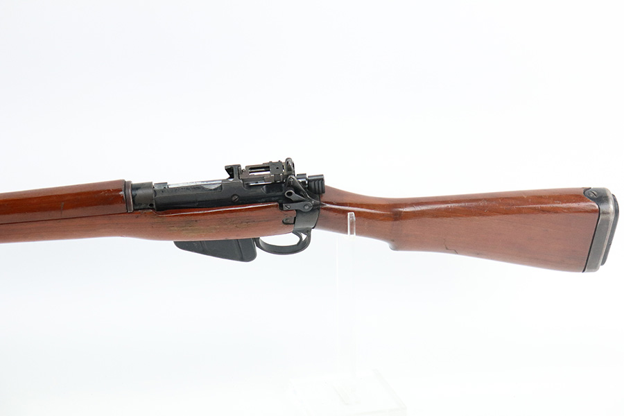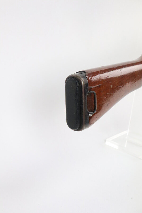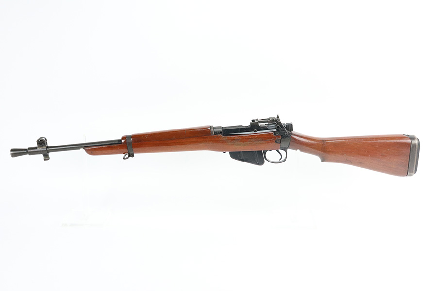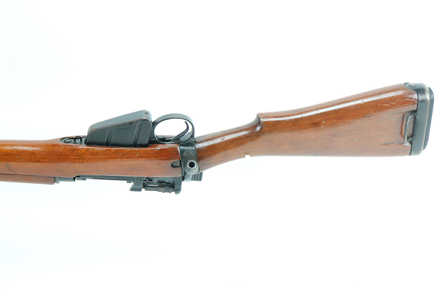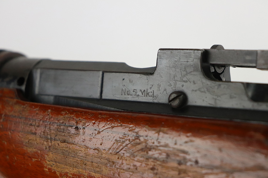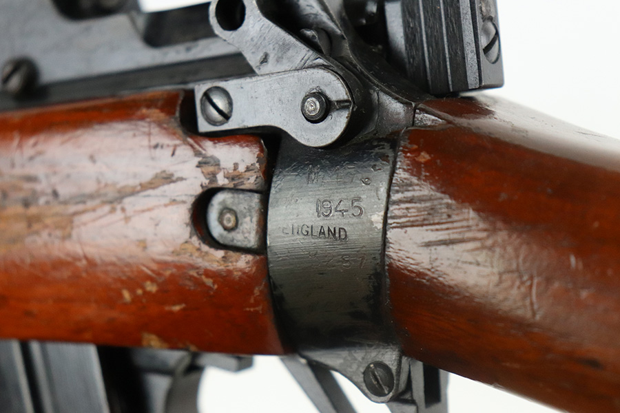 7/13/21 – This is a nice example of a BSA No 5 Mk 1 “Jungle Carbine” issued to the British military in 1945. The gun is all matching and has the proper British proofs. The gun has a black painted finish that is intact in some areas but mostly worn on the barrel, receiver, magazine, and trigger group. The stock is nice with minor dings and scratches throughout. There is an area of noticeable scratching in the finish on the left side of the stock. The bore is shiny with good rifling.