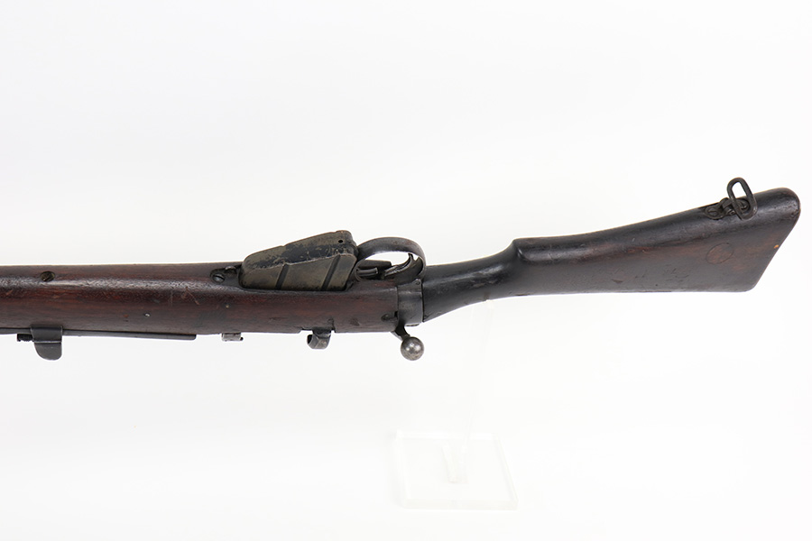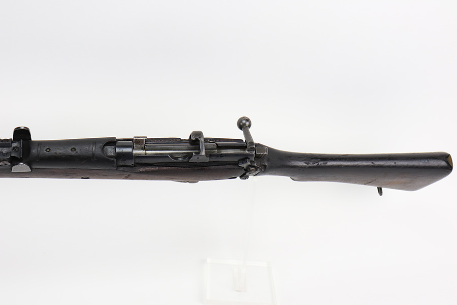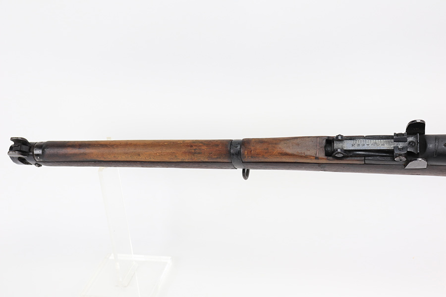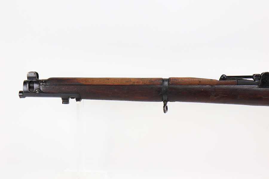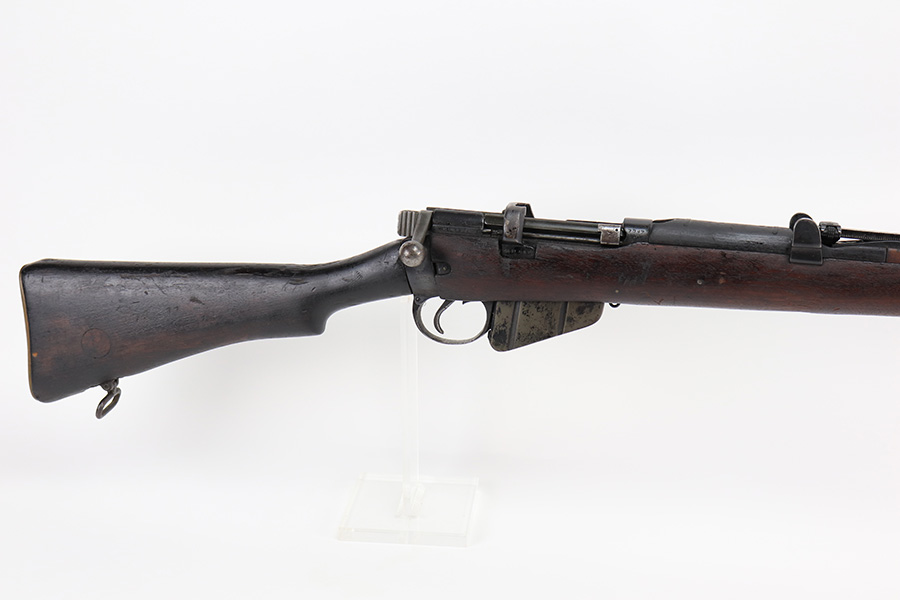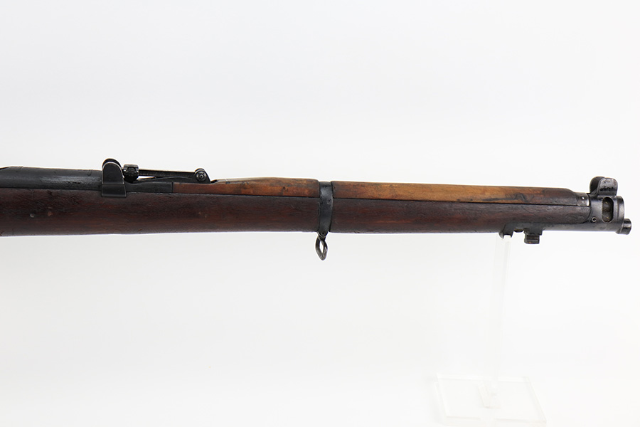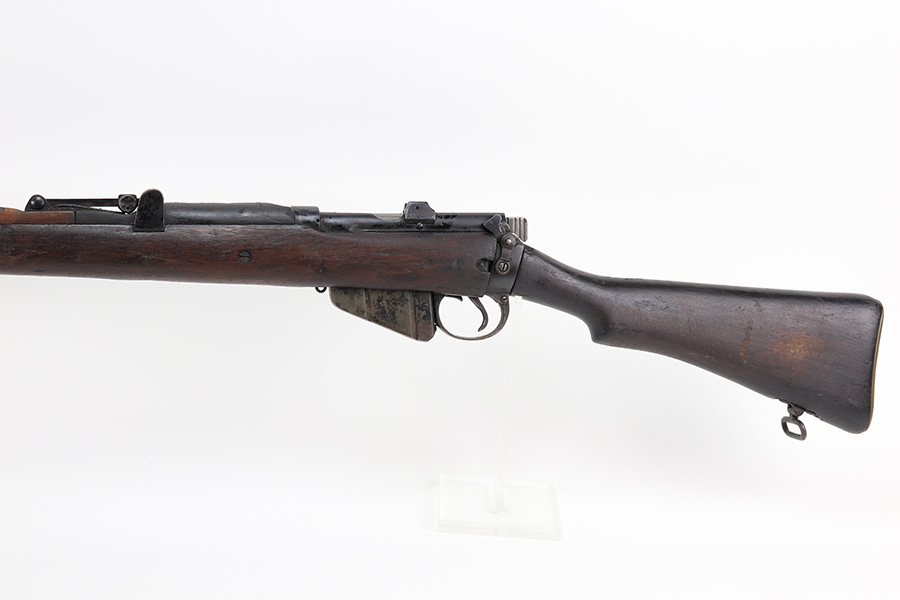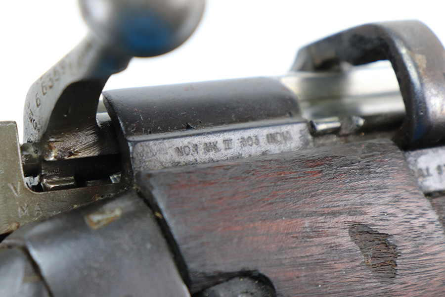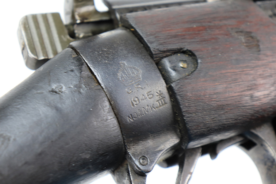 4/5/22 – This is a GRI Ishapore No 1 Mk III rifle, chambered in .303 British. “GRI” stands for “Georgius Rex Imperator” or “George, King and Emperor” and it was how King George VI, of England, was known to his subjects in India until their independence in 1948 after WWII. This particular gun is an Enfield No 1 Mk III made in the Ishapore factory in India for issue to the British military in 1945. The gun is mismatched, and there is an import mark on the right side of the receiver. Overall, the gun is in fair condition. Most of the black painted finish has chipped away – there are some small spots still visible here and there. There is light brown patina covering most of the metal parts. There are bruises and scuffs on the stock throughout. The color of the upper handguard doesn’t match the rest of the gun. There is a hairline crack on the right side next to the action. Minty bore.