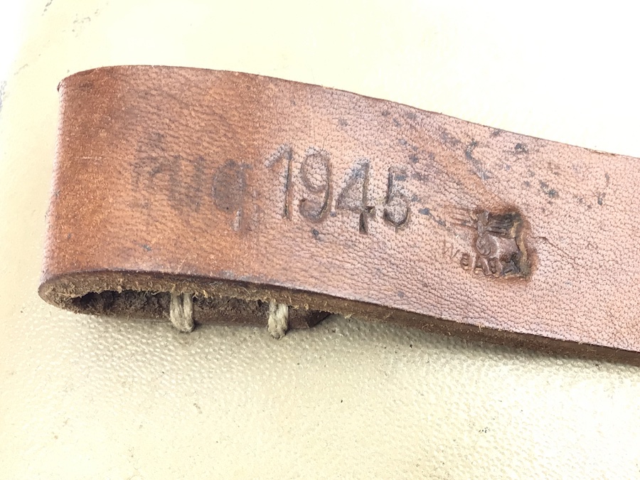 7/13/21 – Original and excellent condition. Nice variant in clay colored vinyl with leather trim. This pouch is marked “fuq 1945” indication production by Curt Vogel. Military waffen stamp WaA921. Clean interior and secure, intact stitching.