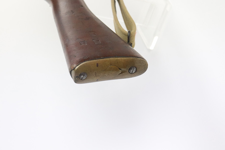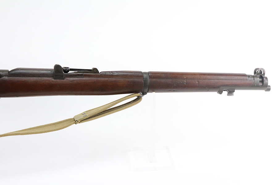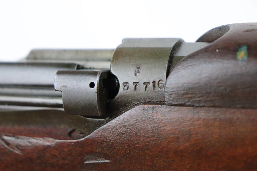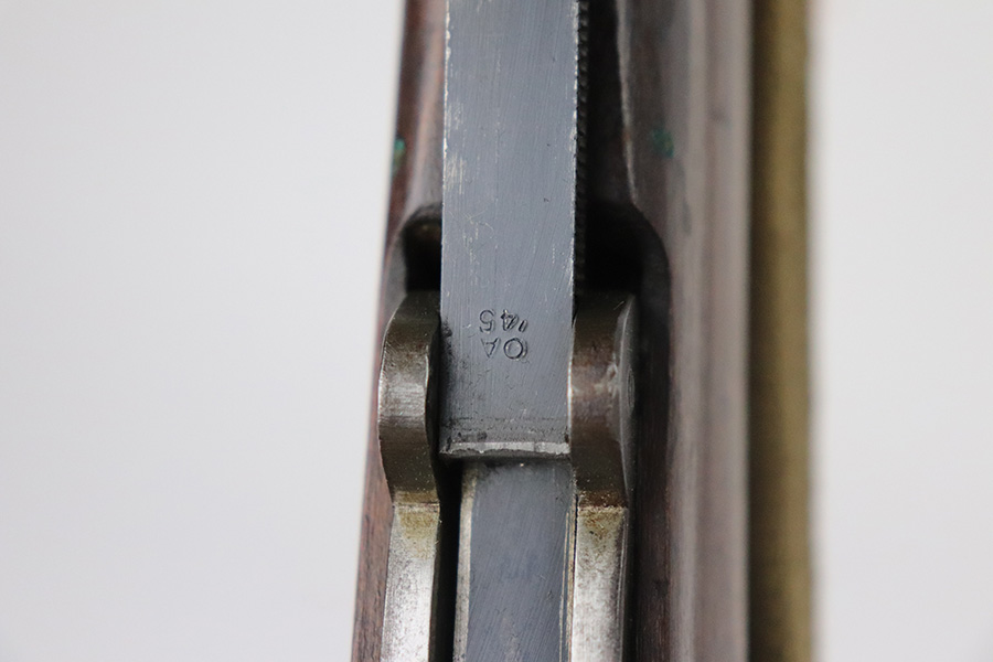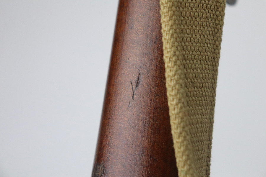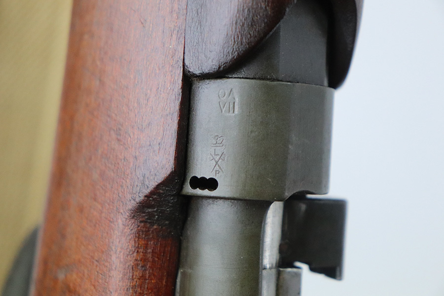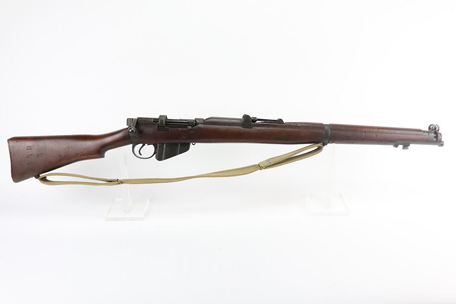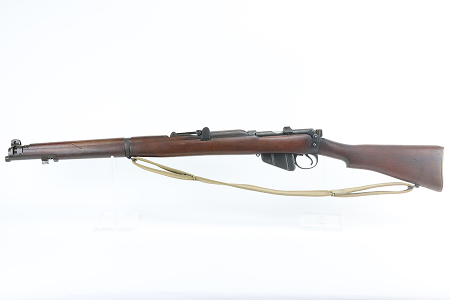 7/23/21 – This is an original MA Lithgow S.M.L.E. III* that was made in 1945. It’s in very good condition, with all matching numbers throughout. Matching numbers on bolt handle, receiver, bayonet lug. Original finish shows some dulling/patina but no major areas of wear. Excellent stock with sharp markings, and reads ‘MAO SMLE III* HV 1945’ on right side. Includes canvas sling. Bore has pronounced rifling but is heavily frosted throughout.