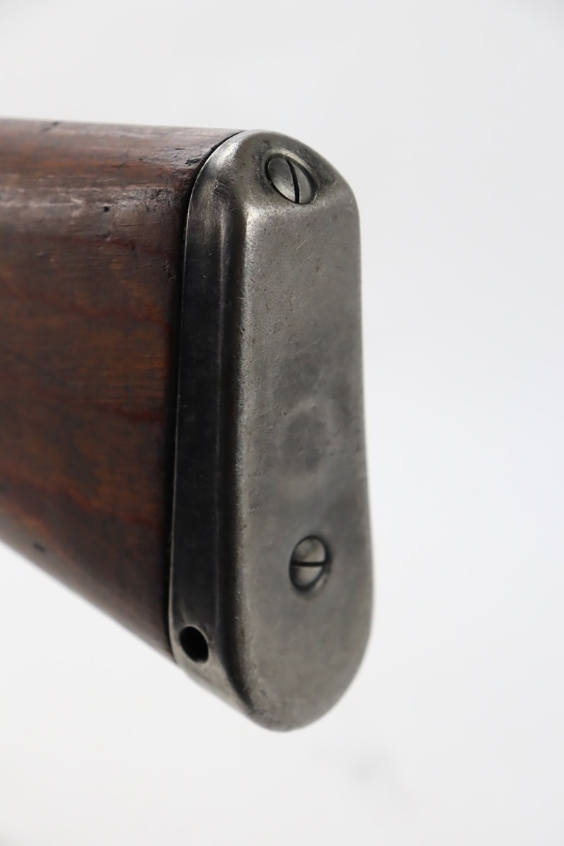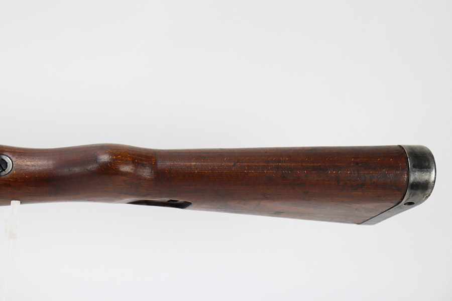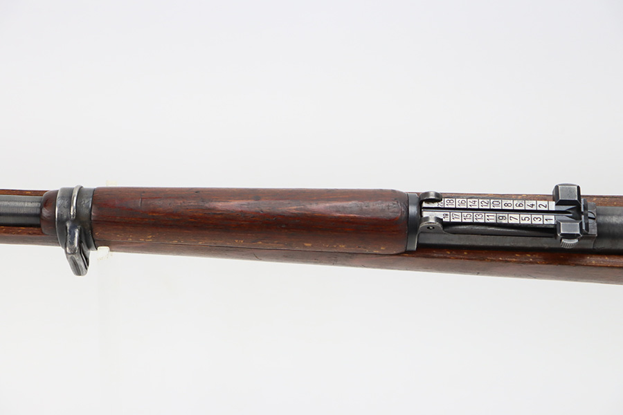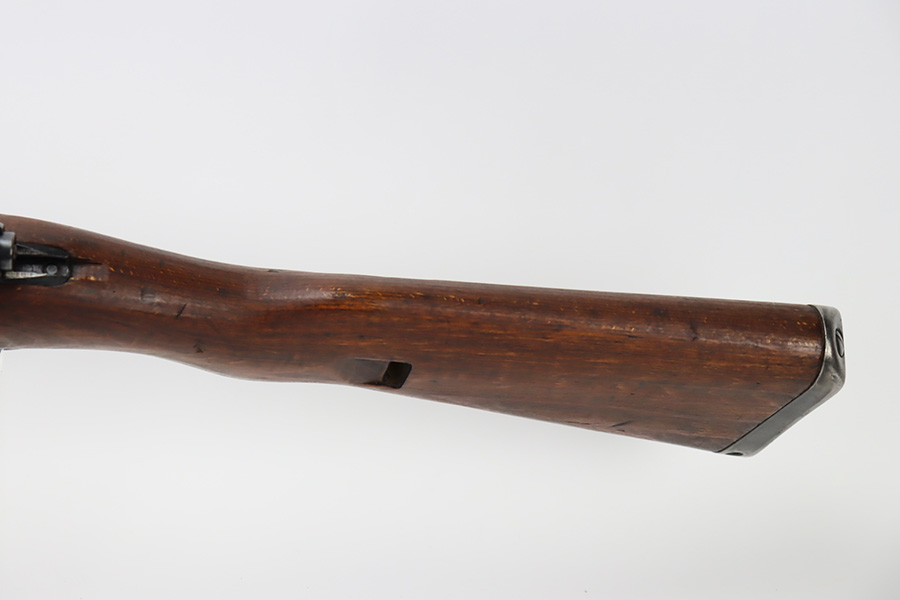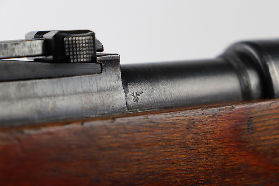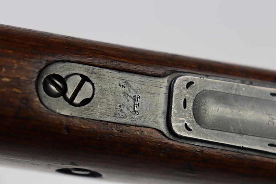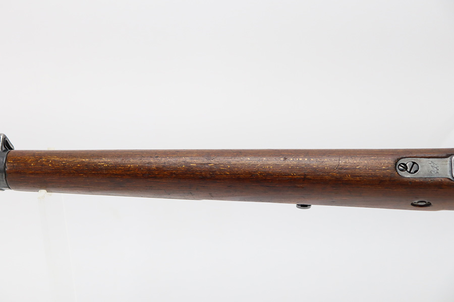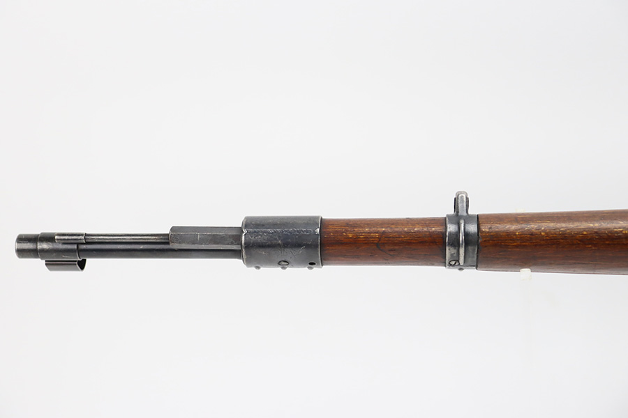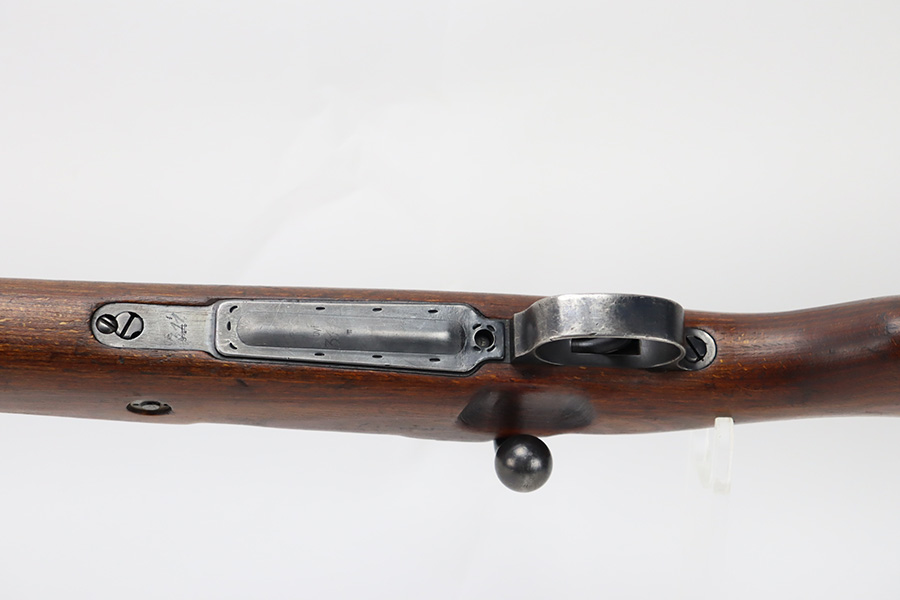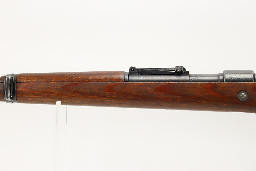 10/6/23 – This is a very nice example of a Mauser Kriegsmodell rifle assembled at the end of WW2, in 1945. This particular gun has a rare “svw MB” Mauser factory code. Many of these guns were assembled by the French after they took over the factory from the Germans at the end of WW2. This one was likely assembled by the French, because it has a French-style cleaning rod. It is mismatched, and some of the parts have been re-numbered. The bluing rates about 93% with general high edge wear and some light scratches here and there. Nice wood stock with the typical signs of wear. Mint bore.